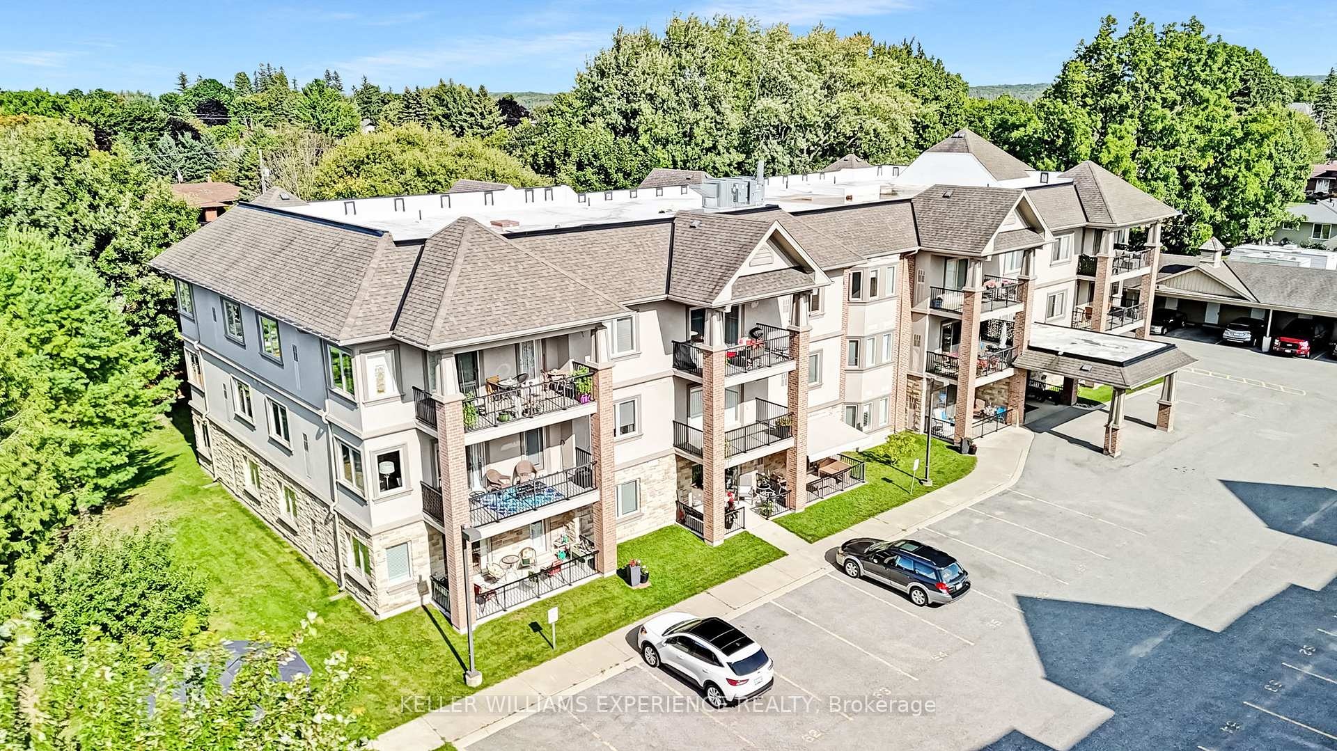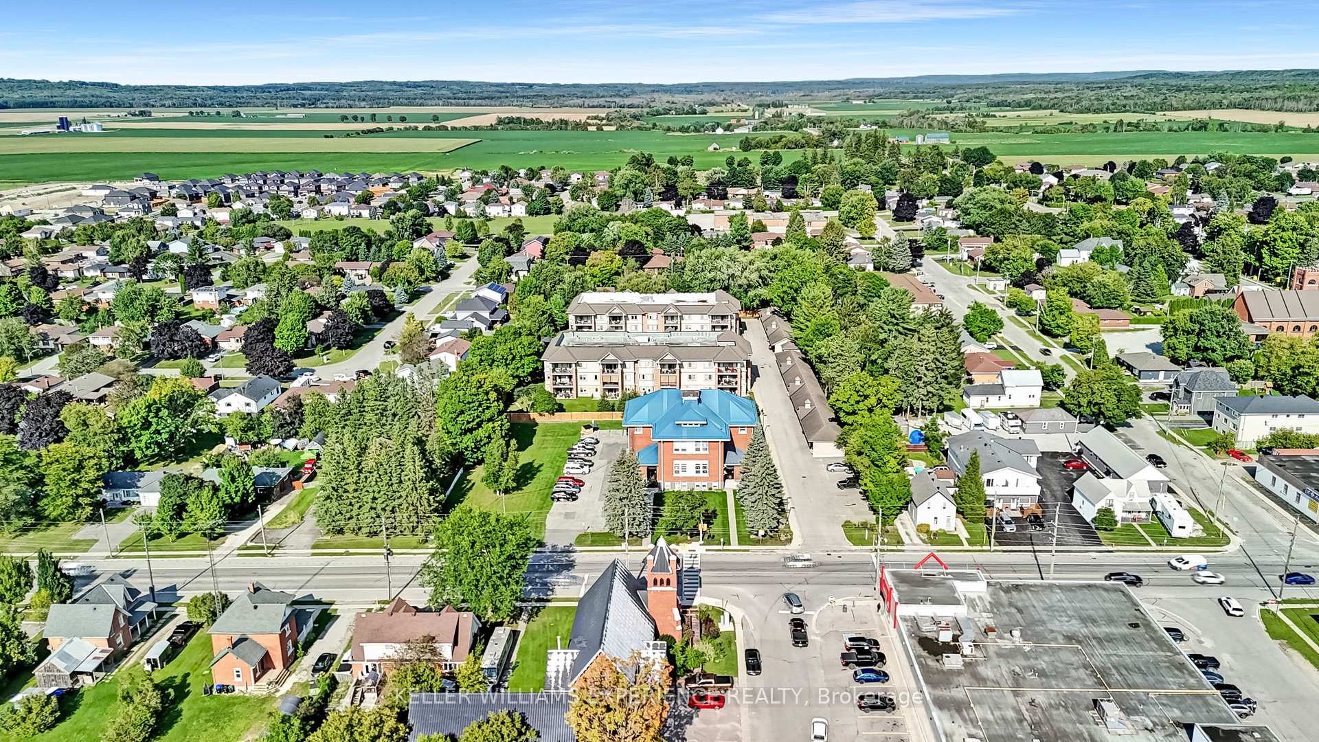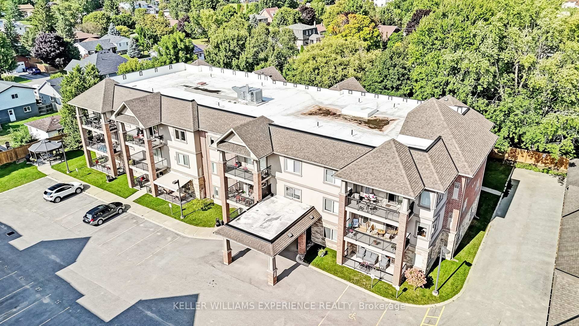 Discover an exceptional adult lifestyle opportunity in Elmvale with this meticulously maintained 1-bedroom, 1-bathroom condominium. Situated on the main level, this unit boasts a generous floor plan complete with in-unit laundry, a covered parking spot with storage, and a charming balcony - offering both convenience and comfort. The open-concept kitchen features in-floor heating and seamlessly connects to the living room, providing an ideal setting for socializing. A spacious bedroom and full bathroom, also with in-floor heating, provide added comfort and functionality. Hallways and lobby have been freshly painted, and new fencing enhances the exterior appeal of the building. Located within an adult lifestyle community, residents enjoy numerous weekly functions and activities. The condo fees of $357.67 cover water/sewers, garbage/snow removal, grass cutting, access to the common room, and use of outdoor amenities, including a gazebo with a barbecue area surrounded by mature trees and beautiful gardens. Everything you need is just a short walk away - library, medical clinic, grocery store, pharmacy, and a variety of restaurants. Wasaga Beach is a mere 10-minute drive, while both Barrie and Midland are within 20 minutes. Fast closing is available, making this the perfect move-in-ready option for those seeking comfort, convenience, and a vibrant lifestyle.