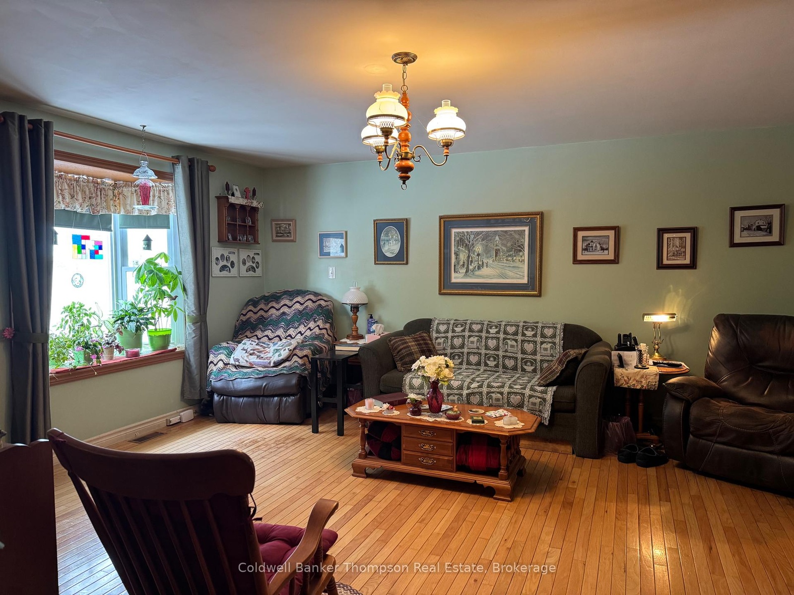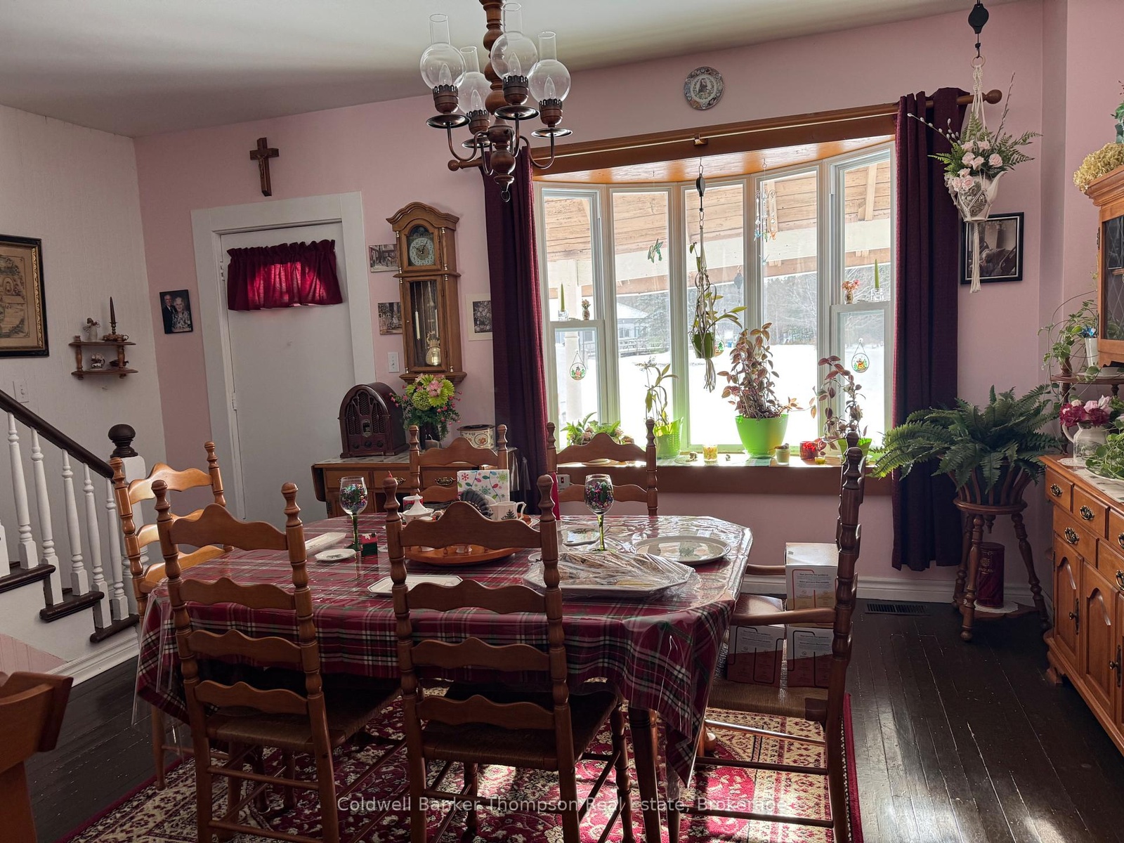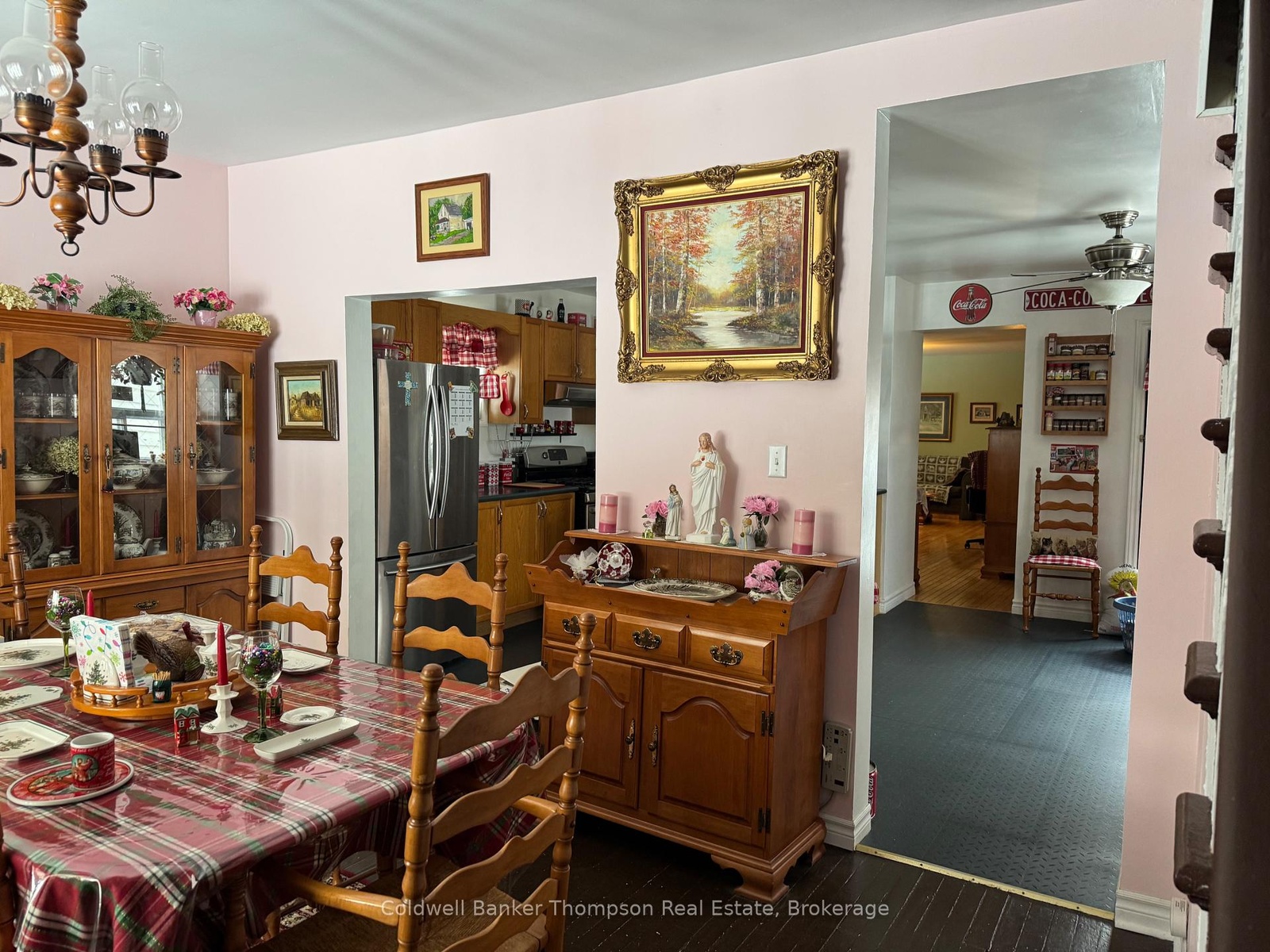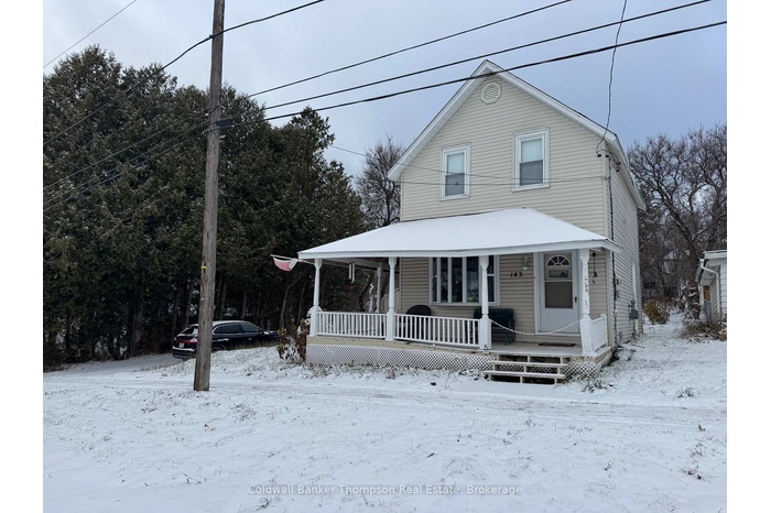 Affordable 2 bedroom ,2 bath home centrally located in Burk's Falls. Main floor has a foyer, with 2 piece bath, large living room, with natural gas fireplace, eat-in kitchen with separate dining room. 2nd level has two large bedrooms with closets and a 4 piece bath, with jet tub. Home has a lot of its original charm and has been well maintained. 200 amp service (breakers) was upgraded as well as insulation. Newer furnace, hot water tank is a rental. Municipal water and sewer. Large side and back yard with a shed. Wrap around deck in need of TLC. Located with in walking distance to pharmacy, school and all town amenities.