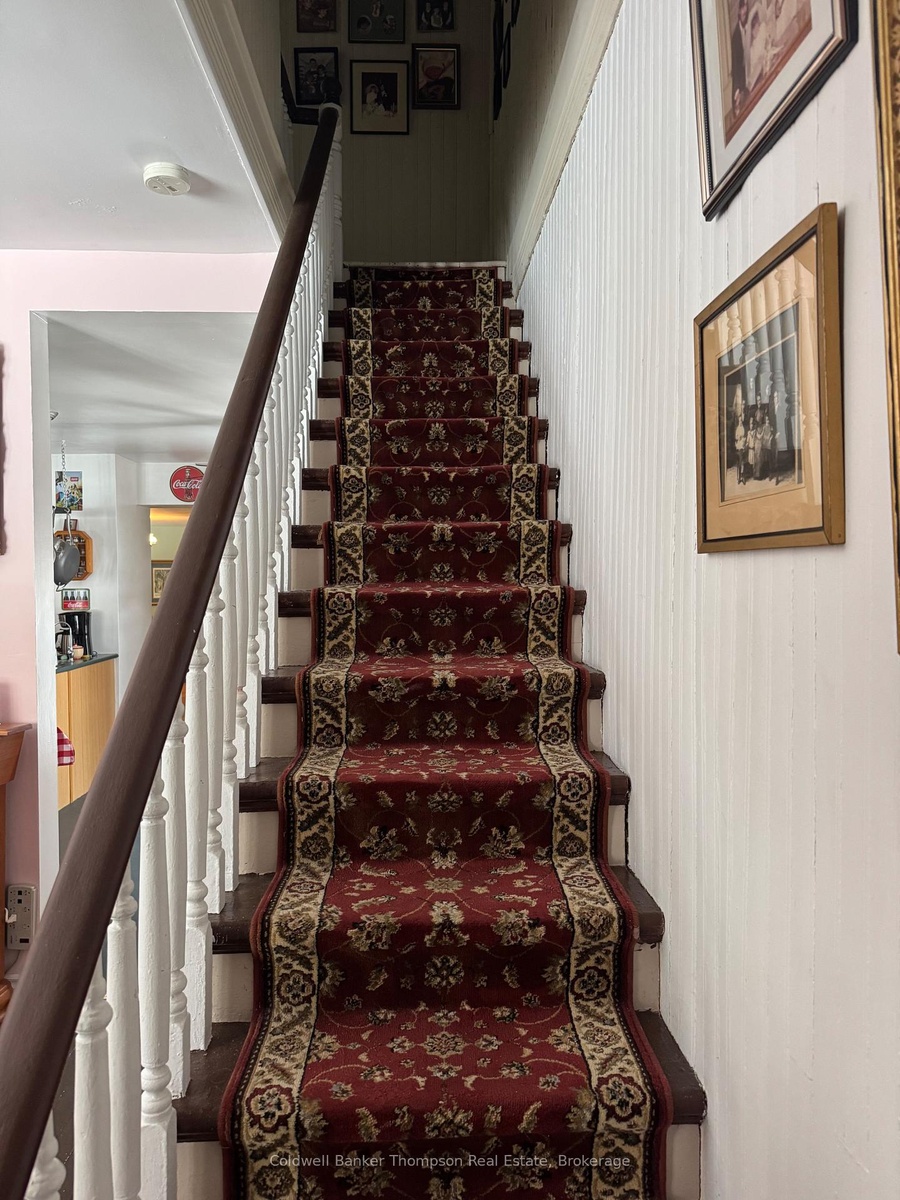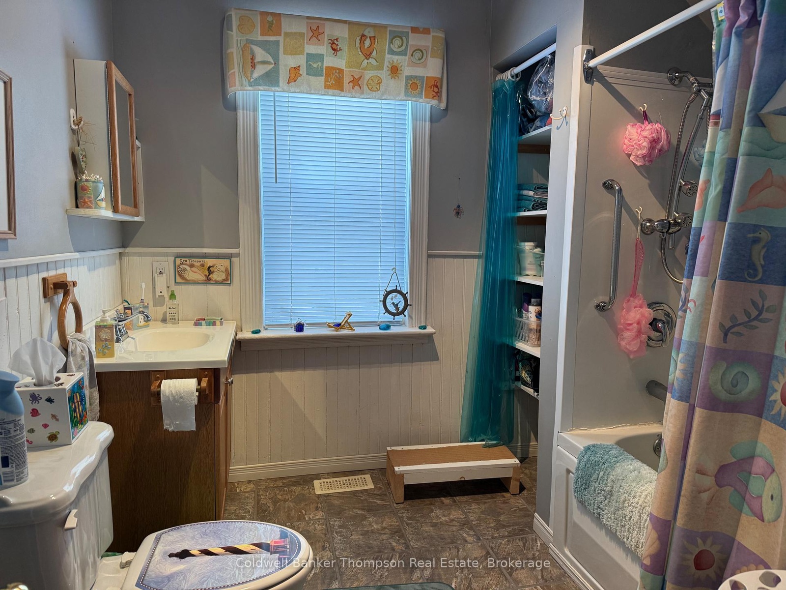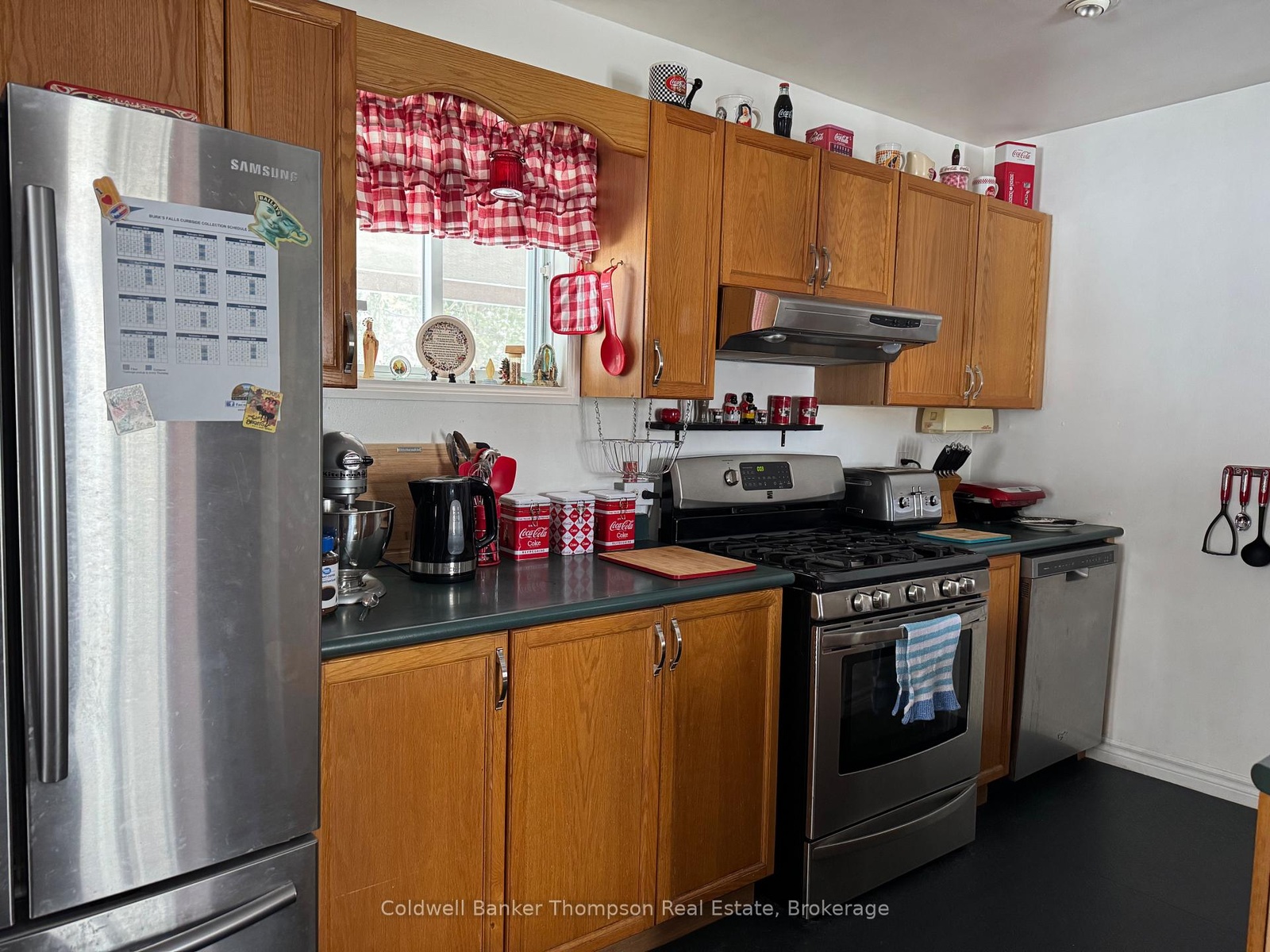 Affordable 2 bedroom ,2 bath home centrally located in Burk's Falls. Main floor has a foyer, with 2 piece bath, large living room, with natural gas fireplace, eat-in kitchen with separate dining room. 2nd level has two large bedrooms with closets and a 4 piece bath, with jet tub. Home has a lot of its original charm and has been well maintained. 200 amp service (breakers) was upgraded as well as insulation. Newer furnace, hot water tank is a rental. Municipal water and sewer. Large side and back yard with a shed. Wrap around deck in need of TLC. Located with in walking distance to pharmacy, school and all town amenities.
