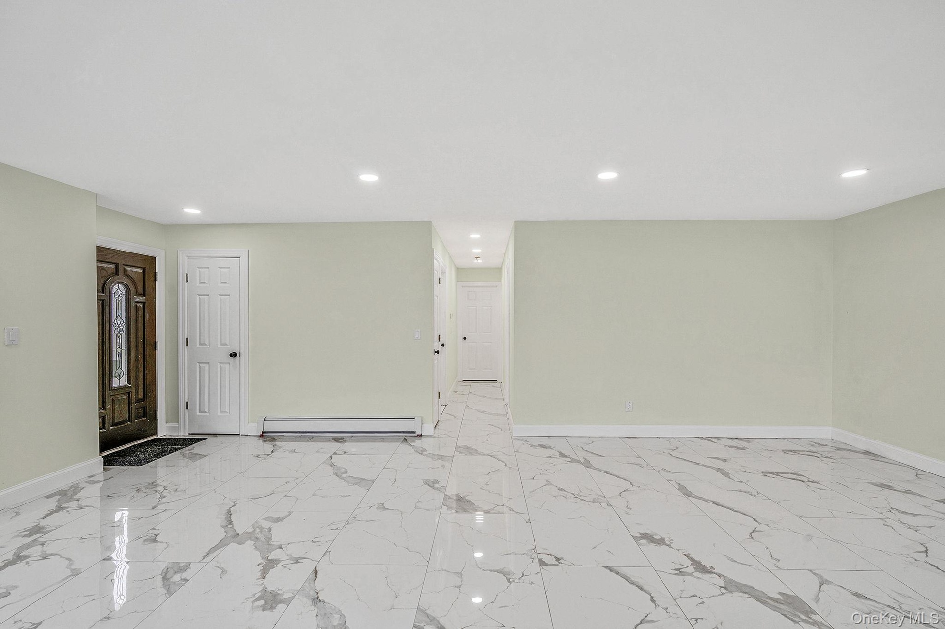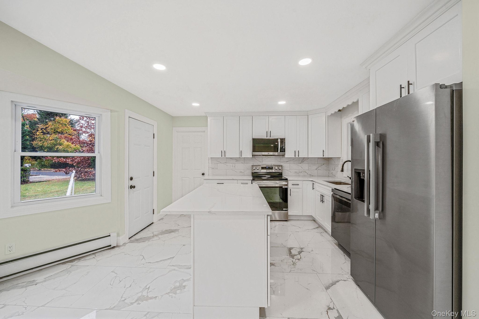 Stunning Renovated Open floor plan Ranch 4 Bedrooms, 2 Full baths. Brand new kitchen, new bathrooms, marble flooring, granite countertops, new Led hi hats, New Roof, Vinyl siding, Gutters, All new Windows, Brand-new stainless-steel appliances, new heating unit & A.C split unit, master bedroom with walk in closet, front entrance pavers, Lot of space for storage, Washer Dryer hook up, 2 side entrances, large driveway, large backyard, Low Taxes. Close to highways and railroad.