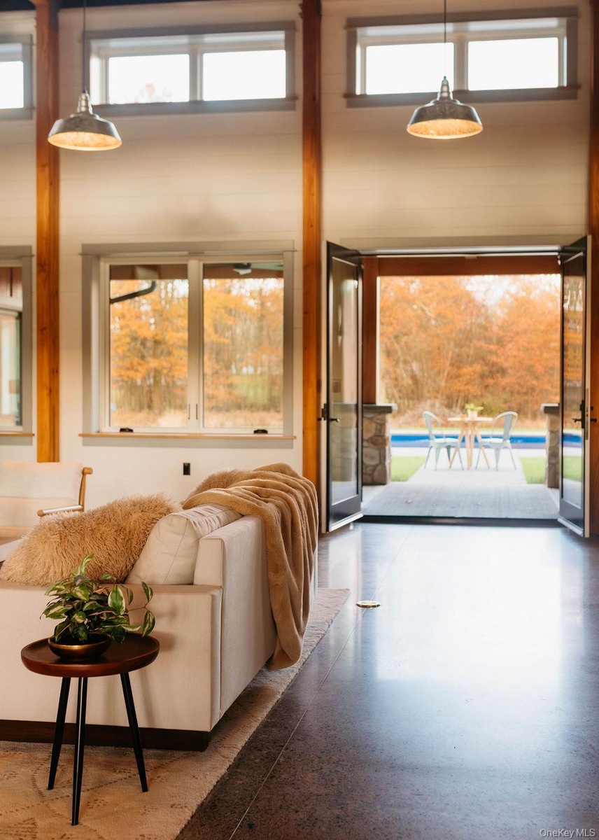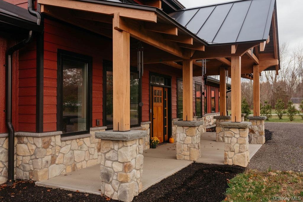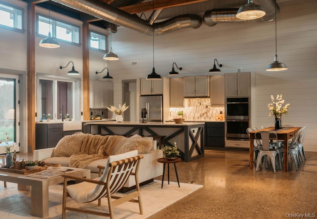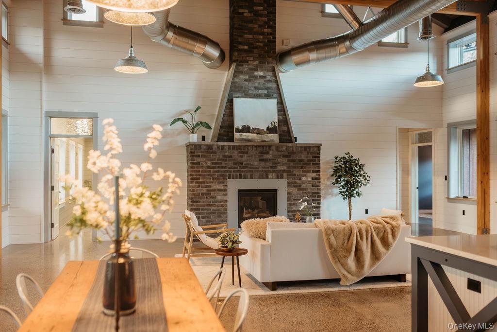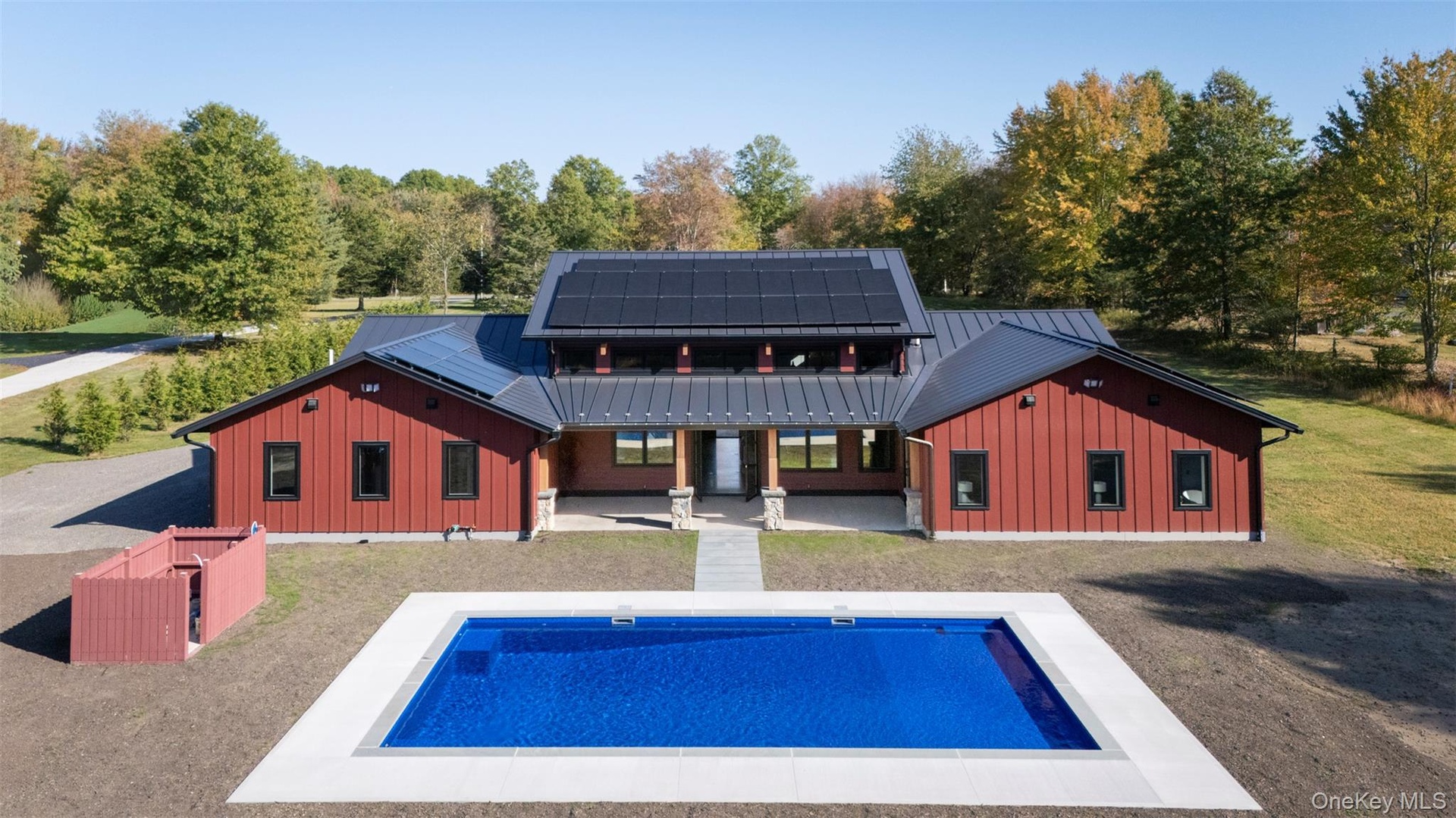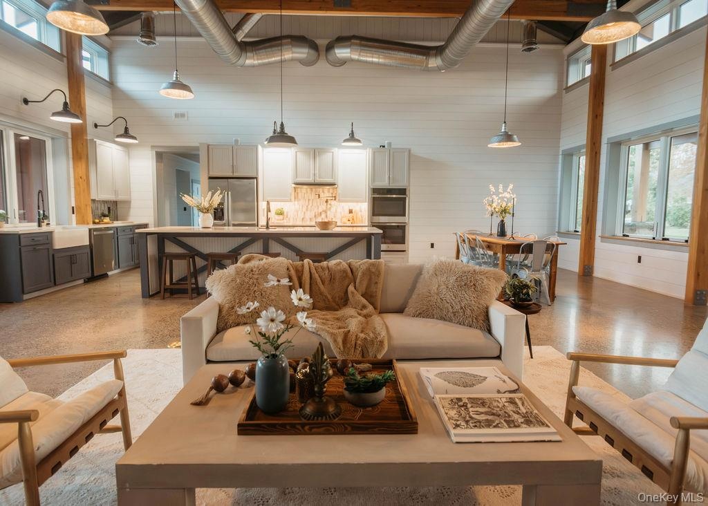 Tucked away on five serene acres in Gardiner, NY, just minutes from the Wildflower Resort, Mohonk Preserve, and the vibrant village, this net-zero energy retreat is more than a home—it's a lifestyle of intentional design, sustainability, and connection to nature. With over 3,000 square feet of artfully crafted living space, this custom-built 3-bedroom, 3.5-bath residence balances high performance and high style. Designed with ICF construction, radiant-heated polished concrete floors, solar panels, and smart-home technology, every detail was thoughtfully chosen for comfort, efficiency, and ease. Step inside to an expansive open-concept layout where warm wood-paneled ceilings, industrial-style exposed ductwork, and walls of oversized windows blur the line between indoors and out. A gourmet kitchen with bold custom cabinetry and a spacious island invites everything from slow mornings to lively gatherings. The adjacent dining and great room center around a floor-to-ceiling fireplace—designed for both everyday living and elevated entertaining. Each bedroom is a private sanctuary with its own en-suite bath, including a luxe primary suite featuring a spa-like bath with a soaking tub, walk-in closet, and sliding doors that open directly to the back patio. Whether it's a quiet cup of coffee or a deep breath under the stars, this home supports every rhythm of life. Outdoors, an insulated, heated ICF pool offers year-round enjoyment. The oversized garage—with custom tri-fold glass doors—functions as a media lounge, rec space, or studio, adapting to whatever life calls for next. Add in an EV charger, expansive lawns, and endless garden or exploration potential, and you have a future-proof home where lifestyle leads. Whether you're hosting weekend guests, working remotely with a view, or simply looking for a forever home that reflects your values, 1248 Albany Post Rd offers a rare opportunity to live with design, comfort, and consciousness in perfect harmony.