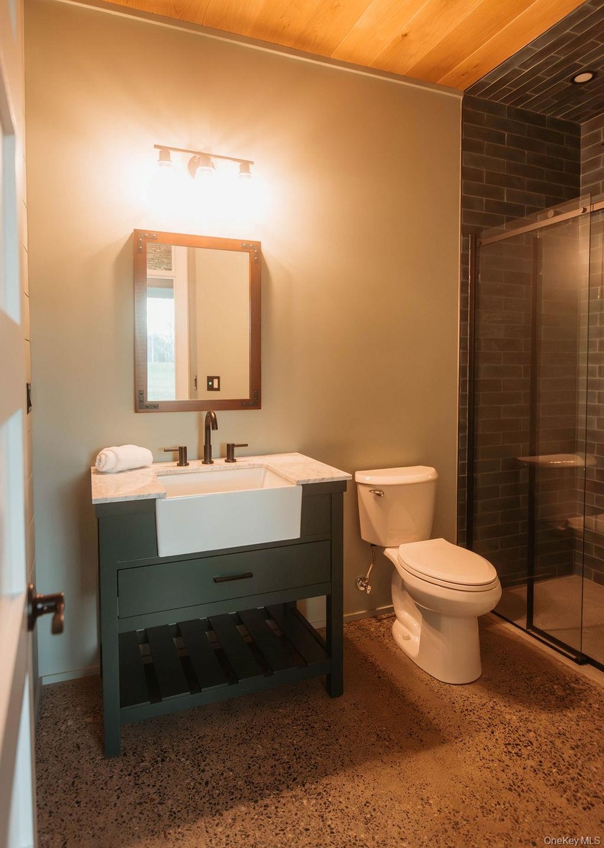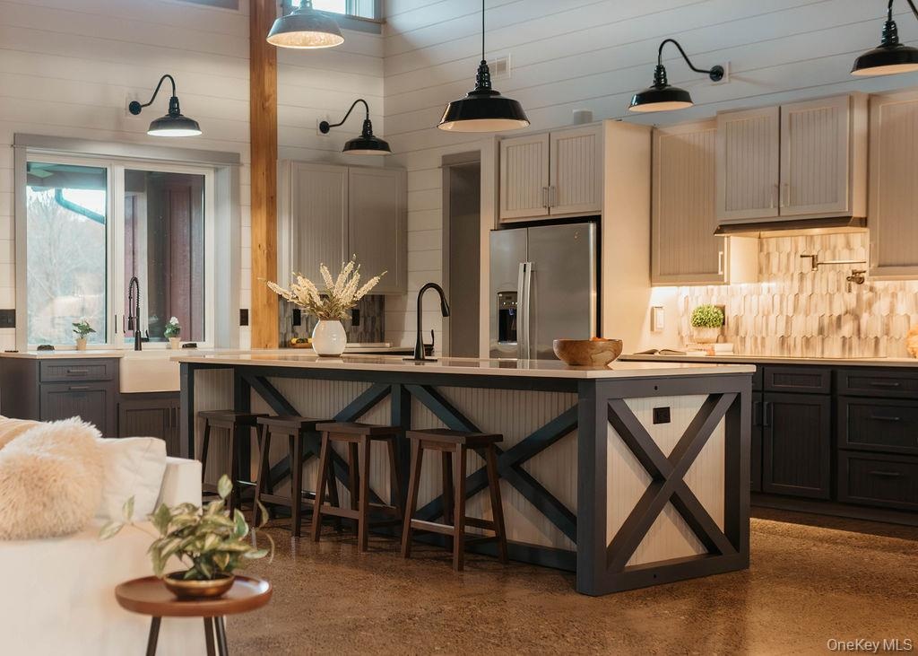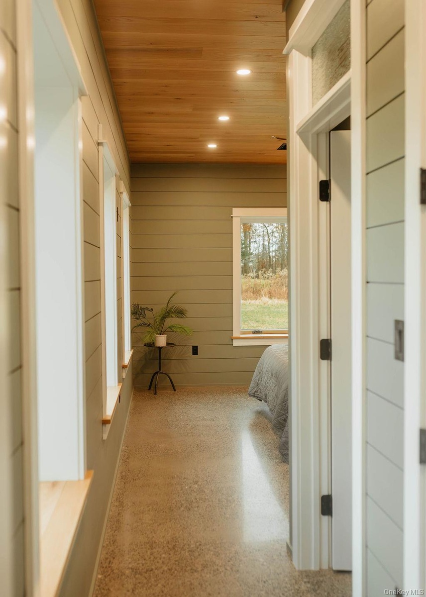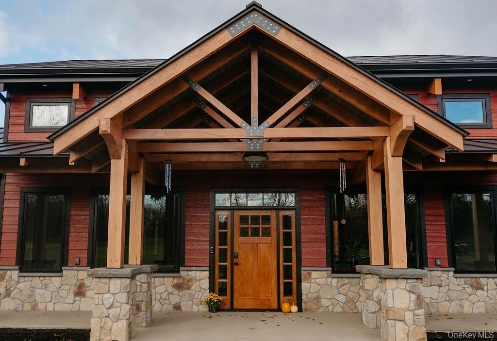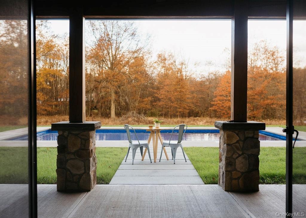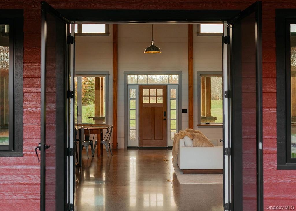 Tucked away on five serene acres in Gardiner, NY, just minutes from the Wildflower Resort, Mohonk Preserve, and the vibrant village, this net-zero energy retreat is more than a home—it's a lifestyle of intentional design, sustainability, and connection to nature. With over 3,000 square feet of artfully crafted living space, this custom-built 3-bedroom, 3.5-bath residence balances high performance and high style. Designed with ICF construction, radiant-heated polished concrete floors, solar panels, and smart-home technology, every detail was thoughtfully chosen for comfort, efficiency, and ease. Step inside to an expansive open-concept layout where warm wood-paneled ceilings, industrial-style exposed ductwork, and walls of oversized windows blur the line between indoors and out. A gourmet kitchen with bold custom cabinetry and a spacious island invites everything from slow mornings to lively gatherings. The adjacent dining and great room center around a floor-to-ceiling fireplace—designed for both everyday living and elevated entertaining. Each bedroom is a private sanctuary with its own en-suite bath, including a luxe primary suite featuring a spa-like bath with a soaking tub, walk-in closet, and sliding doors that open directly to the back patio. Whether it's a quiet cup of coffee or a deep breath under the stars, this home supports every rhythm of life. Outdoors, an insulated, heated ICF pool offers year-round enjoyment. The oversized garage—with custom tri-fold glass doors—functions as a media lounge, rec space, or studio, adapting to whatever life calls for next. Add in an EV charger, expansive lawns, and endless garden or exploration potential, and you have a future-proof home where lifestyle leads. Whether you're hosting weekend guests, working remotely with a view, or simply looking for a forever home that reflects your values, 1248 Albany Post Rd offers a rare opportunity to live with design, comfort, and consciousness in perfect harmony.