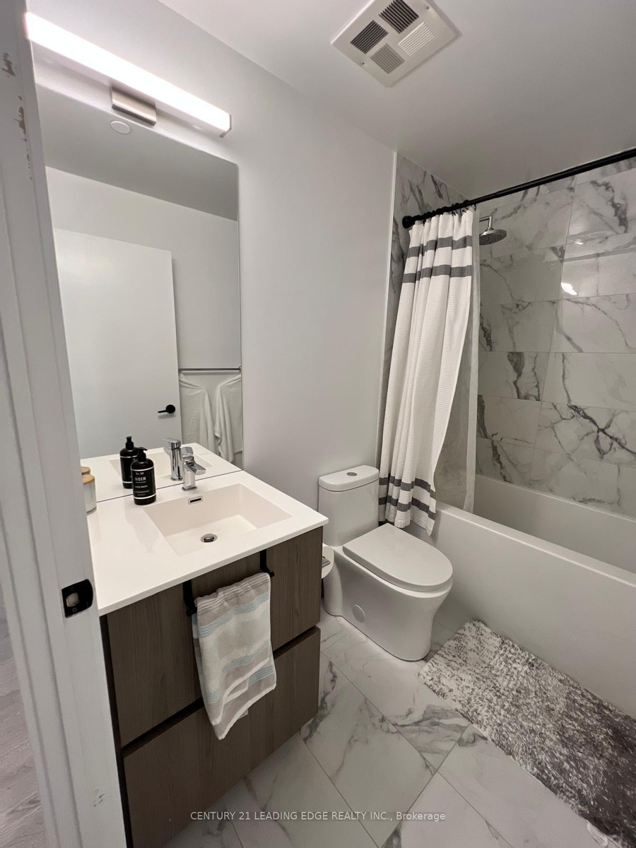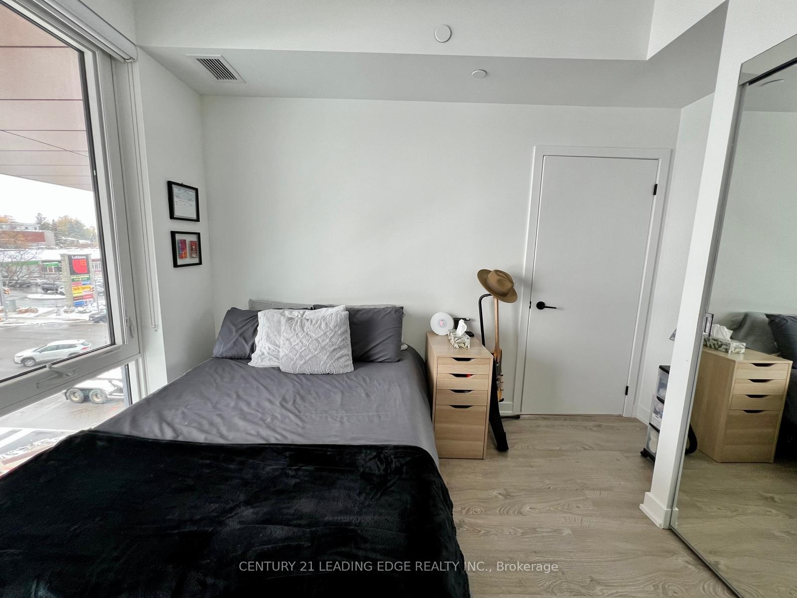 Tenanted, available from Jan 1st, 2026. One of the biggest 2-bedroom + den units in the building. The primary bedroom has a walk-out balcony overlooking the plaza across the street. NEW blinds in the unit. Convenient location: school, grocery shopping, library, BEACH and lake access just behind the building. Non-obstructive view. Parking + locker included, Hi-speed WIFI included in the lease cost