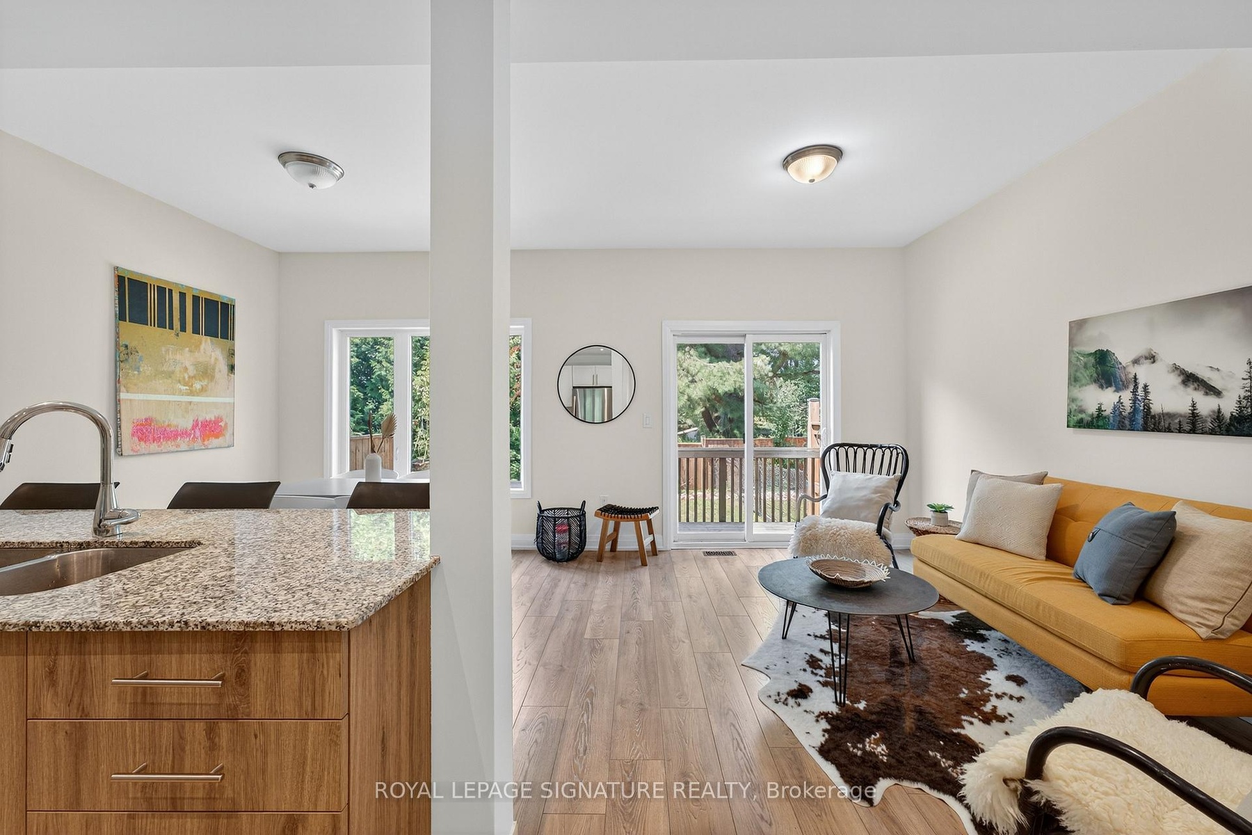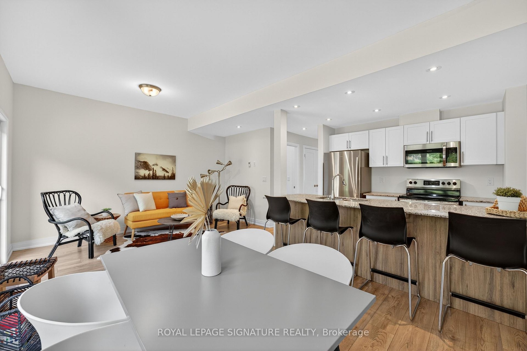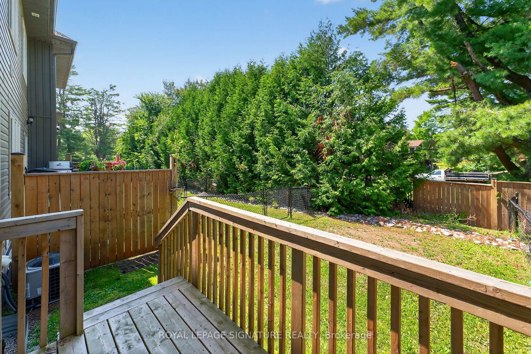 Muskoka Living! 3 bed, 4 bath modern townhome with fenced yard, attached garage, private driveway, clubhouse, trails, golf course and more.Experience the perfect blend of comfort and convenience in this stunning townhome located just minutes from downtown Bracebridge. Granite Springs offers an exceptional lifestyle with outdoor adventures right at your doorstep. Explore breathtaking waterfalls, pristine beaches, scenic bike trails, and renowned golf courses. Enjoy boutique shopping and delightful dining options, all within a short drive. Step inside this bright, freshly painted unit to engineered hardwood flooring and pot lights that enhance the home's bright and airy atmosphere. The spacious open concept living, dining area features a large island with additional storage and walk-out to the private backyard, perfect for relaxing evenings at home. Enjoy the convenience of upstairs laundry, making everyday chores a breeze. The primary bedroom features a large walk in closet, ensuite washroom with a walk in shower, double sink and modern soaker tub. A covered porch with a walkout deck and a gas BBQ outlet invites you to enjoy alfresco dining and entertaining in your private outdoor space. The clubhouse includes a pool table, party room, gym, library and outdoor recreation area overlooking the meticulously maintained gardens for additional entertainment space and social events in this family friendly community. This townhome is ready for you to move in and start enjoying life in this vibrant community. Don't miss your chance to own this beautiful townhome in Granite Springs, where nature and urban amenities coexist.