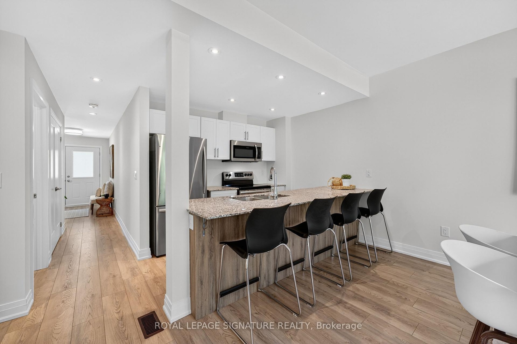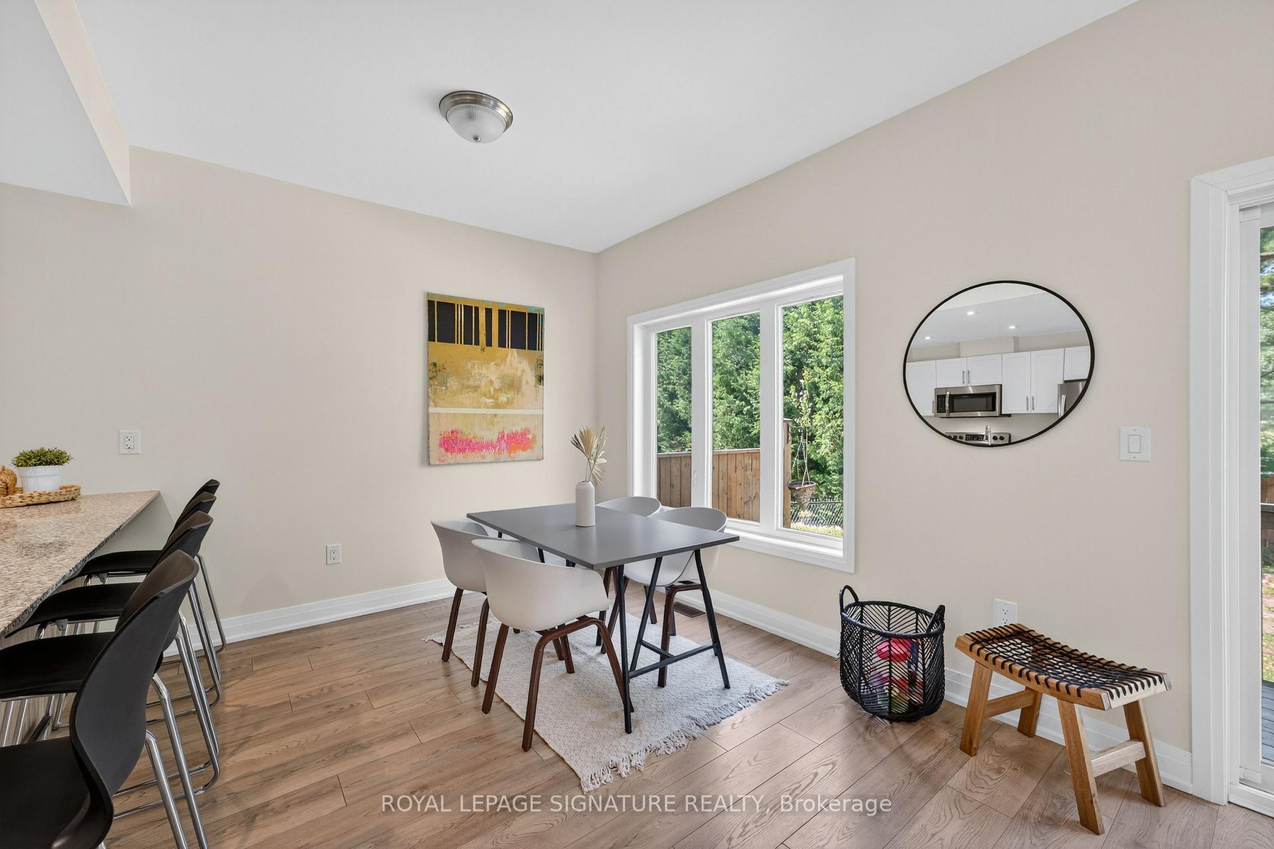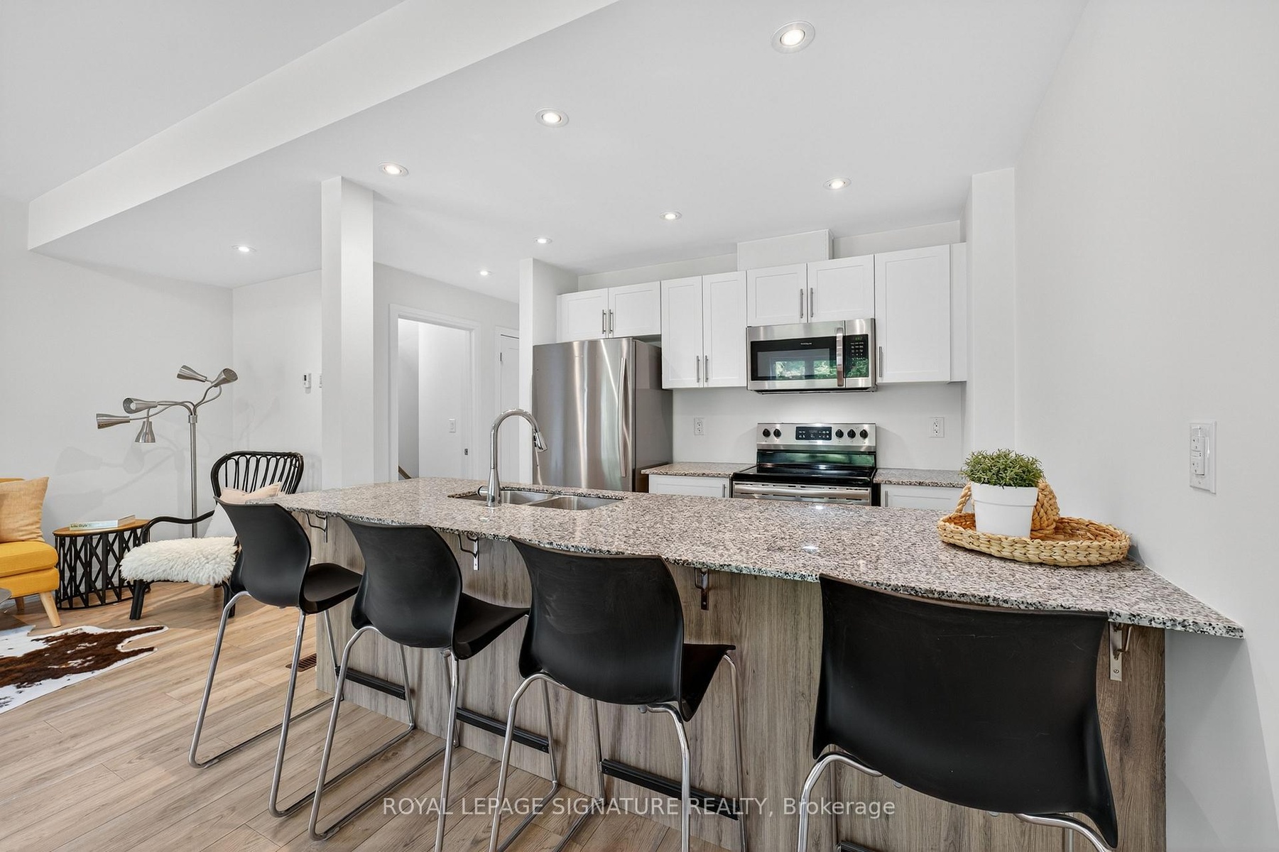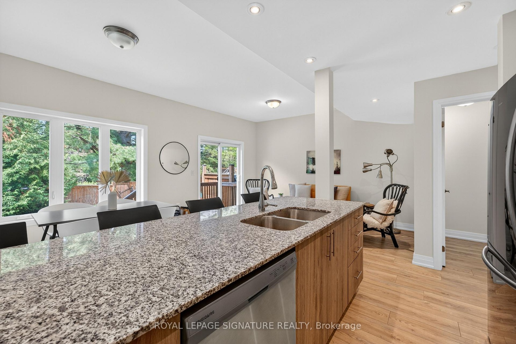 Muskoka Living! 3 bed, 4 bath modern townhome with fenced yard, attached garage, private driveway, clubhouse, trails, golf course and more.Experience the perfect blend of comfort and convenience in this stunning townhome located just minutes from downtown Bracebridge. Granite Springs offers an exceptional lifestyle with outdoor adventures right at your doorstep. Explore breathtaking waterfalls, pristine beaches, scenic bike trails, and renowned golf courses. Enjoy boutique shopping and delightful dining options, all within a short drive. Step inside this bright, freshly painted unit to engineered hardwood flooring and pot lights that enhance the home's bright and airy atmosphere. The spacious open concept living, dining area features a large island with additional storage and walk-out to the private backyard, perfect for relaxing evenings at home. Enjoy the convenience of upstairs laundry, making everyday chores a breeze. The primary bedroom features a large walk in closet, ensuite washroom with a walk in shower, double sink and modern soaker tub. A covered porch with a walkout deck and a gas BBQ outlet invites you to enjoy alfresco dining and entertaining in your private outdoor space. The clubhouse includes a pool table, party room, gym, library and outdoor recreation area overlooking the meticulously maintained gardens for additional entertainment space and social events in this family friendly community. This townhome is ready for you to move in and start enjoying life in this vibrant community. Don't miss your chance to own this beautiful townhome in Granite Springs, where nature and urban amenities coexist.