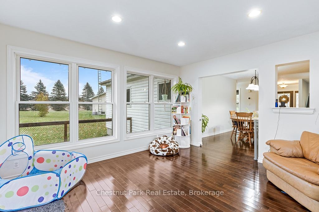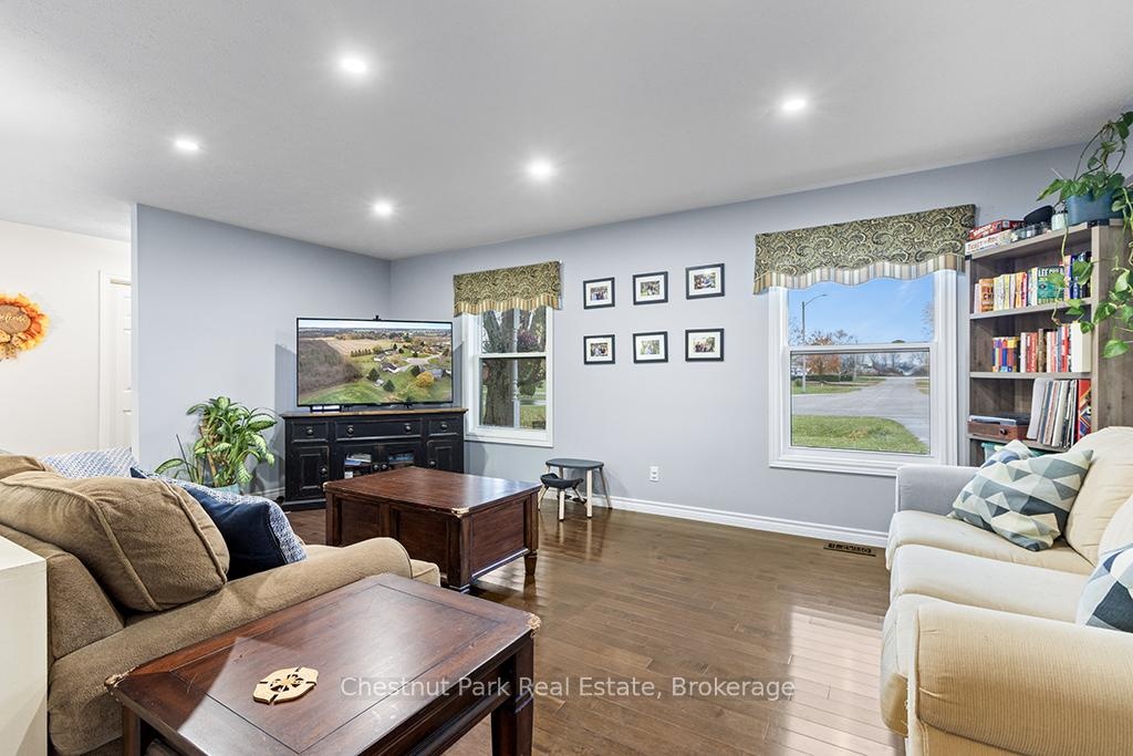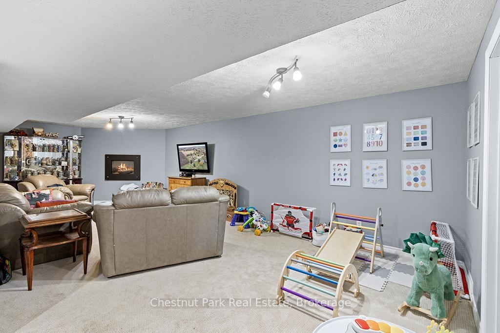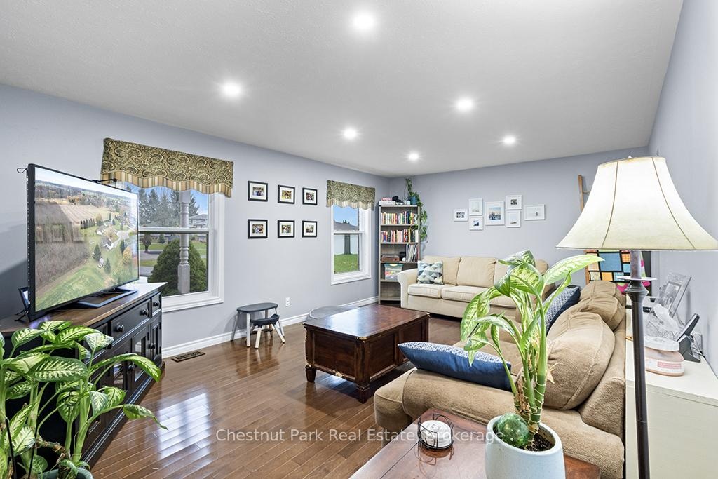 Welcome to 115 Mary Ave in Kilsyth; the perfect quiet cul-de-sac just outside of Owen Sound. Situated on a pie shaped lot is this wonderful 4 bedroom, 2 bath home with attached garage and finished basement. The spacious main floor has 3 bedrooms, 4pc bath, large living room, kitchen and dining area, beautiful bright sunroom overlooking the backyard, hardwood flooring, and access to the attached double garage. The finished, carpeted lower level has a large cozy family room with gas fireplace, large 4th bedroom, 3pc bath, laundry/utility room and a bonus games room with an electric fireplace. 22' x 19' double attached garage, insulated and heated with a gas fireplace and access to backyard. Great pie shaped lot with new storage shed, and raised veggie garden boxes. This home has so much to offer!