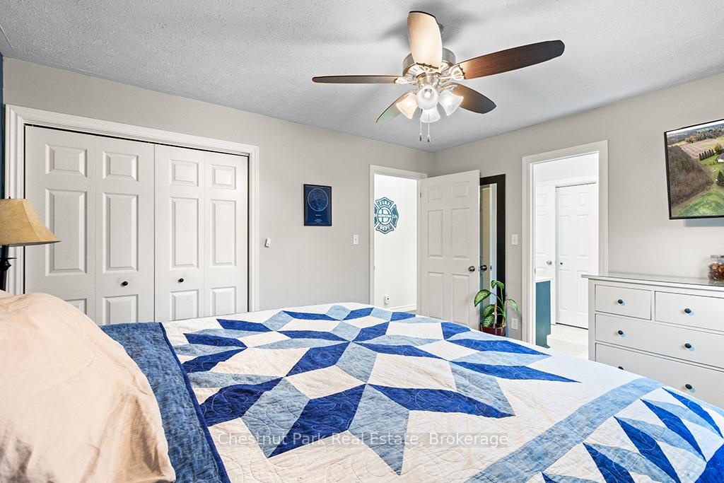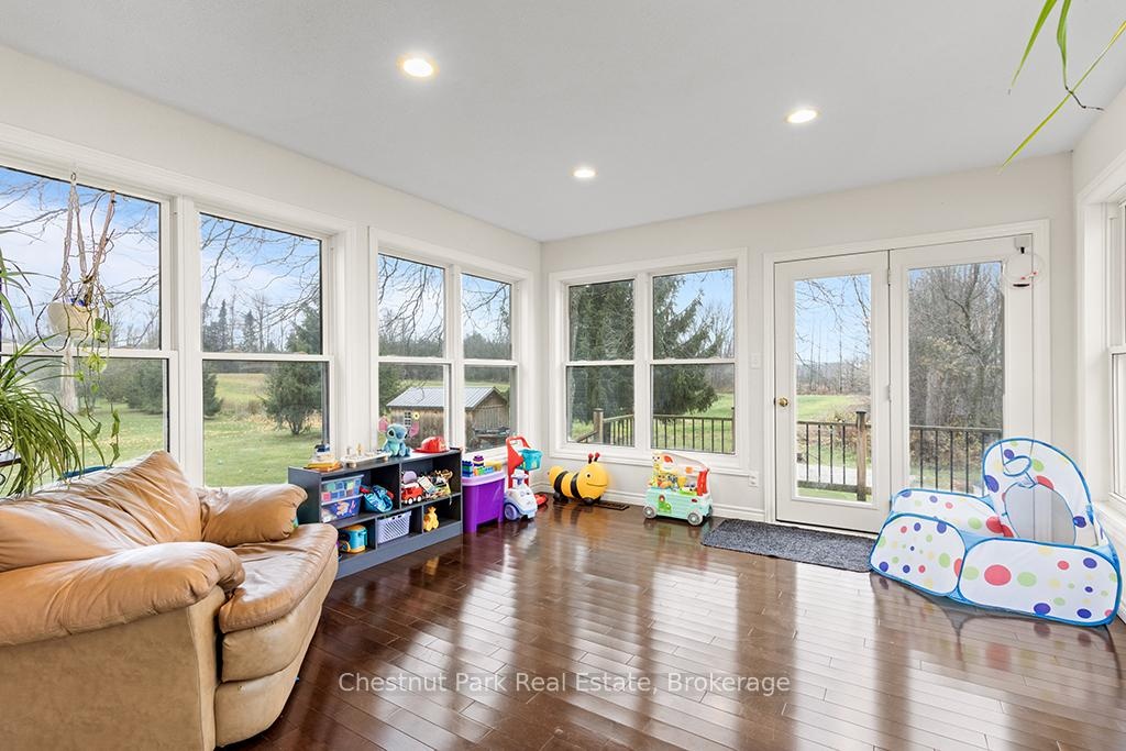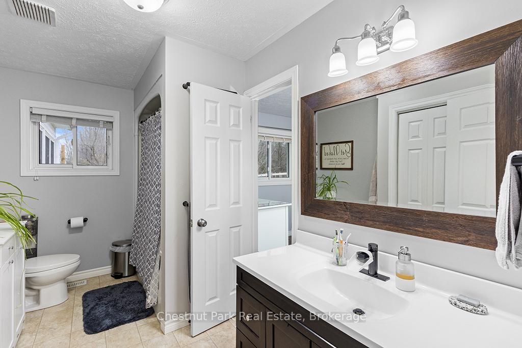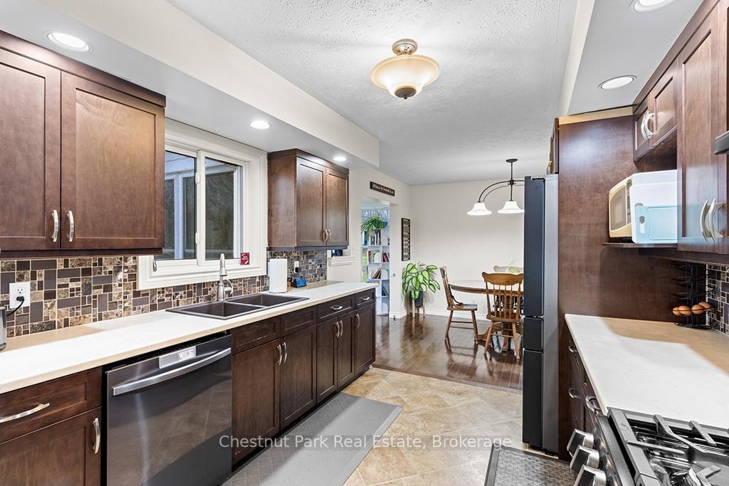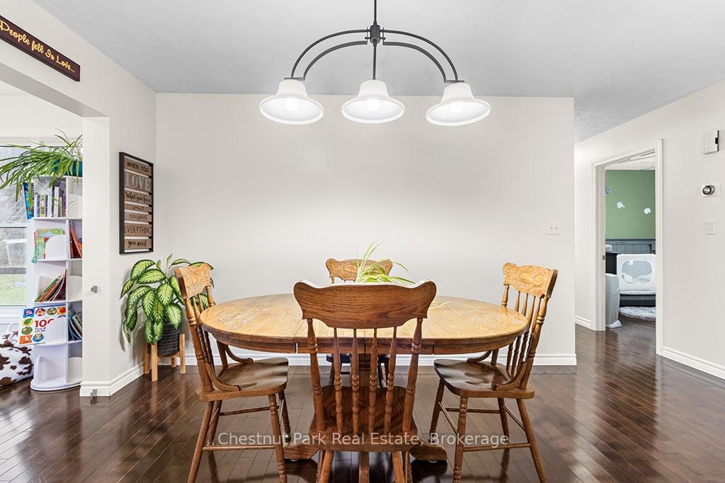 Welcome to 115 Mary Ave in Kilsyth; the perfect quiet cul-de-sac just outside of Owen Sound. Situated on a pie shaped lot is this wonderful 4 bedroom, 2 bath home with attached garage and finished basement. The spacious main floor has 3 bedrooms, 4pc bath, large living room, kitchen and dining area, beautiful bright sunroom overlooking the backyard, hardwood flooring, and access to the attached double garage. The finished, carpeted lower level has a large cozy family room with gas fireplace, large 4th bedroom, 3pc bath, laundry/utility room and a bonus games room with an electric fireplace. 22' x 19' double attached garage, insulated and heated with a gas fireplace and access to backyard. Great pie shaped lot with new storage shed, and raised veggie garden boxes. This home has so much to offer!