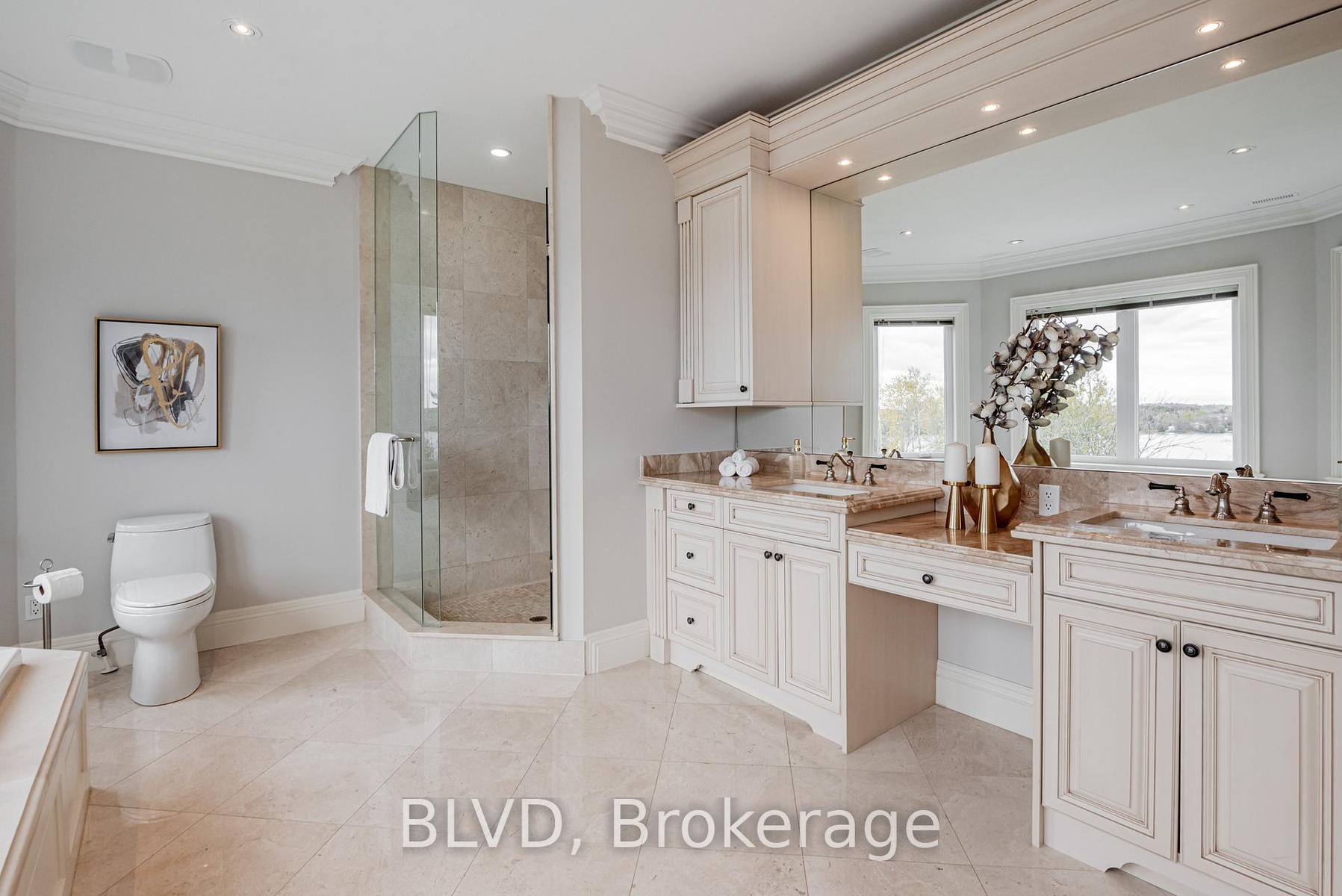 Experience the pinnacle of lakefront luxury at this exceptional ~6,400 sq.ft Lake Wilcox residence, located in Oak Ridges, where contemporary elegance meets the serenity of waterfront living. Flooded w/ natural light from abundant large windows, the home invites the outdoors in at every turn. Wake up to serene water vistas, entertaining in grand open spaces, and ending your day with some of the most breathtaking sunsets this lake has to offer, while sitting on an elevated 3/4 acre Lot. This beautifully maintained home offers 11' main flr ceiling, Elevator, 5 spacious bedrooms, each w/ its own closet and ensuite bathroom, including a primary suite with a generous walk-in closet, ensuite bathrm featuring a glass shower and a large bathtub o/looking the lake, 3 spacious garages, large circular drive, gorgeous brick/stone exterior, Ideal for those who love to entertain, the kitchen is both spacious and functional, featuring custom cabinetry, high-end stainless steel Viking appliances, walk thru pantry, & a large island perfect for meal prep or casual dining. With ample storage and a generous dining area, it's designed to accommodate friends and family w/ ease. A separate side entrance leads to a fully finished basement with a walk-out, complete w/ a home theatre, games room, built-in dry sauna, steam room, and exterior built-in Jacuzzi - the perfect space for relaxation and entertainment. This gem blends comfort, functionality, and style with stunning lake views from every level. Enjoy your own private dock, spacious terraces & meticulously kept grounds w/ in-ground sprinklers - an ideal setting for lakeside relaxation. Nestled among prestigious estates, this property combines privacy w/ convenience, walking distance to water park, sunset boardwalk, volleyball courts, skate park, oak ridge community centre. Whether you're looking for a family home, a seasonal retreat, or a waterfront escape, this Lake Wilcox residence captures the essence of refined lakeside living.