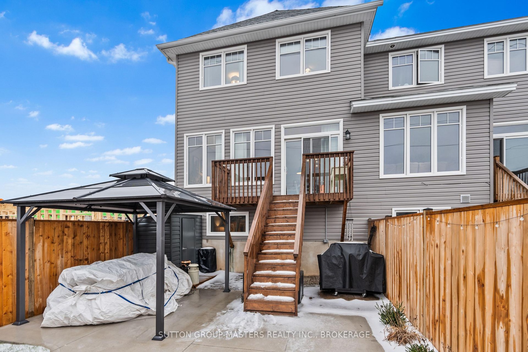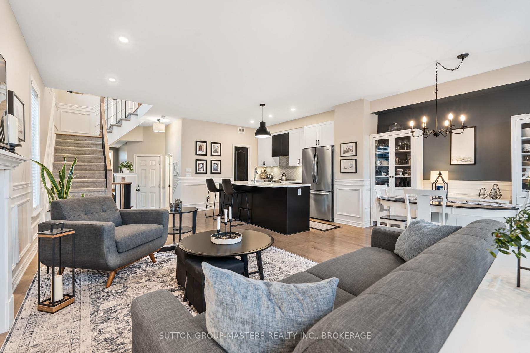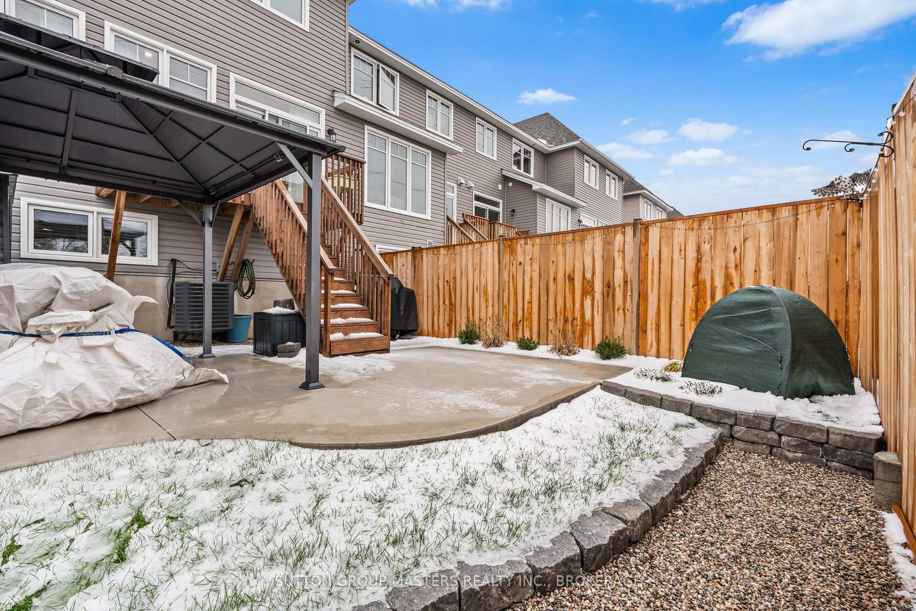 Welcome to 1812 Cinderhill Street - a modern end-unit townhome in Kingston's sought-after Woodhaven neighborhood. This stylish, well-designed home combines comfort, convenience, and family living from the moment you step onto the inviting front porch. Inside, you'll find a bright, open-concept main floor with large windows, custom drapery, and seamless flow between the living, dining, and kitchen areas - perfect for entertaining or relaxing at home. The kitchen features upgraded cabinetry, quartz countertops, a walk-in pantry, generous island, and premium stainless-steel appliances (fridge, stove, microwave, dishwasher). A convenient powder room completes the main level. Upstairs, the spacious primary suite includes a large walk-in closet and a private ensuite with a soaker tub and glass-door shower. Two additional bedrooms, a full main bath AND an upper level laundry with washer and dryer, offer plenty of space for family or guests. The fully finished basement adds versatility with a rec room that's ideal for a home office, gym, or play area. Step outside to your private backyard retreat featuring a patio, gazebo - a great spot for barbecues or quiet evenings outdoors. Additional highlights include a private driveway, attached garage wired for an EV charger, permanently installed Celebright holiday lights, and eavestroughs. Located in a newer west-end subdivision, this home is within walking distance of St. Genevieve Catholic Elementary School, and close to parks, walking paths, shopping, and major commuter routes. With its contemporary finishes, energy-efficient systems, and move-in-ready condition, 1812 Cinderhill Street offers the perfect balance of community and convenience. Call for your personal showing today.