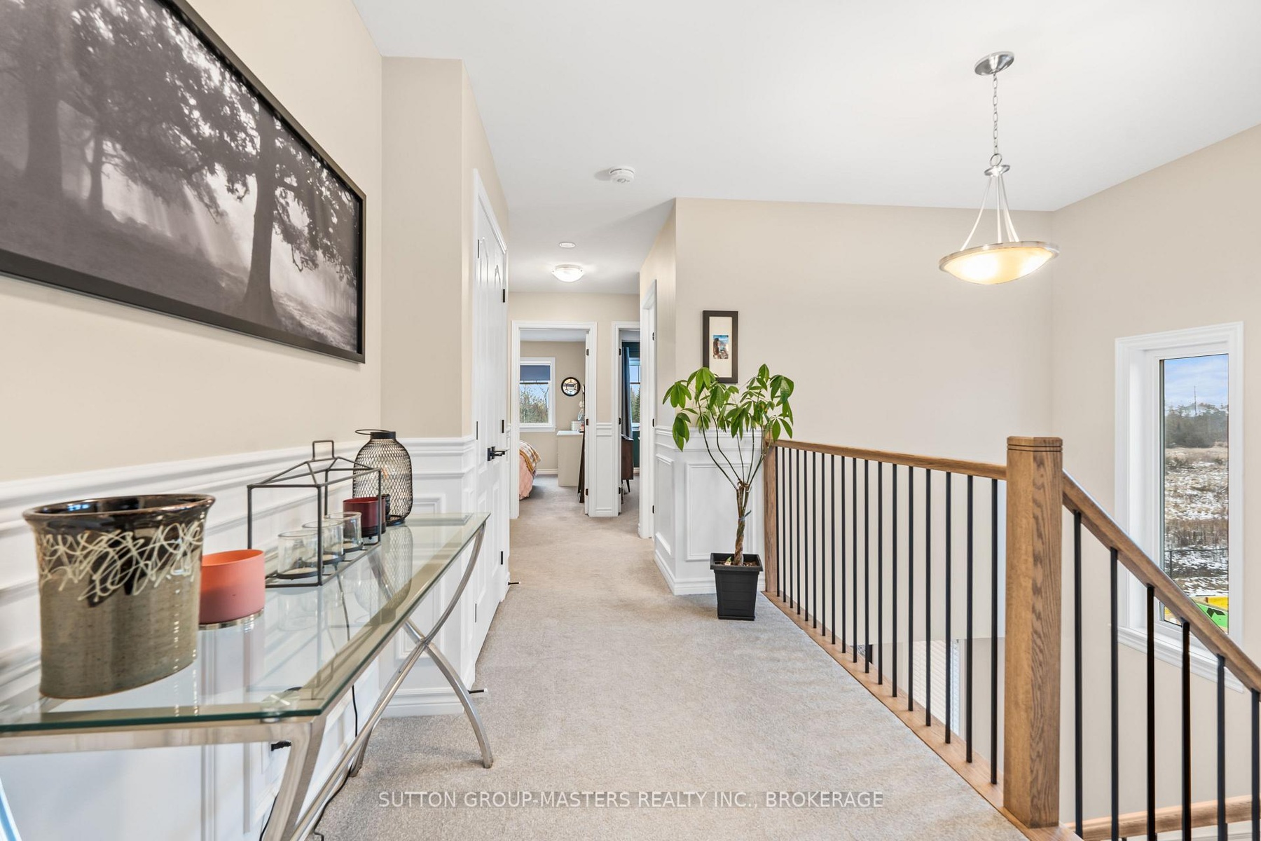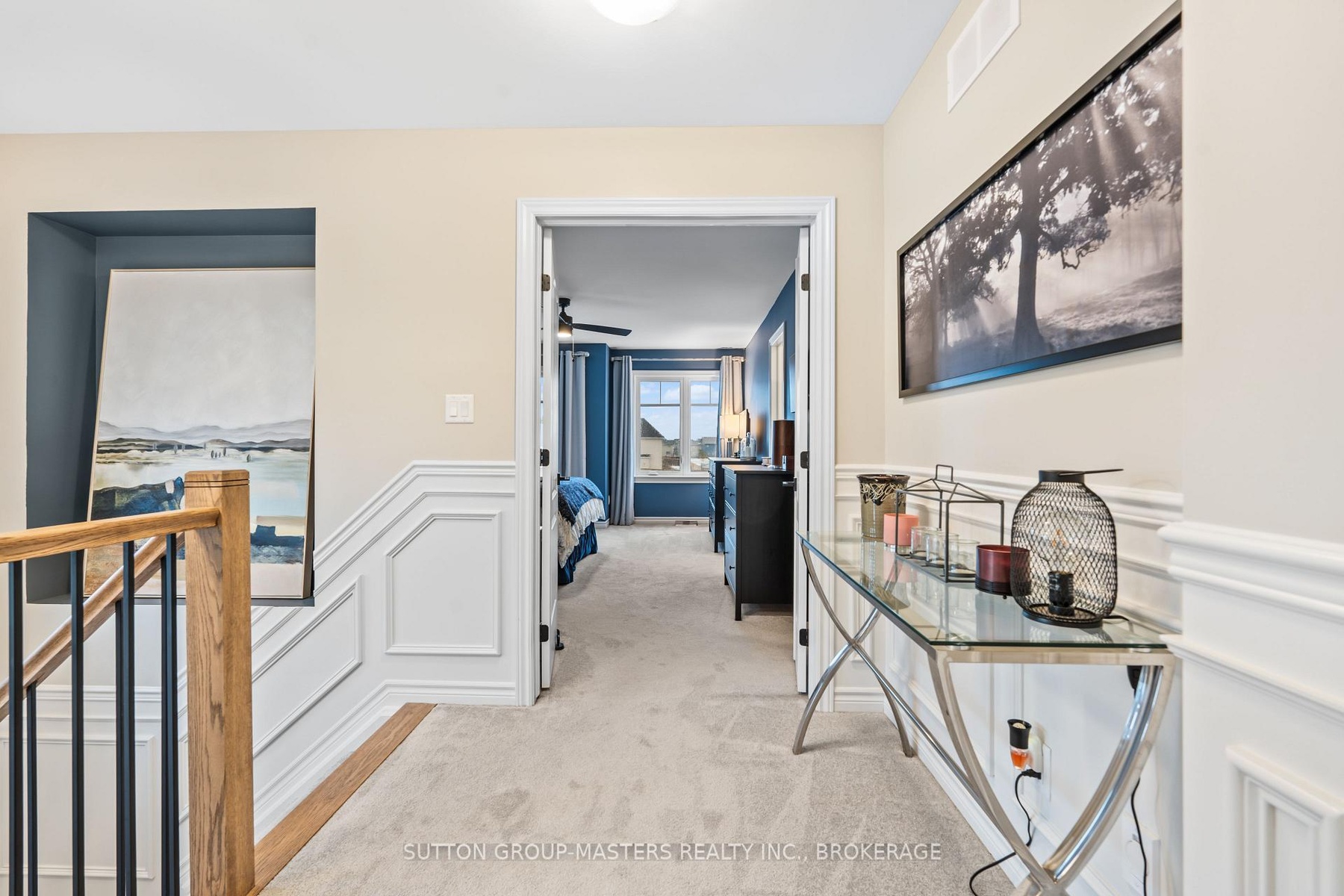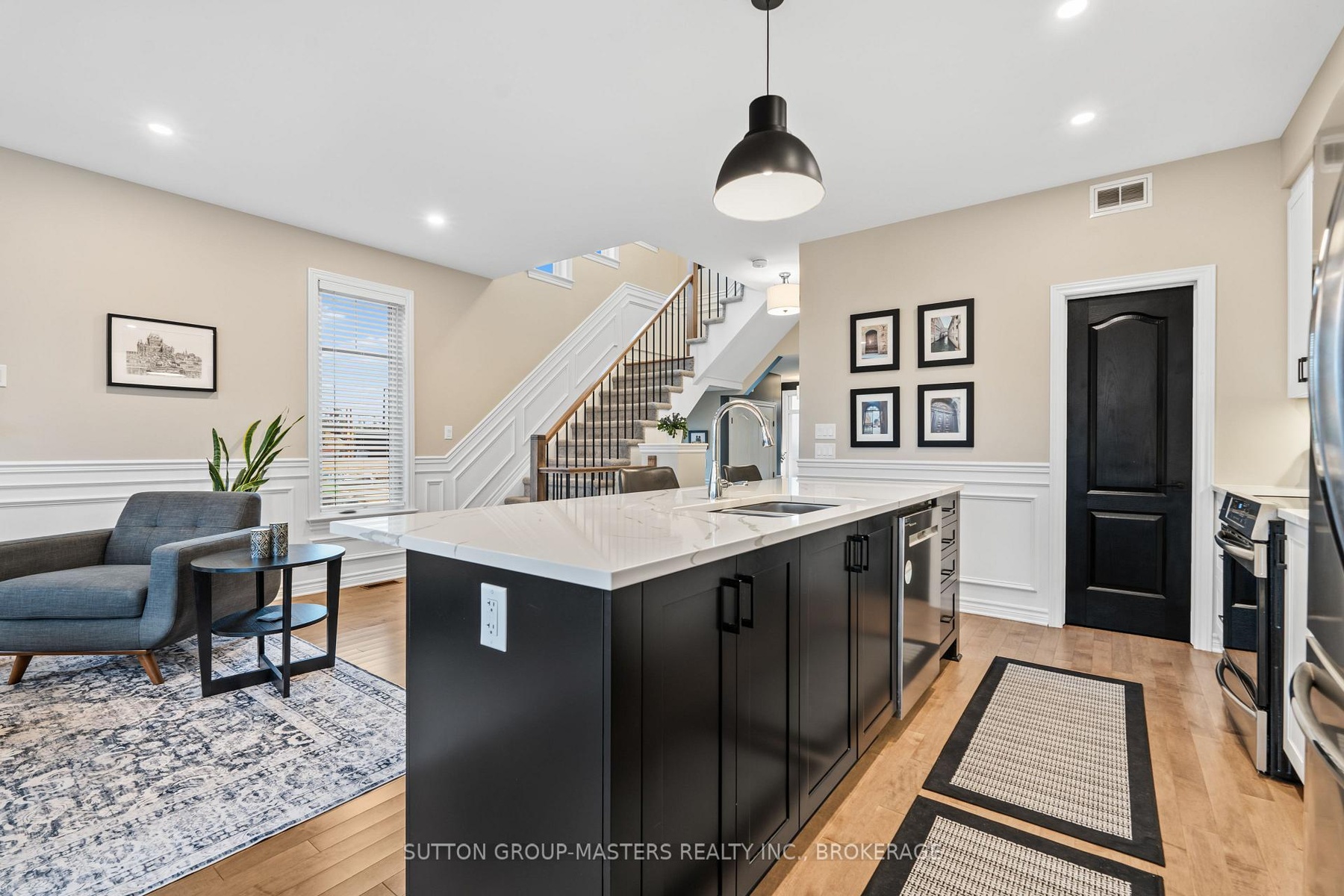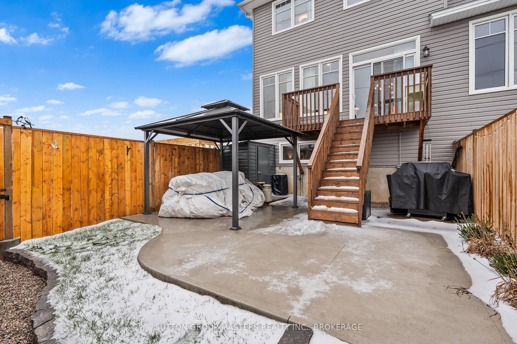 Welcome to 1812 Cinderhill Street - a modern end-unit townhome in Kingston's sought-after Woodhaven neighborhood. This stylish, well-designed home combines comfort, convenience, and family living from the moment you step onto the inviting front porch. Inside, you'll find a bright, open-concept main floor with large windows, custom drapery, and seamless flow between the living, dining, and kitchen areas - perfect for entertaining or relaxing at home. The kitchen features upgraded cabinetry, quartz countertops, a walk-in pantry, generous island, and premium stainless-steel appliances (fridge, stove, microwave, dishwasher). A convenient powder room completes the main level. Upstairs, the spacious primary suite includes a large walk-in closet and a private ensuite with a soaker tub and glass-door shower. Two additional bedrooms, a full main bath AND an upper level laundry with washer and dryer, offer plenty of space for family or guests. The fully finished basement adds versatility with a rec room that's ideal for a home office, gym, or play area. Step outside to your private backyard retreat featuring a patio, gazebo - a great spot for barbecues or quiet evenings outdoors. Additional highlights include a private driveway, attached garage wired for an EV charger, permanently installed Celebright holiday lights, and eavestroughs. Located in a newer west-end subdivision, this home is within walking distance of St. Genevieve Catholic Elementary School, and close to parks, walking paths, shopping, and major commuter routes. With its contemporary finishes, energy-efficient systems, and move-in-ready condition, 1812 Cinderhill Street offers the perfect balance of community and convenience. Call for your personal showing today.