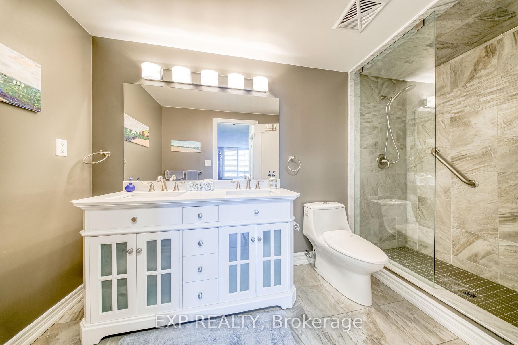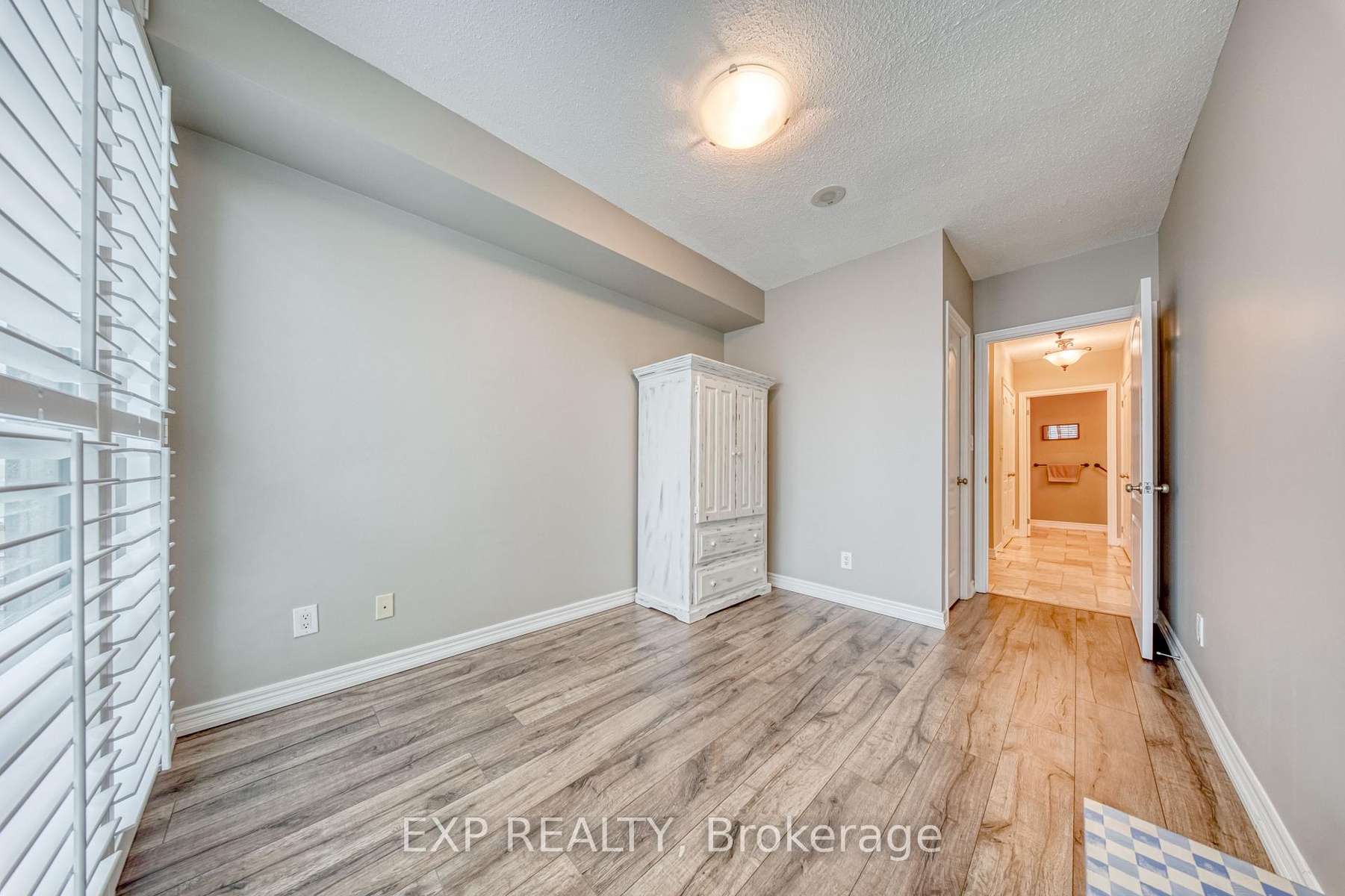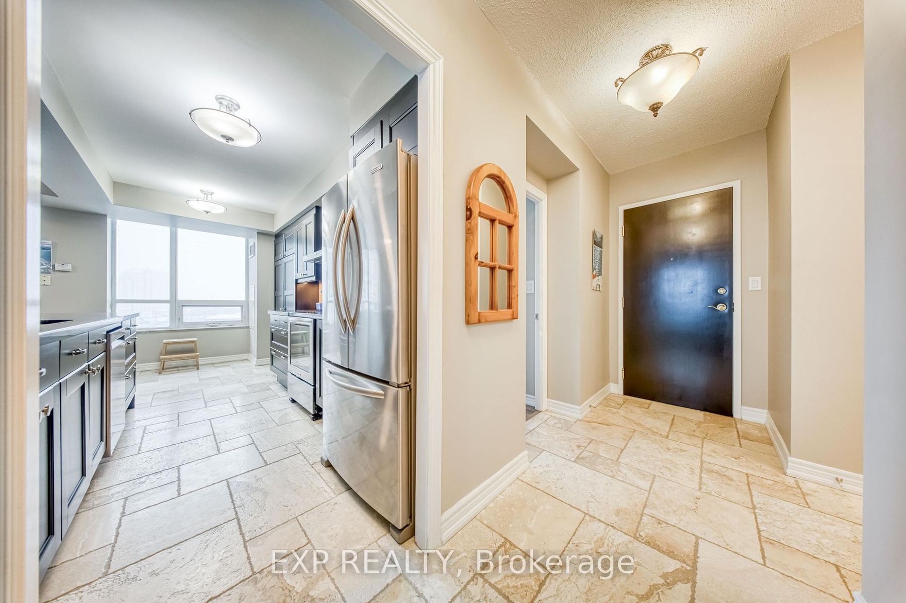 Welcome to Your New Home! Step into this beautifully renovated, bright corner suite and feel the warmth and comfort from the moment you arrive. This spacious (1,300 sqft!!) 2-bedroom + den layout offers a perfect blend of style and functionality in one of the area's most sought-after buildings. The designer kitchen will impress any home chef with its stainless steel appliances, undermount sink, sleek finishes, and abundant storage. Enjoy casual meals at the breakfast bar or gather in the sun-filled eat-in area. The open-concept living and dining rooms are ideal for entertaining, featuring oversized north-west-facing windows that fill the home with natural light and showcase stunning views. A private den provides a quiet retreat-perfect as a home office or reading nook. Relax in the spacious primary suite with dual closets (including a walk-in) and a beautifully updated ensuite. The second bedroom offers versatility with full-length windows and another walk-in closet. The maintenance fees cover heat and water plus Premium Bell TV. Enjoy five-star amenities in this well-managed building-including concierge, gym, indoor pool, party/meeting room, and more. Complete with parking and locker. All this in an unbeatable location-steps to transit, Promenade Mall, restaurants, and everyday conveniences.