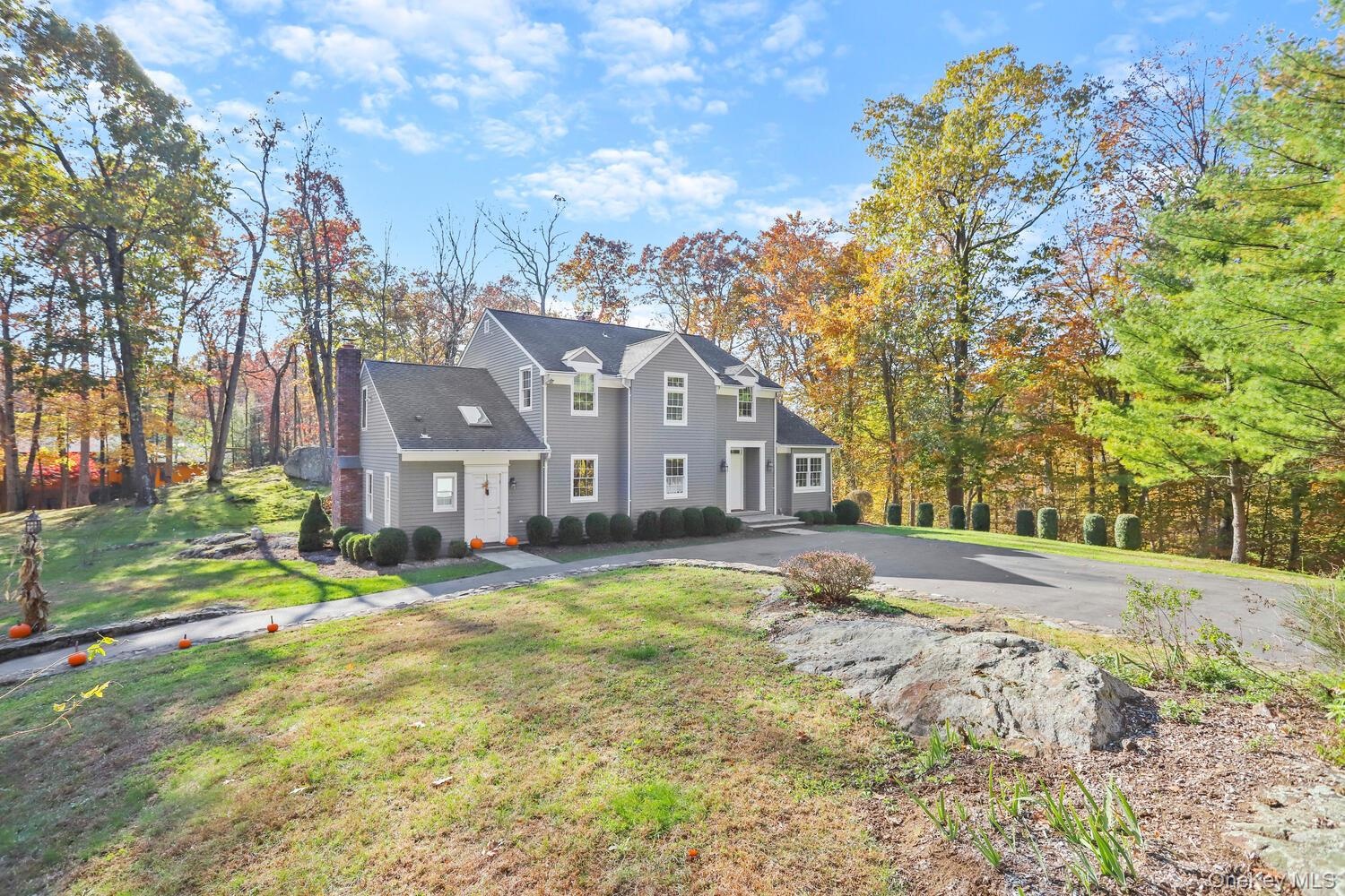Beautifully updated contemporary colonial in a private, wooded setting! Set well back from the road and surrounded by a rustic natural landscape, this home offers a spacious, open floor plan with high ceilings, hardwood floors, and stylish modern updates throughout. The renovated kitchen features stainless steel appliances, a double wall oven, cooktop, cherry cabinetry, wine rack, and granite countertops. A terrific laundry/mudroom sits conveniently off the kitchen. Enjoy multiple gathering spaces, including a living room and family room—each with its own fireplace—and a dining room with potential for a wood-burning stove. A striking updated banister and bridge overlook the living room, adding architectural interest and an airy sense of space. The home offers flexible living options with two bedrooms on the first floor and an updated second-floor primary suite with a sitting room. A rear staircase leads to a separate bonus room, ideal for a studio, playroom, or additional office. Two more rooms on the second floor provide excellent work-from-home flexibility. A detached two-car garage with storage above offers ample space, while the walk-out basement includes a finished room, workshop, storage area, and oil tanks. Major mechanical updates include a high-efficiency furnace, hot water heater, air handler, and two A/C condensers. A sprawling rear deck provides the perfect backdrop to enjoy the peaceful natural surroundings. An adjacent lot is also available for sale; once sold, the driveway will be redone and widened. This home will be connected to sewer—after which the three additional second-floor rooms may qualify to be converted into bedrooms. A rare combination of privacy, space, and modern updates—this special home is not to be missed. There are no audio recording devices inside this property.