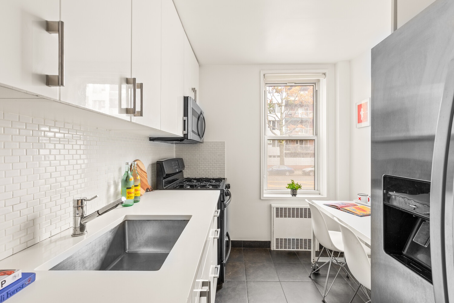 Situated at the corner of the building, this residence enjoys peaceful southern and eastern views overlooking treetops and the charming Victorian homes of Ditmas Park.