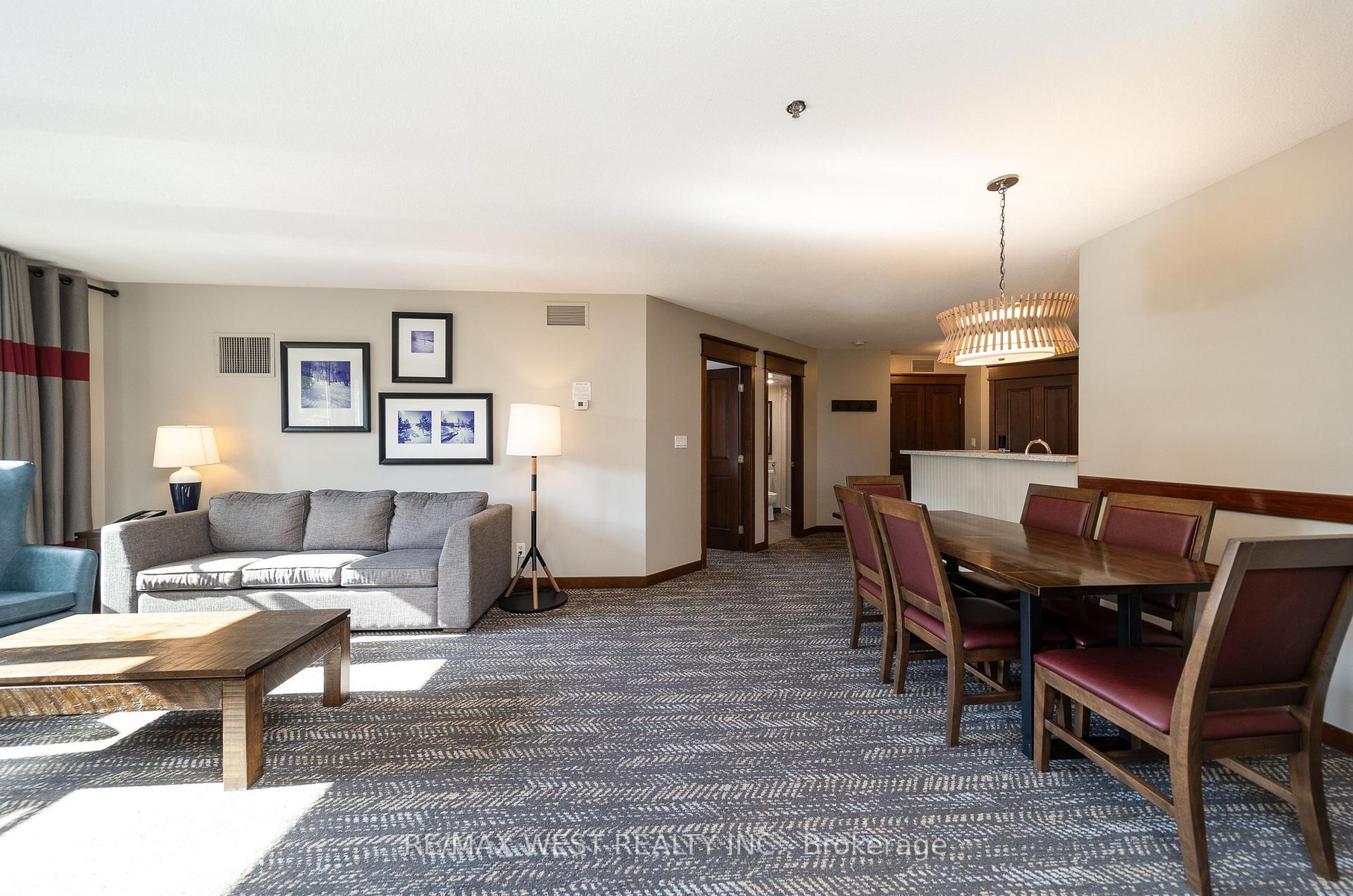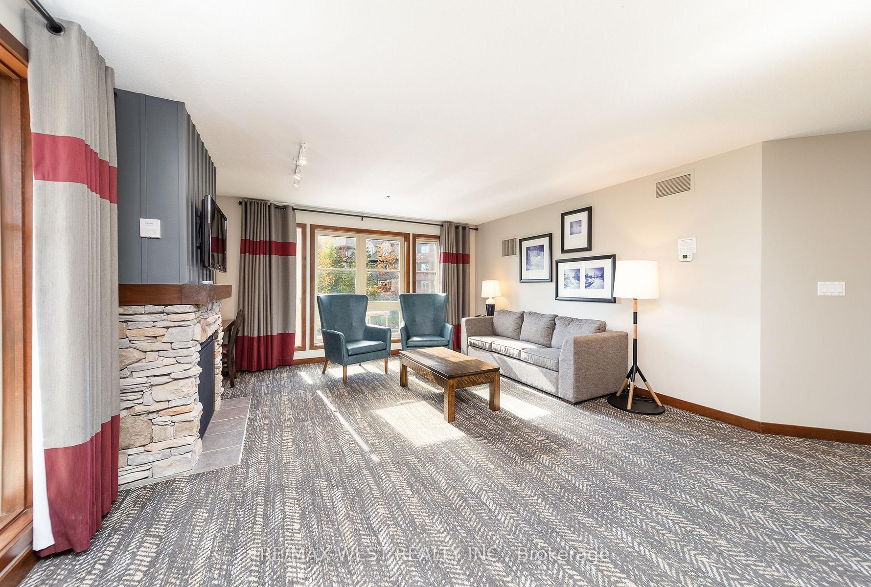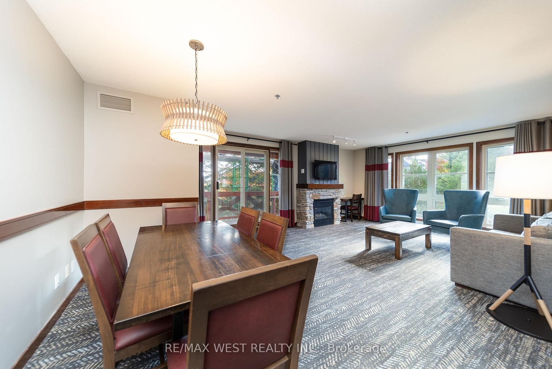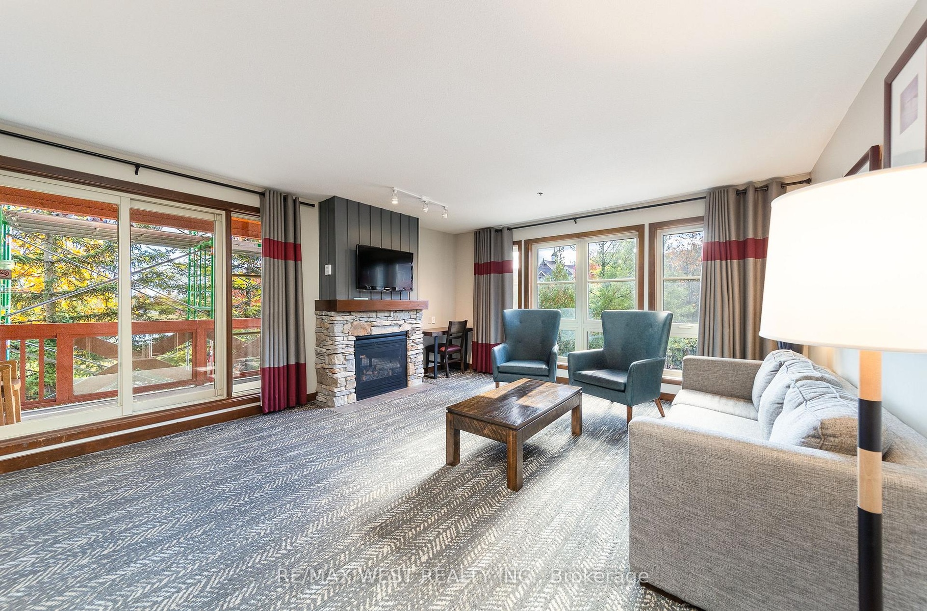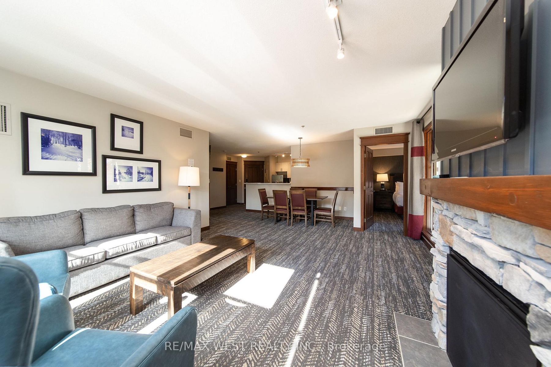 CORNER SUITE SLOPE-SIDE! Rarely offered corner suite right at the base of the Silver Bullet Chair Lift, this fully furnished 2-bedroom, 2-bathroom in the popular low-rise Weider Lodge offers over 1,000 sq. ft. of bright, open-concept living with spectacular views of the ski hill, pool, and Village. The oversized deck is a true highlight, offering beautiful views of the Weider Lodge pool and Village pond, with partial tree coverage that provides natural privacy while still providing a resort atmosphere.The spacious layout features a full kitchen, two generous bedrooms, and two full bathrooms, making it perfect for family getaways & generating income. The suite participates in the Blue Mountain Village Rental Program, generating strong, consistent returns (grossing over $70,000 annually) while still allowing generous owner use (10 days per month).Enjoy full access to resort-style amenities, including an outdoor seasonal pool, year-round hot tub, fitness centre, sauna, owner ski locker, underground parking, and 24-hour front desk service. Condo fees include all utilities. HST may be applicable (can be deferred with an HST number). A 2% + HST Blue Mountain Village Association entry fee applies on closing, with an annual BMVA fee of $1.08 + HST per sq. ft.