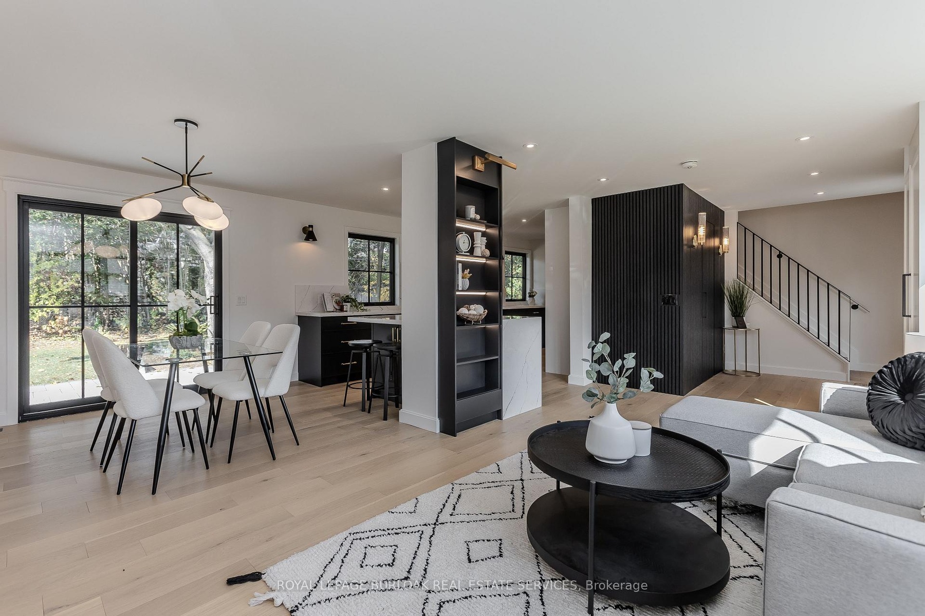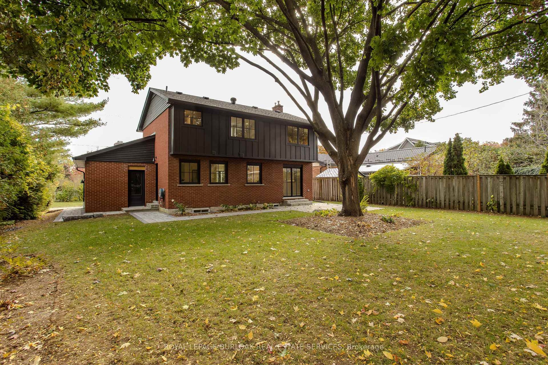 Modern luxury and family-friendly living in this fully renovated home in Dynes. Nestled on a mature, pool-sized lot with mature trees, this home is mins from schools, parks, dining, transit, hwys & lakefront. Spanning 2,177SF of total finished living space, this open-concept layout features exquisite details at every turn. From the stunning curb appeal with refinished exterior, fibreglass entry door & cedar-roofed covered porch, to the engineered white oak floors and abundant LED pot lights, this home has it all. The custom kitchen is a dream with slim-shaker cabinets, quartz counters & matching slab backsplash, gold fixtures, pantry, appliance garage &spacious island with breakfast bar. Seamless flow from kitchen to dining area with black frame sliders opening to a private yard with stone patio-ideal for entertaining. The inviting living room features a striking gas fireplace with modern surround & mantle. Plus an oversized window for natural light. Upstairs, retreat to a luxurious primary suite with WI closet & spa-like ensuite with freestanding tub& Riobel tub filler, large glass shower & double vanity. 2 additional bedrooms and a full bath complete this level. The finished lower level incl a cozy family room, office, massive laundry room with custom storage cabinetry & quartz counters. Extras: EV charger rough-in, gas BBQ connection, new Ridley windows, updated HVAC, sump pump, new electrical & much more! See supplement. All work done with permits. Move in ready!