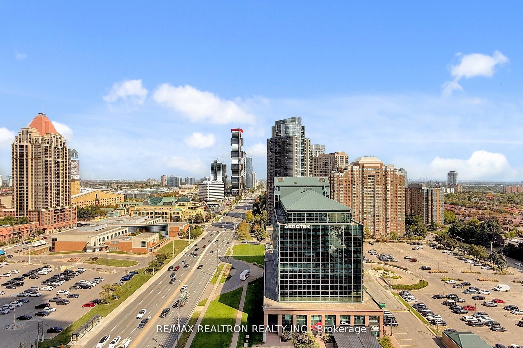 Welcome To This Newer 1-Bedroom Plus Den Corner Unit At M City Tower 1, Located In The Vibrant Mississauga City Centre. This 698 Sq. Ft. Condo Offers A Functional Layout With No Wasted Space, Including A 182 Sq. Ft. Wrap-Around Balcony That Provides Breathtaking, Unobstructed Panoramic Views Of Mississauga And Even The Downtown Toronto Skyline With The CN Tower. The Versatile Den Is A Separate Room With Its Own Window And Walkout, Making It The Perfect Space For A Home Office Or A Second Bedroom. The Bright, Sun-Drenched Bedroom Features Oversized Windows, And The Contemporary Kitchen Is Equipped With Built-In Paneled Appliances, A Quartz Countertop, And A Stylish Backsplash. Luxury Features Continue Throughout The Unit With Floor-To-Ceiling Windows, Smart Lock Technology, And A Smart Thermostat. This Prime Location Is Just Steps Away From Square One, Celebration Square, Sheridan College, And The Central Library. With Easy Access To Major Highways (403, 401, 407, And 410) And A Short Drive To The University Of Toronto Mississauga, This Condo Is A Commuter's Dream. Enjoy The Convenience Of Nearby Grocery Stores, Restaurants, Parks, And Banks. Amazing Amenities In The Building Include Fitness Room, Party Room, BBQ Station, Outdoor Skating Rink, Outdoor Pool, Kid's Zone, 24-Hour Concierge Etc.
