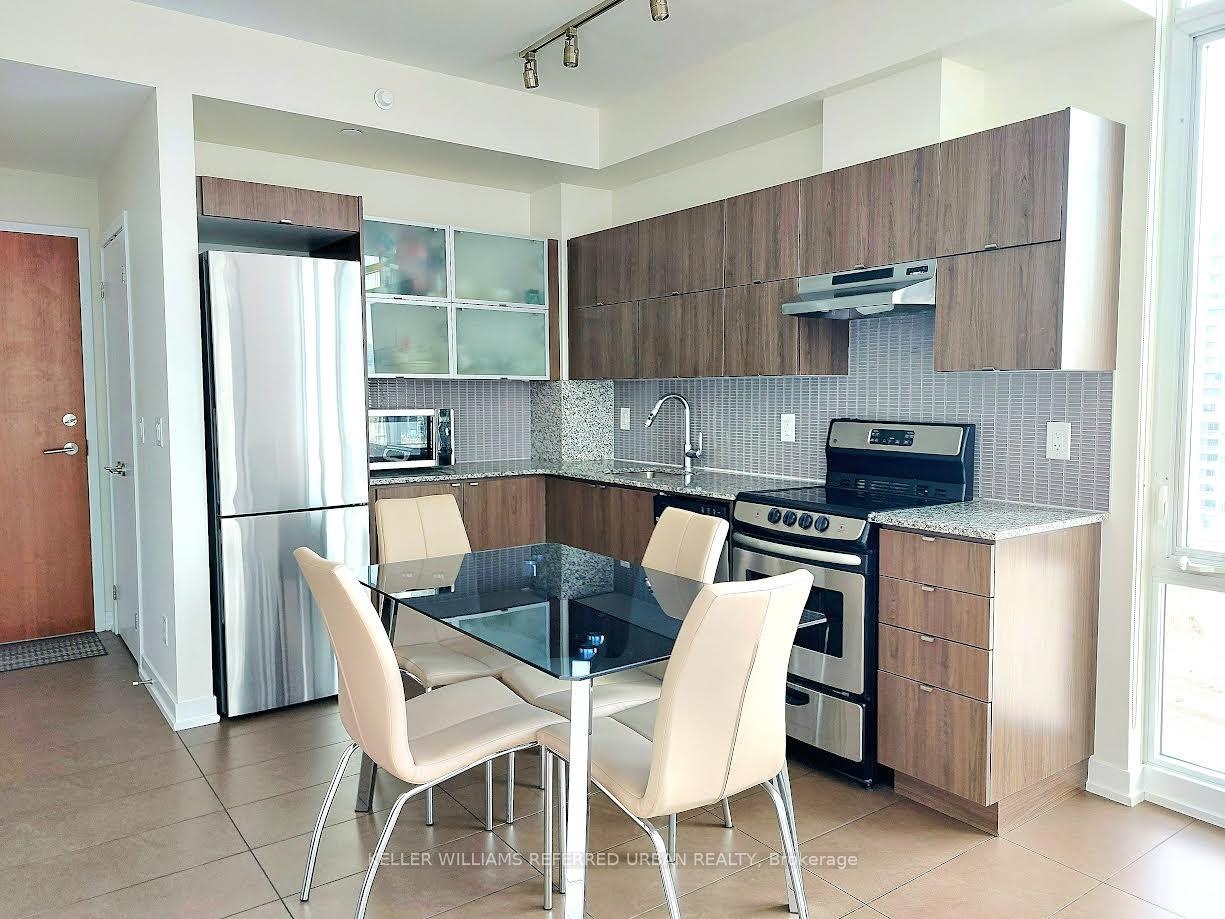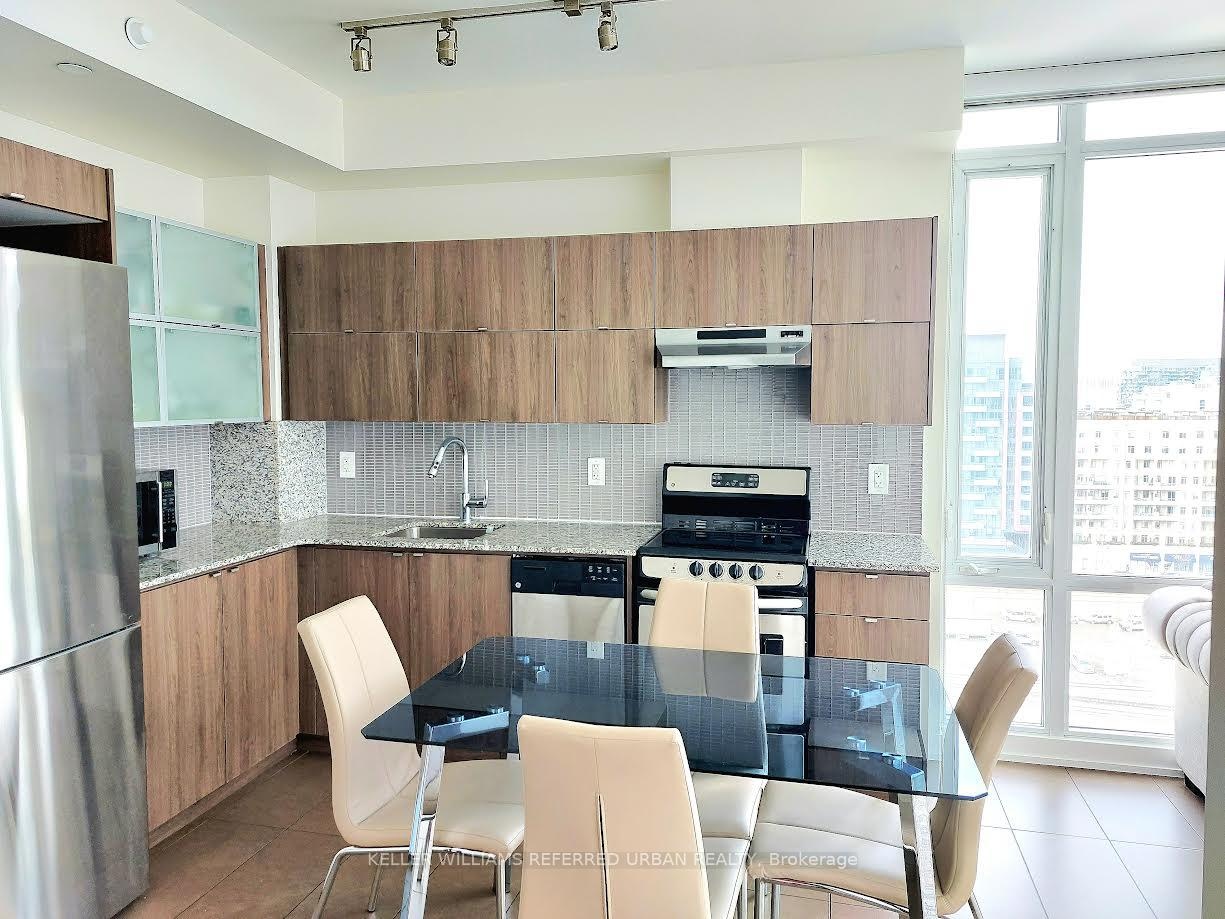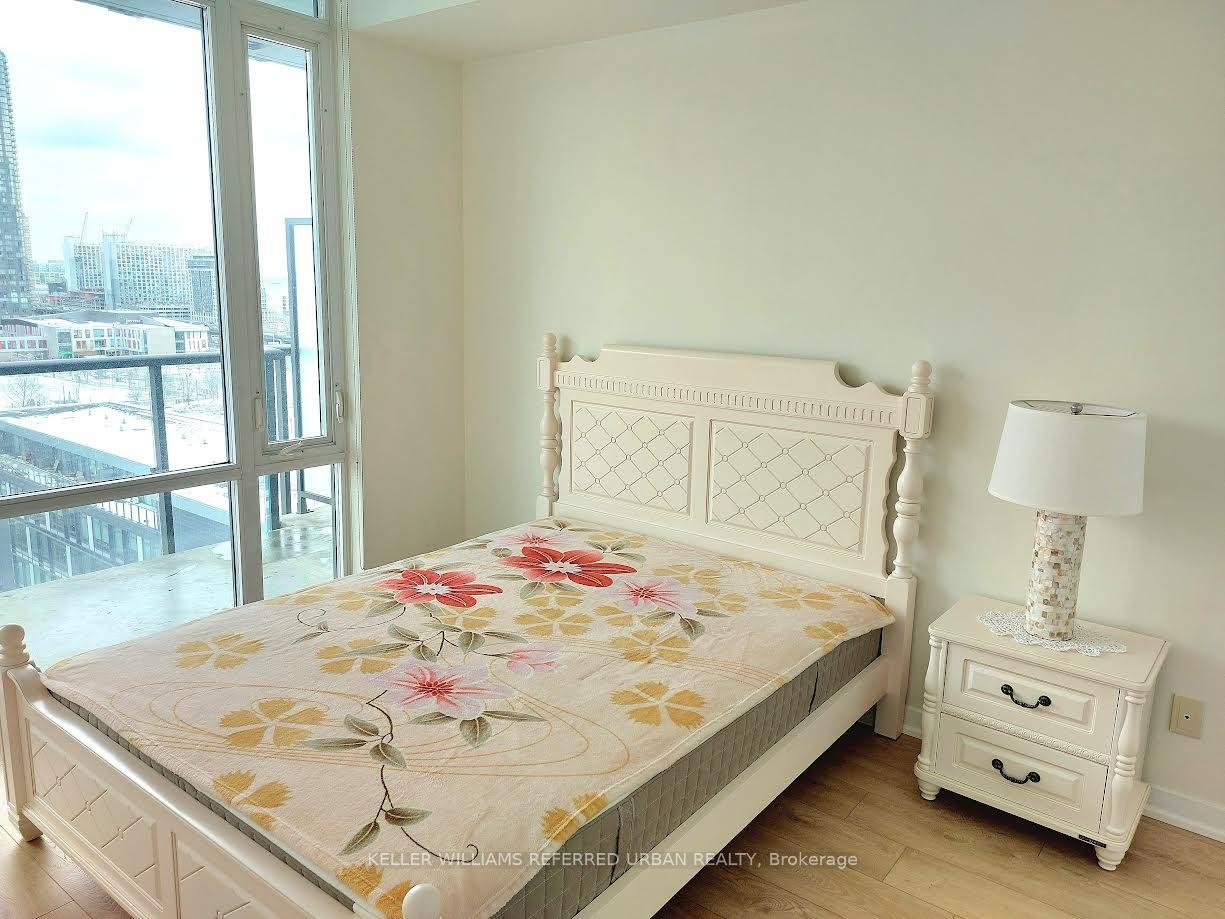 Rarely offered, beautifully furnished corner unit with unobstructed city and lake views, and a huge balcony! Bright and spacious 1-bedroom with 9-ft ceilings and a modern open-concept kitchen featuring granite countertops and stainless-steel appliances. Fully furnished with high-end furniture; renovated, freshly painted, with new flooring and a new washer/dryer. Enjoy excellent building amenities including a gym, BBQ area, 24-hour concierge, and visitor parking. Steps to shops, cafes, restaurants, the waterfront, and streetcar. Landlord prefers furnished but is open to unfurnished and flexible on move-in date!