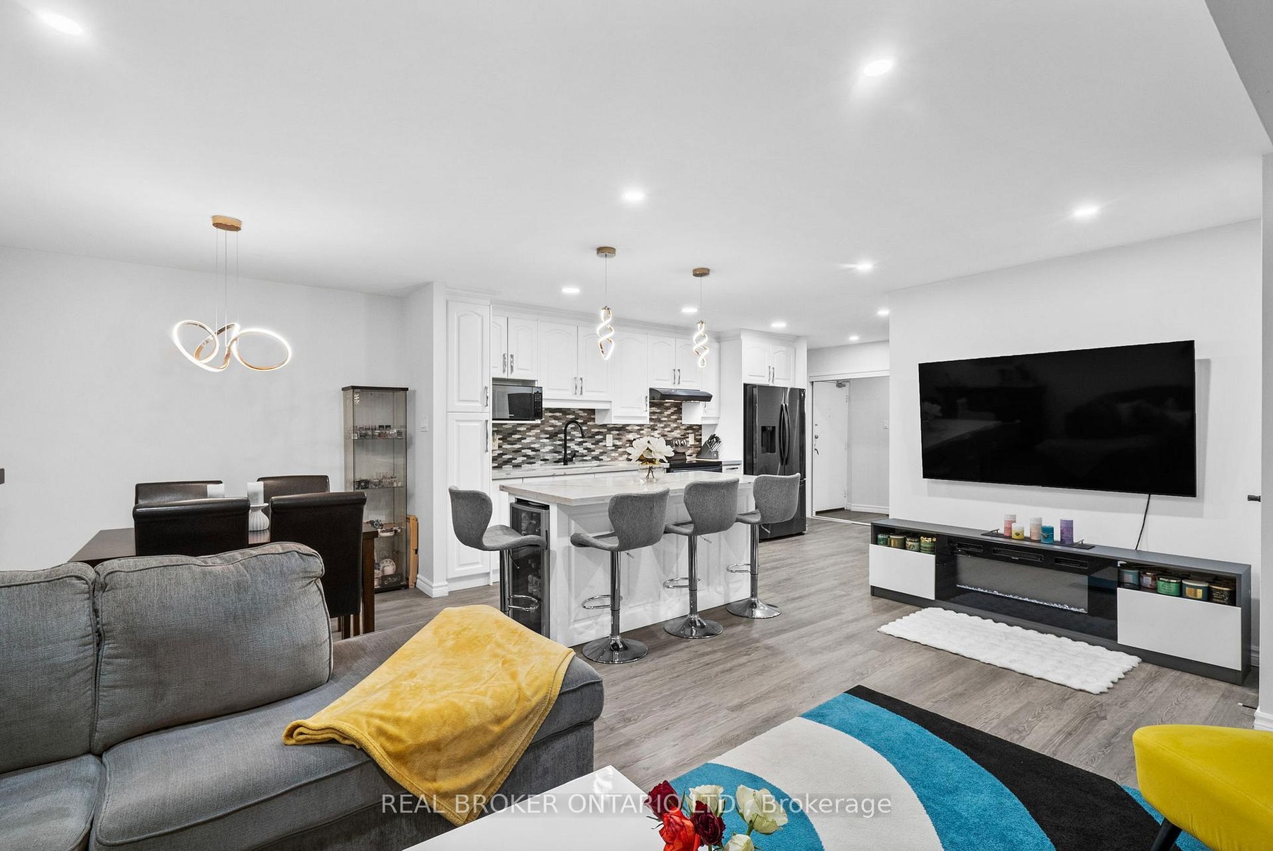 A beautifully upgraded and rarely offered unit in one of the most sought after low-rise condominiums in the area. This spacious unit features two bedrooms plus den, which can be converted to a functional bedroom, offering flexibility for families or professionals seeking additional space. The open-concept living, kitchen, and dining areas have been fully renovated with approximately $50,000 in upgrades, including premium finishes and modern design touches throughout. Additionally, over $10,000 was spent on high-end appliances. Kitchen features upgraded cabinetry, and stylish countertops, creating a perfect blend of form and function. This well-managed building offers one of the lowest maintenance fees in the area, providing excellent value for the space and quality offered. Conveniently located close to major highways, reputable schools, parks, and shopping centres, including Bridletowne Mall and CF Fairview, this property offers an exceptional combination of comfort, accessibility and value.
