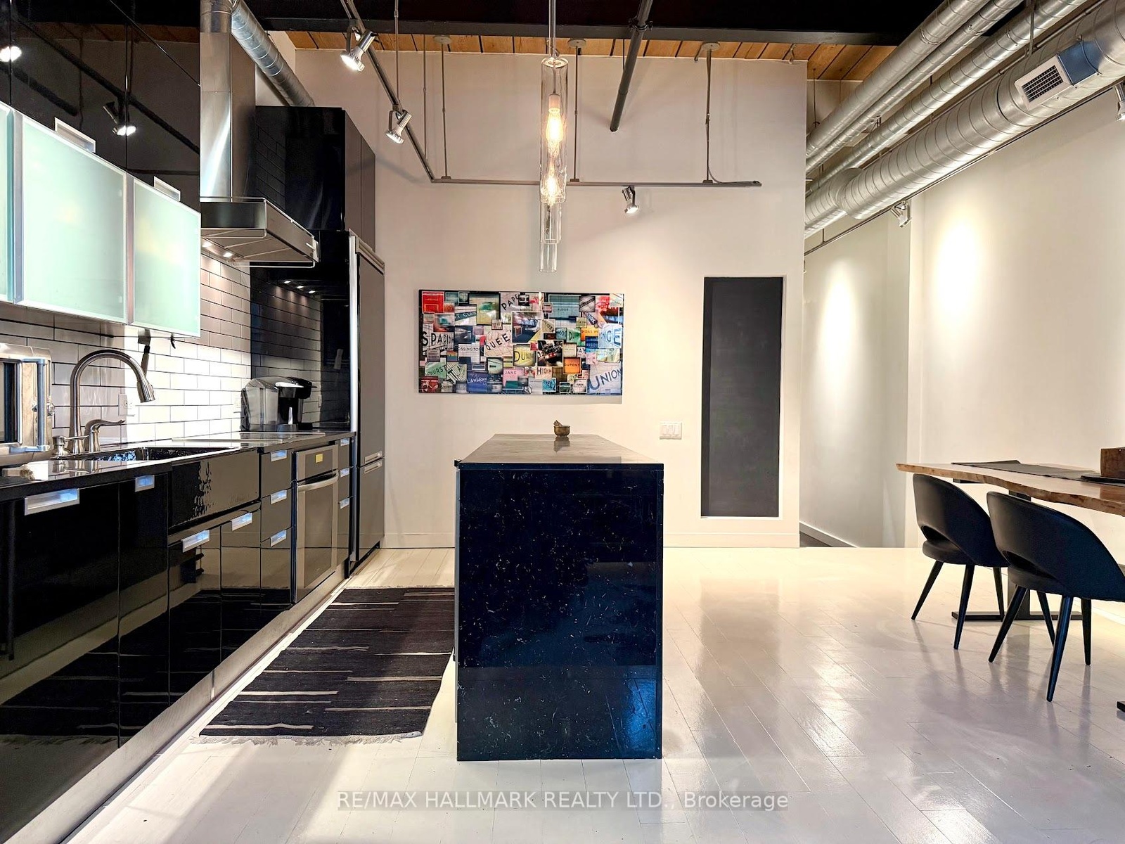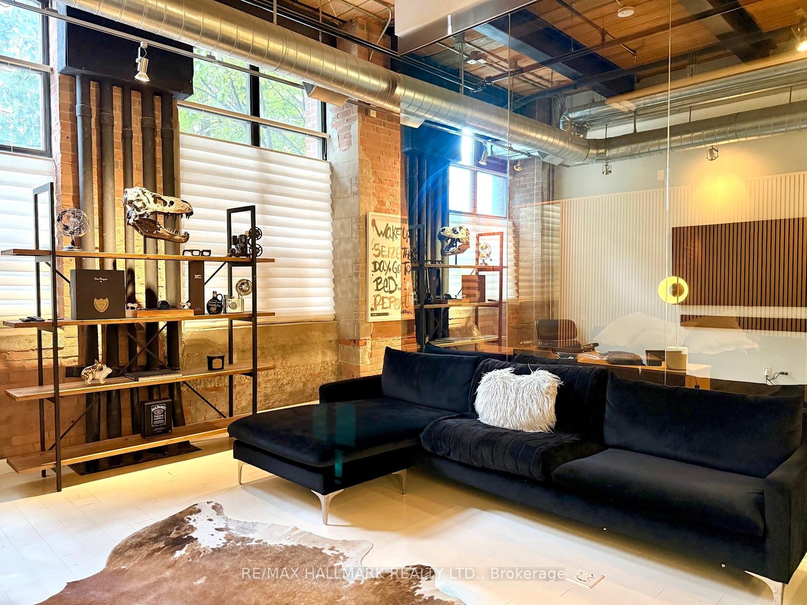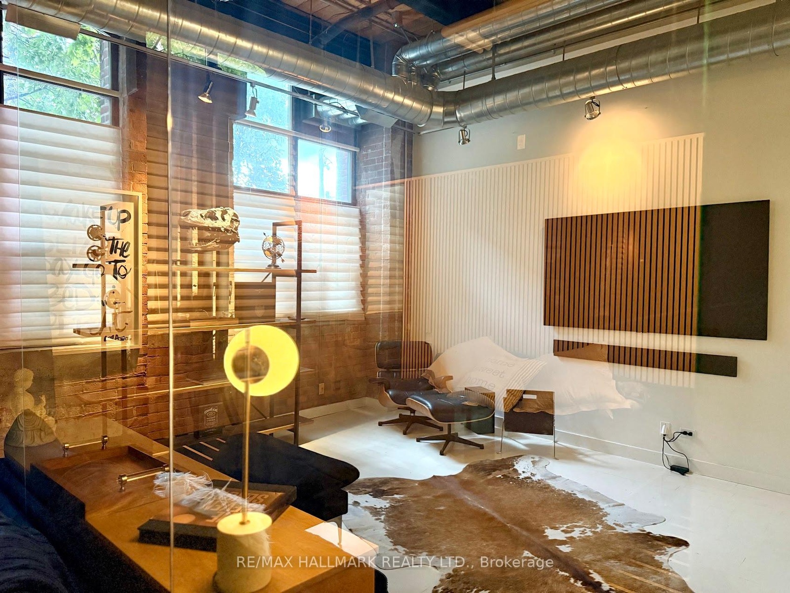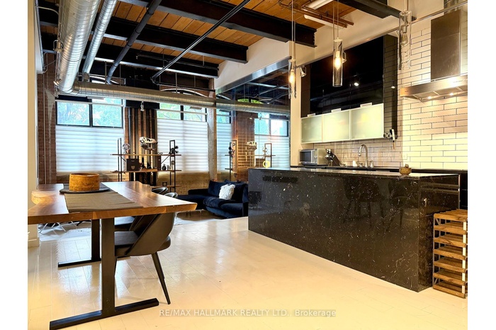 *Furnished* Welcome to Suite 126 at the Toy Factory Lofts. Originally the builder's model suite, this fully furnished hard loft captures true Liberty Village character with soaring 13-foot ceilings, exposed brick and beam, and west-facing arched windows that fill the space with light. The sleek Scavolini kitchen is equipped with top-tier Miele cooktop, oven, range, and dishwasher, a Viking fridge and wine fridge, and an LG washer and dryer. 77" LG 8K OLED and Sound Bar. Smart home features include Lutron lighting, a Nest thermostat, and Hunter Douglas automated blinds. The open-concept layout offers clear sightlines throughout-perfect for entertaining or relaxing in style. Complete with a premium parking spot and locker. Located in one of Toronto's most iconic loft conversions with 24-hour concierge, gym, rooftop terrace, and outdoor hot tub. Steps to Balzac's, Metro, and everything Liberty Village has to offer. *Furnished*