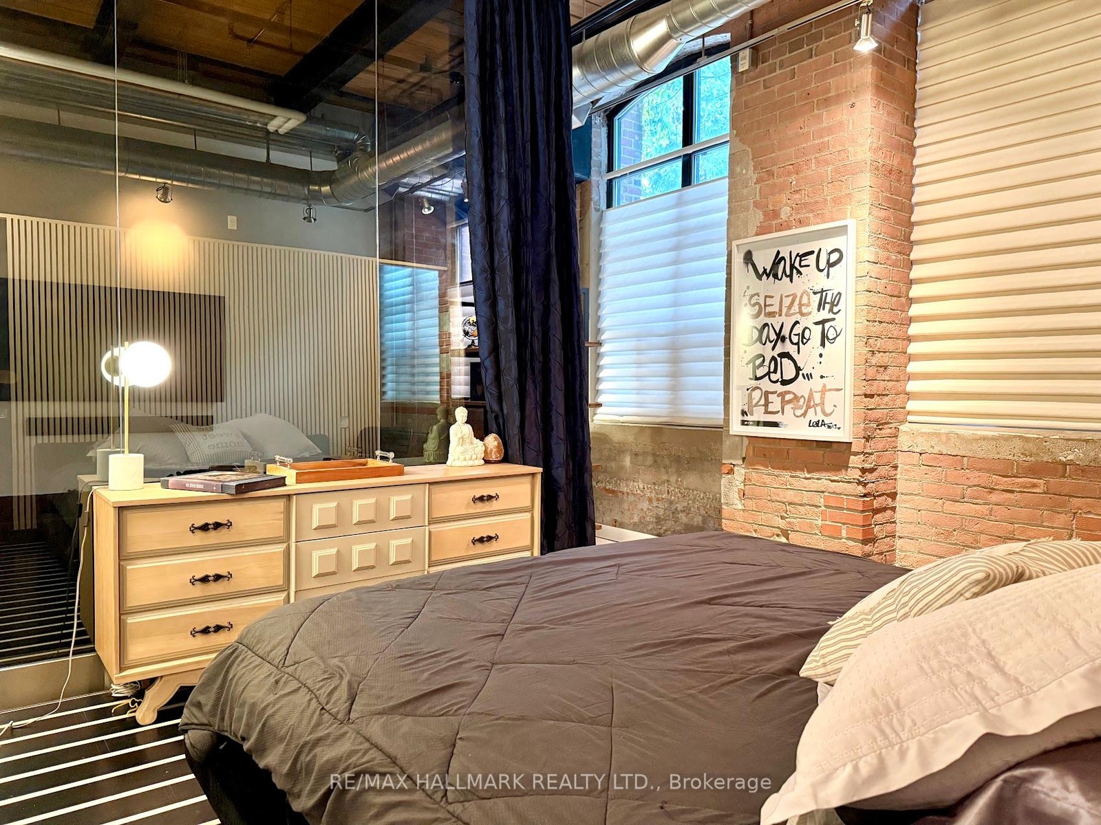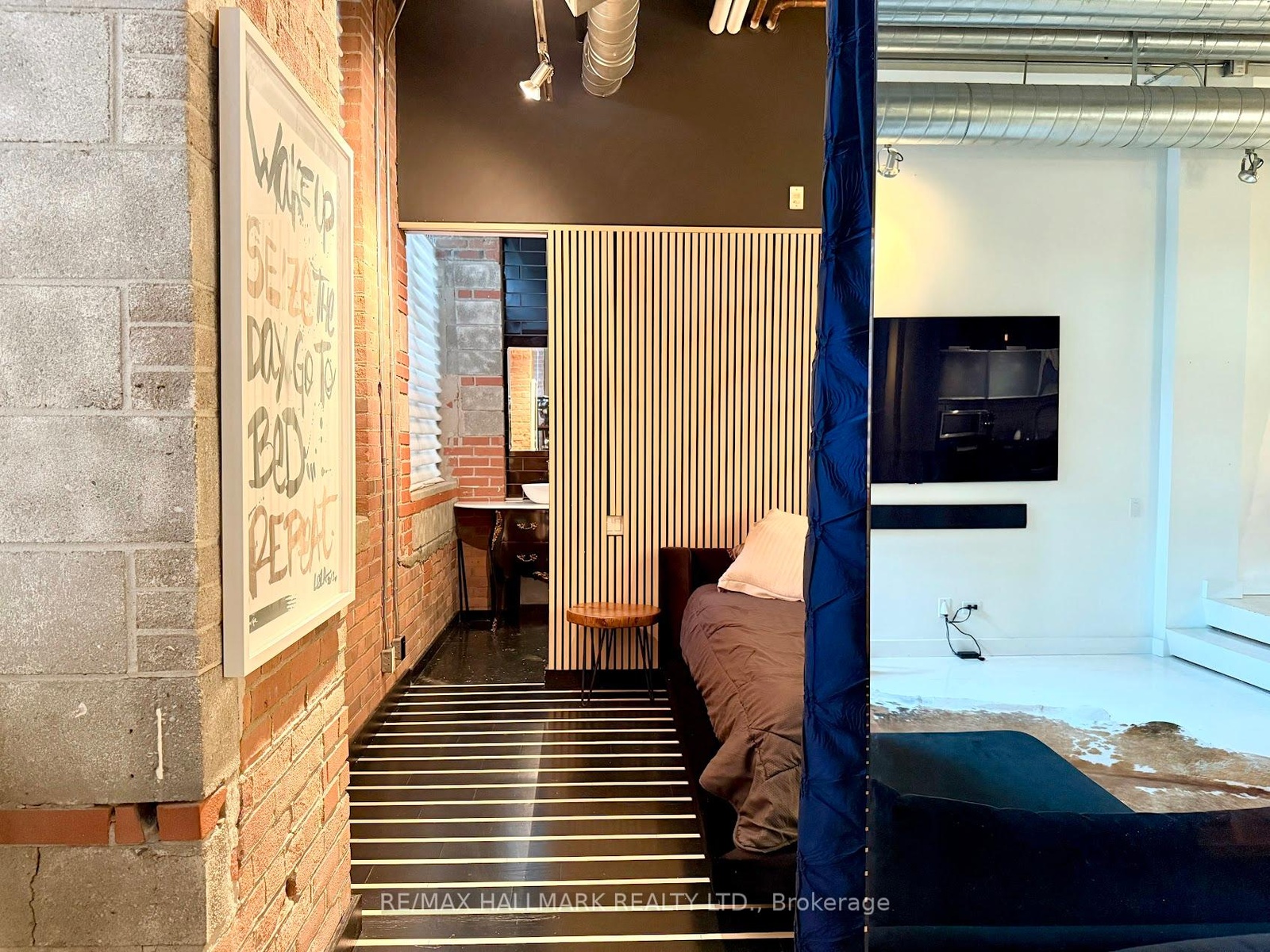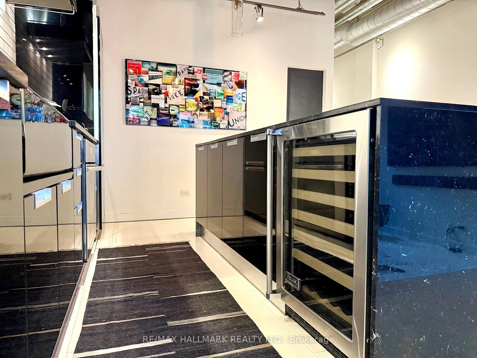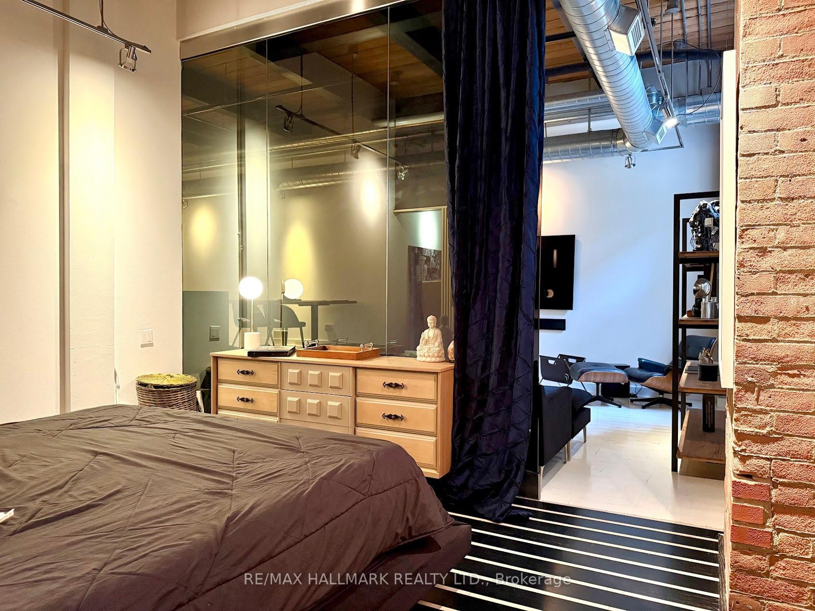 *Furnished* Welcome to Suite 126 at the Toy Factory Lofts. Originally the builder's model suite, this fully furnished hard loft captures true Liberty Village character with soaring 13-foot ceilings, exposed brick and beam, and west-facing arched windows that fill the space with light. The sleek Scavolini kitchen is equipped with top-tier Miele cooktop, oven, range, and dishwasher, a Viking fridge and wine fridge, and an LG washer and dryer. 77" LG 8K OLED and Sound Bar. Smart home features include Lutron lighting, a Nest thermostat, and Hunter Douglas automated blinds. The open-concept layout offers clear sightlines throughout-perfect for entertaining or relaxing in style. Complete with a premium parking spot and locker. Located in one of Toronto's most iconic loft conversions with 24-hour concierge, gym, rooftop terrace, and outdoor hot tub. Steps to Balzac's, Metro, and everything Liberty Village has to offer. *Furnished*