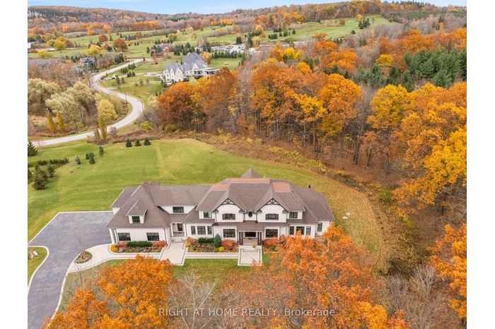 Set against the breathtaking backdrop of Mt. Nemo, this custom-built estate showcases the ultimate balance of luxury, privacy, and natural beauty. Perfectly situated at the end of a quiet cul-de-sac, this home offers exceptional privacy on over 2 private acres. This 6,400 sq.ft home, built in 2019, features 5 spacious bedrooms & 5 elegant bathrooms. A bright 3,400sqft walk-out lower level expands the home's footprint, offering incredible potential for customized living or entertaining space! A grand centre-hall entrance opens to a cathedral-height great room w/ 22ft ceilings, a porcelain-slab fireplace wall, wood beams, and floor-to-ceiling windows that fill the space with natural light. The main kitchen is a chef's dream, complete w/ a large island, granite counters, and high-end appliances, complemented by a secondary kitchen with a 6-burner Wolf gas range and walk-in pantry- ideal for entertaining. The formal dining room connects through a butler's servery with pocket doors, while hardwood floors flow throughout and radiant-heated flooring warms all tiled areas. A 3-car garage offers interior access to both levels. Smart-home lighting, climate control, and an 8-camera security system extend throughout the home for ultimate comfort and safety. The main-level primary suite, with soaring 14ft ceilings, opens to the rear porch and treeline views & includes 2 walk-in closets w/ a built-in vanity & a luxurious 5-pc ensuite. 2 staircases then lead to spacious bedrooms and a loft with glass railing overlooking the great room & forest views. A convenient storage room is also flexibly roughed in for an additional bathroom. Outdoors, venue-style entertaining is effortless with a covered porch and uninterrupted treetop views.Steps from Lowville Golf Course and major highways 407,QEW & 403 just mins away, this property blends peaceful country living with city convenience for a perfect mix of luxury, privacy, and accessibility in one of Burlington's most prestigious enclaves.