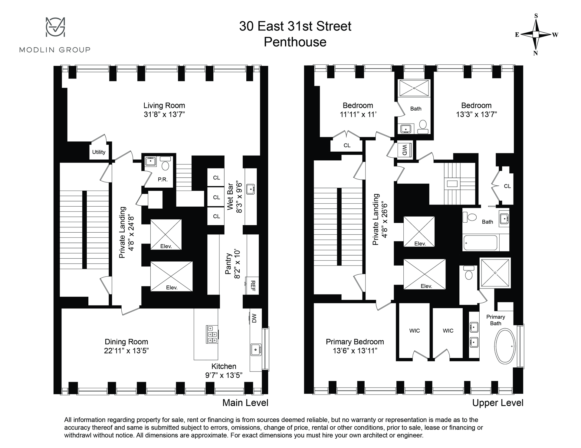 A blend of crisp, contemporary form with carefully considered function, the penthouse at 30 East 31st Street represents the pinnacle of quintessential Manhattan living. A full-floor duplex, this 3,354 square foot, 3 bedroom, 3 1⁄2 bath boasts skyline views from the North, West and South.