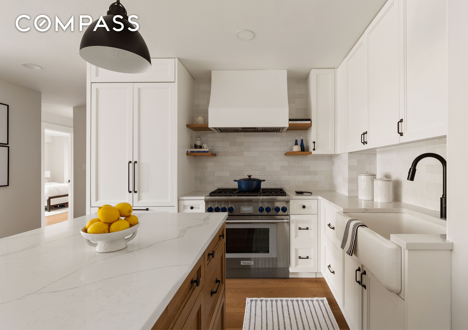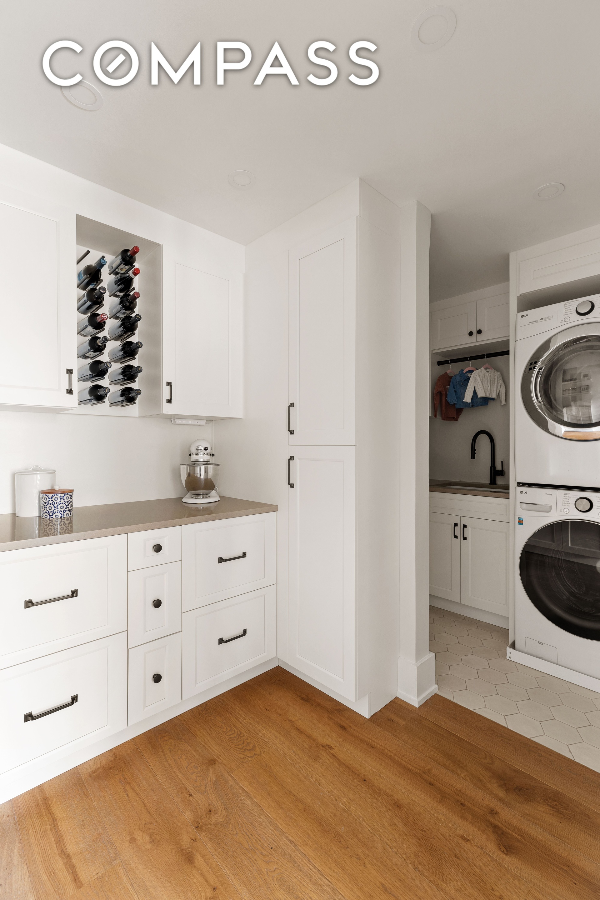 The cherry on top for this listing is the massive butler’s pantry, complete with a vented in-unit washer and dryer (in-unit laundry is only allowed for combination units in the building), wine rack, considerable storage space, and an incredibly convenient utility sink.