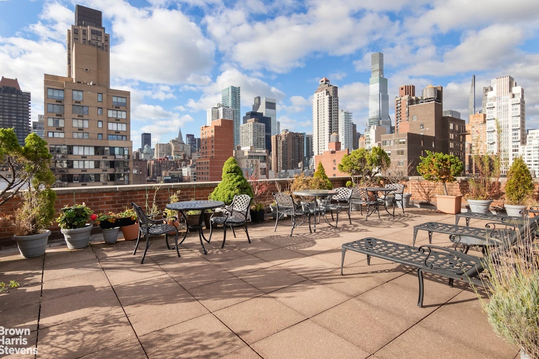 Building amenities include a 24-hour doorman, live-in superintendent, bike and storage rooms(available for a nominal fee), a large laundry room, a beautiful roof deck, and an on-site garage. Pets are welcome. Pied-à-terres and co-purchasing are allowed. Subletting is permitted with board approval.