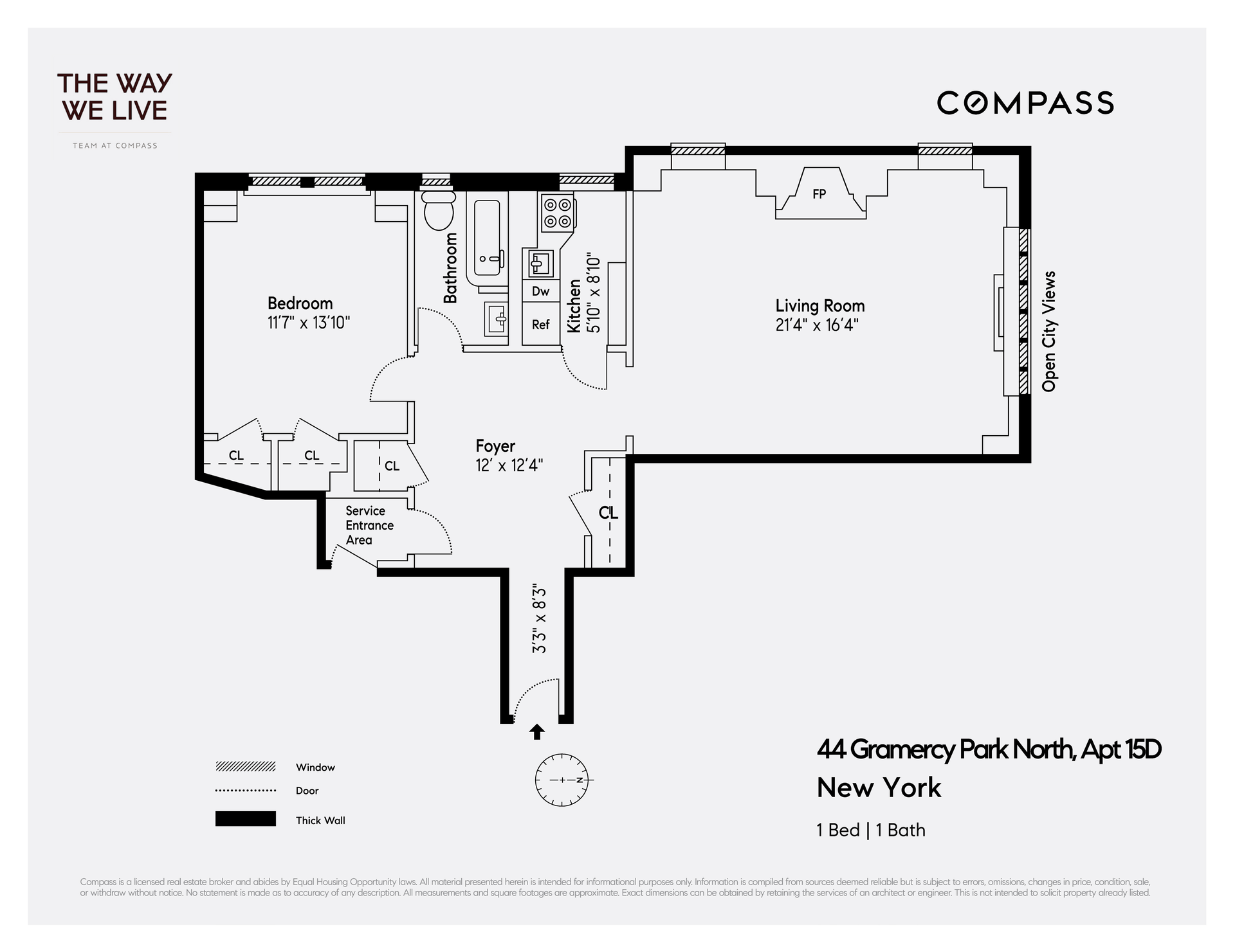 Welcome to 15D at 44 Gramercy Park North, one of the city's most distinguished pre-war, full-service cooperatives, designed by Schwartz & Gross in a distinctive Neo-Gothic style. This elegant and generously sized one-bedroom combines timeless character with a thoughtful restoration.