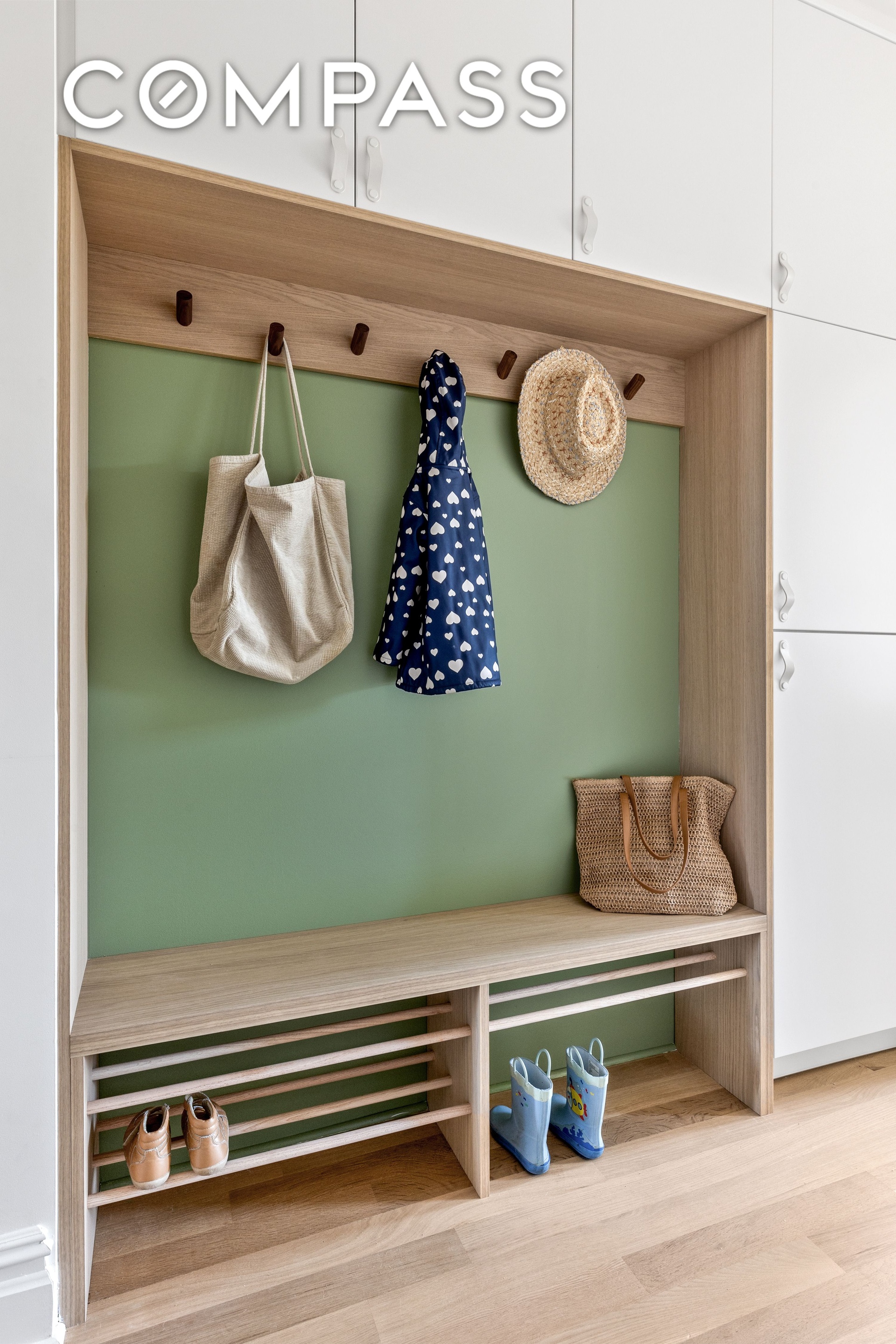 Unit #3 has three bedrooms, two baths, a stunning 367 sq. ft. roof deck with endless views, and a storage unit in the basement. From the moment you enter the apartment, you’ll notice how thoughtfully designed it is. So many new condos don’t have places for coats and shoes. Here, there is plenty of space, which is not only functional but is beautifully designed with custom Shinoki Oak millwork.