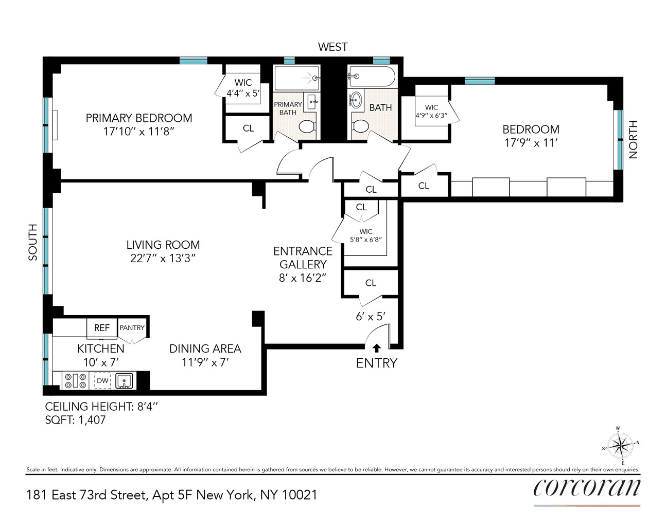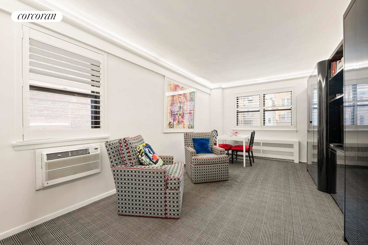 Impeccably renovated south-facing corner 2BR/2BA on beautiful tree-lined block on Manhattan's Upper East Side. With 1400 square feet and a combined living room and entrance gallery which is 30 feet long, the apartment feels quite spacious. The 2 bedrooms and 2 baths are located on a separate hallway with an ensuite bath in the primary bedroom and the other outside the second bedroom and available for guest use. The primary bath has a walk-in shower, and the secondary bath has a tub/shower combination. Both bedrooms have excellent closet space. Adjacent to the living room is a separate dining area and a top-of-the-line windowed kitchen which includes a generous pantry. The living room and 2nd bedroom have attractive high quality custom plantation shutters on the windows. There is a convenient coat closet in the entry and a large storage closet in the entrance gallery which some people have converted to a home office. Thru-wall air conditioning.