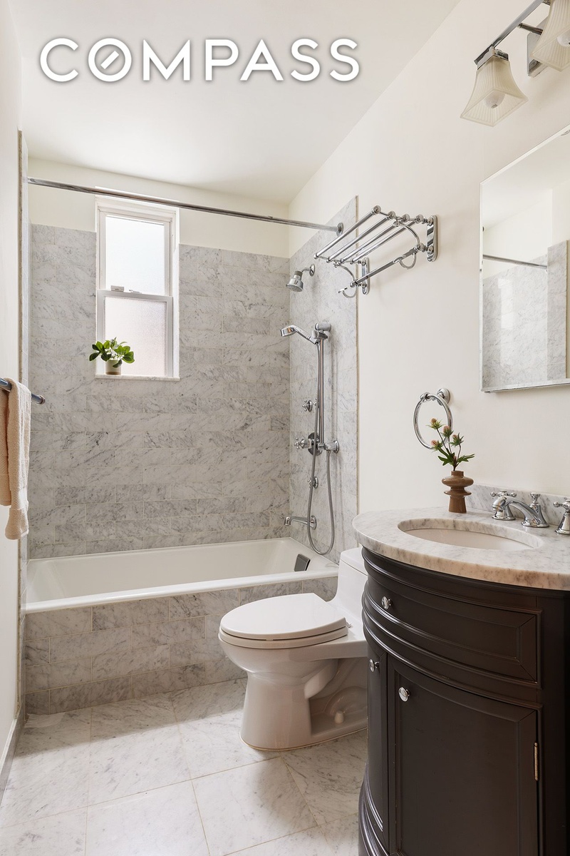 The oversized primary bedroom features a renovated en-suite marble bathroom, great closets, and 2 two large windows. The secondary bedroom can accommodate a king-sized bed with room for a dresser, and has great storage as well.