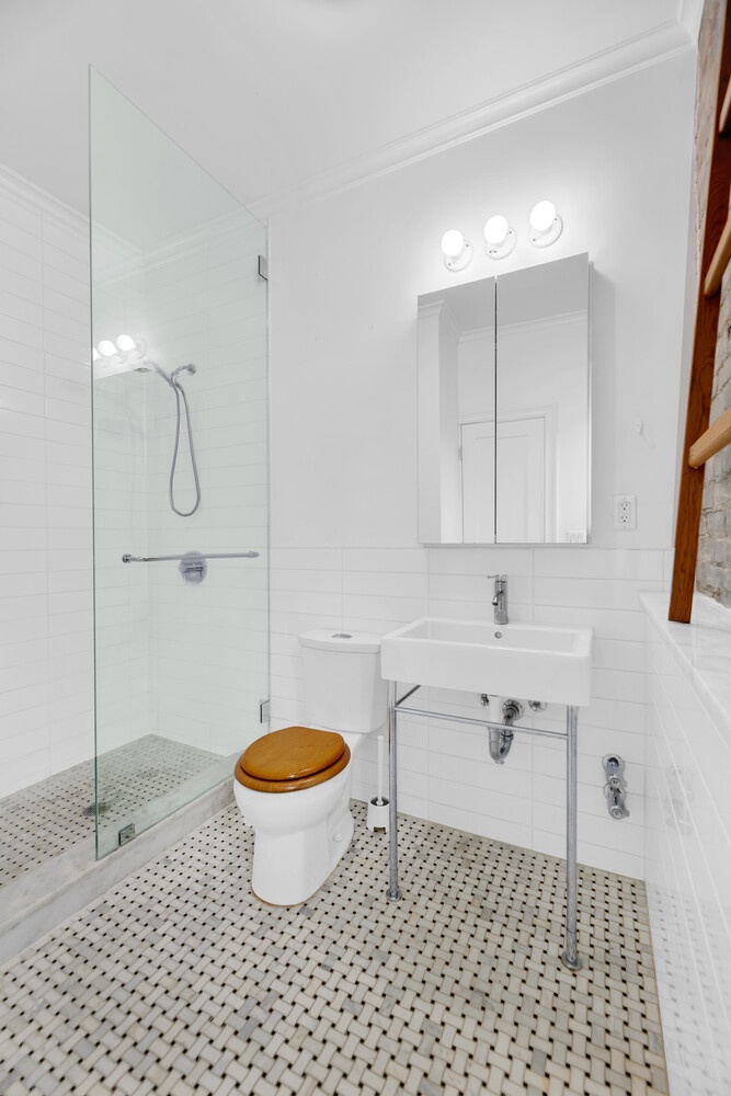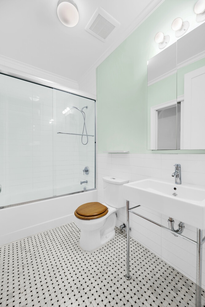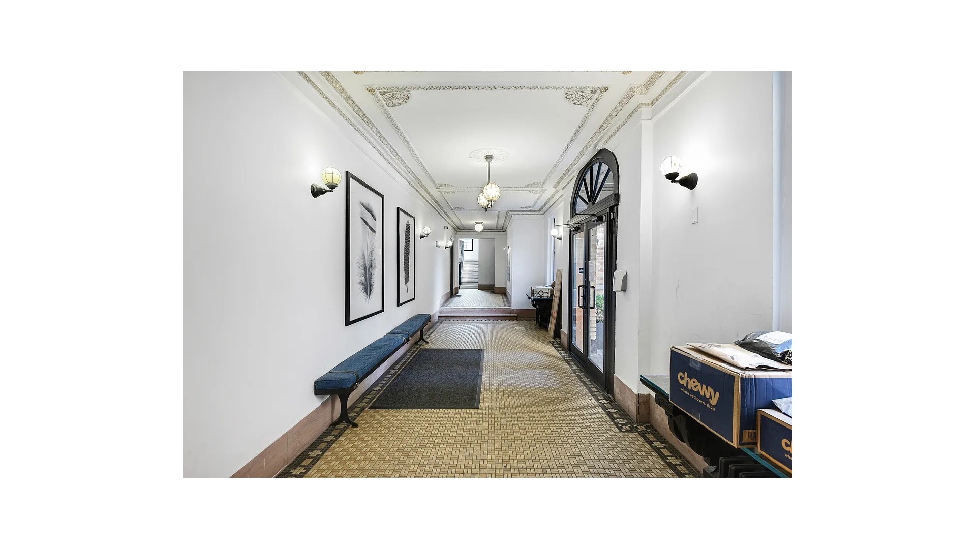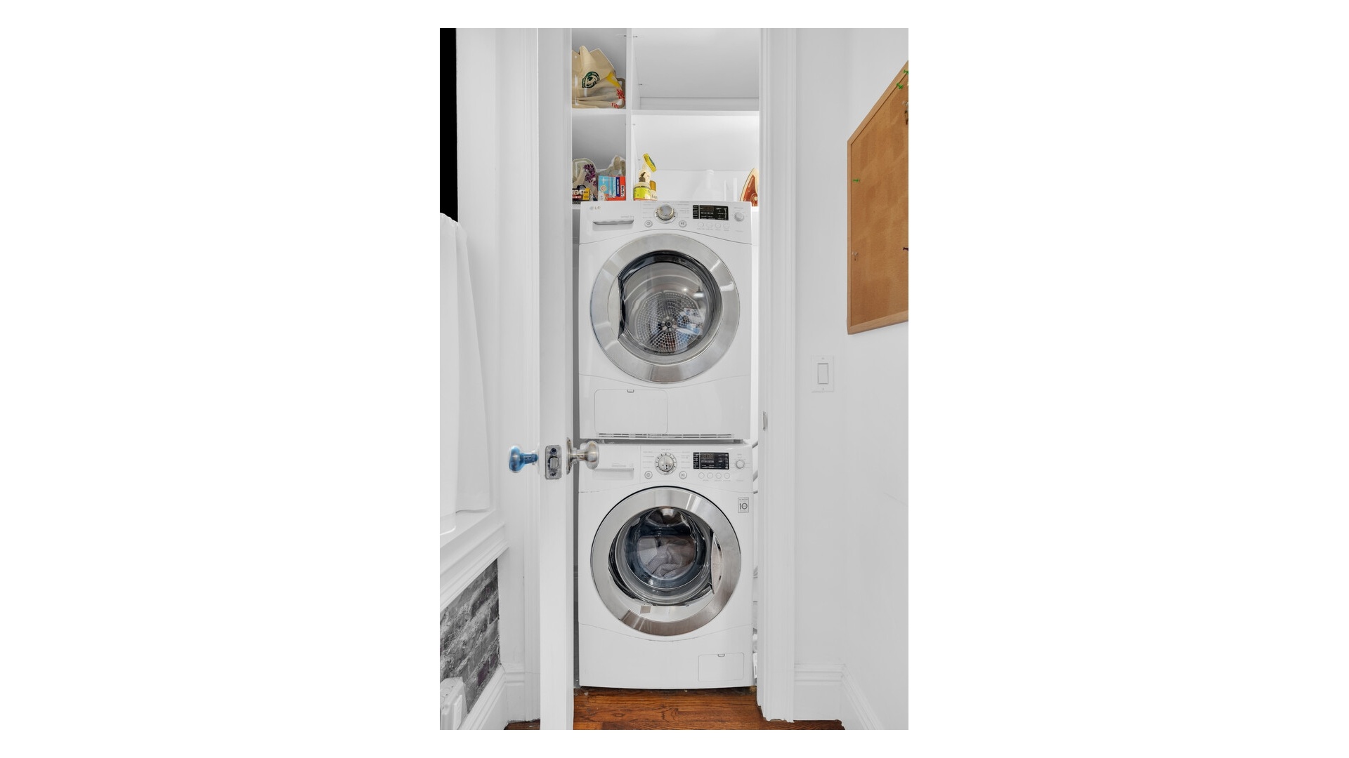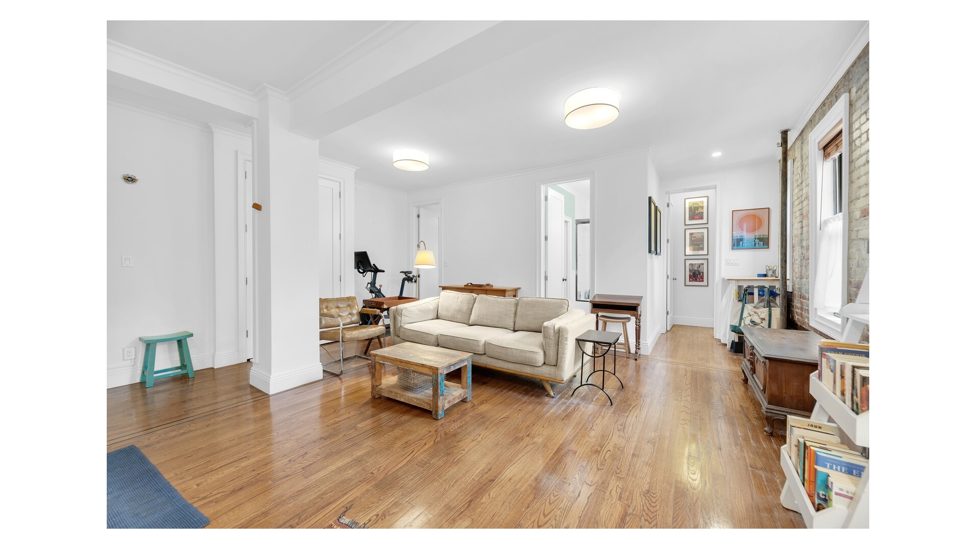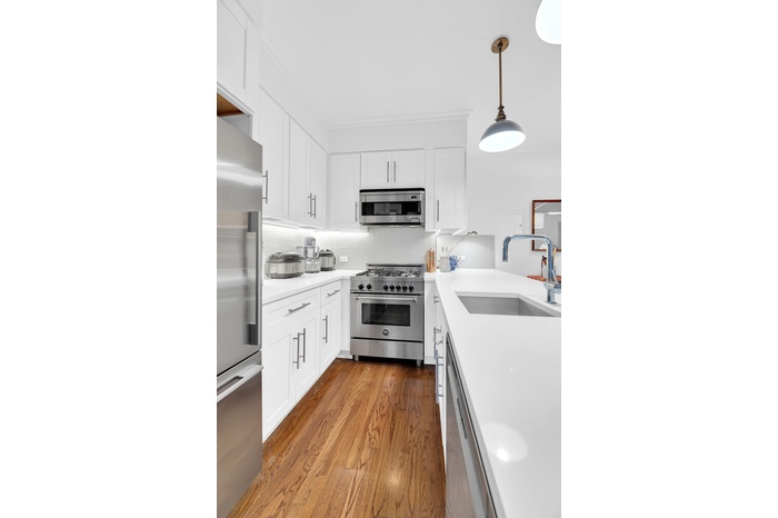 Throughout the home, refined pre-war details-including mahogany-inlaid hardwood floors, classic moldings, and exposed brick accents-harmonize beautifully with the apartment's modern sophistication. A washer/dryer completes the comfort and convenience.