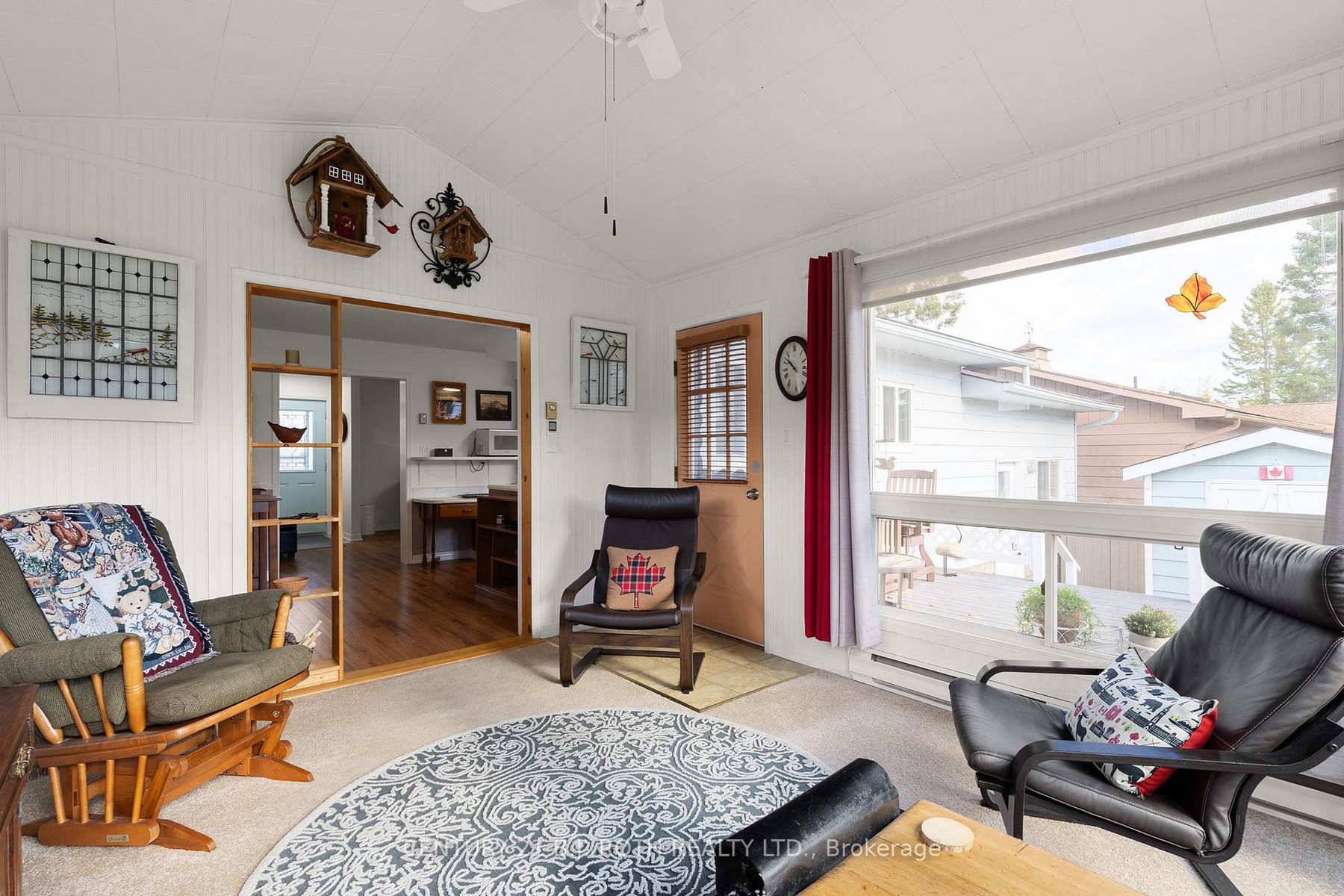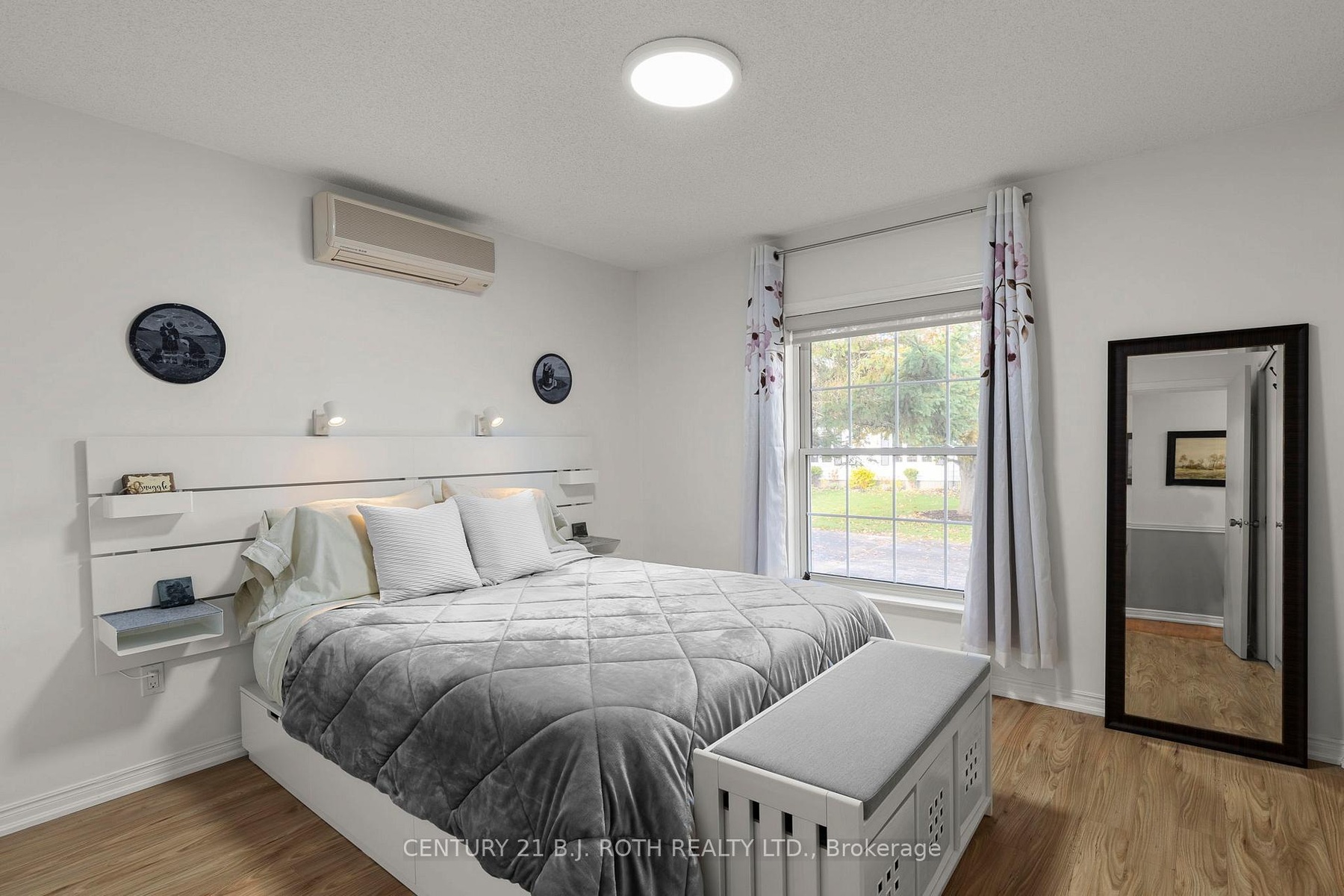 Big Cedar Estates is a resident owned community 10 minutes from Orillia with frontage on Bass Lake. This is care free living. Monthly fees are $345 which include : water ,sewer,lot fees, grasscutting, snow removal from driveways, leaf removal ,garbage and recycling pickup, Rogers TV and fibre optics internet , use of clubhouse, RV and boat storage is available. This property is a Royal Home built in 1987, 2 Bedrooms , 2 baths , cozy sunnroom with walkout to a deck. Separate dining room. Heat pump and A/C walk in from garage with wheelchair lift. Very neat and clean, pleasure to show. Buyers must be park approved and acknowledge a one time fee of $5000.00 on closing payable to Big Cedar Estates.