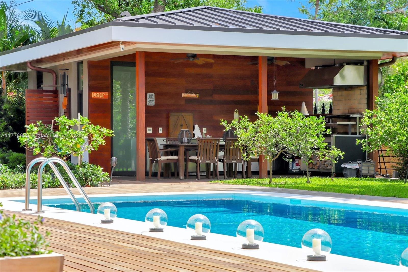 Experience luxury living in this stunning 5,646 sq ft under AC modern home blended modern design and exceptional craftsmanship, nestled on a lush 19,000 sq ft lot and built in 2019. This elegant residence offers 4 spacious bedrooms, including 2 primary suites, 3 full baths, 2 half baths, a chef’s kitchen,informal and formal dining rooms and a flex space perfect as a gym or playroom. A beautiful office easily doubles as a library or cozy den. Step outside to your private oasis featuring a heated pool, outdoor kitchen, and expansive patio. A 3-car garage and prime location near I-95 and vibrant NE 2nd Ave complete the package. Sophistication, space, and style await.