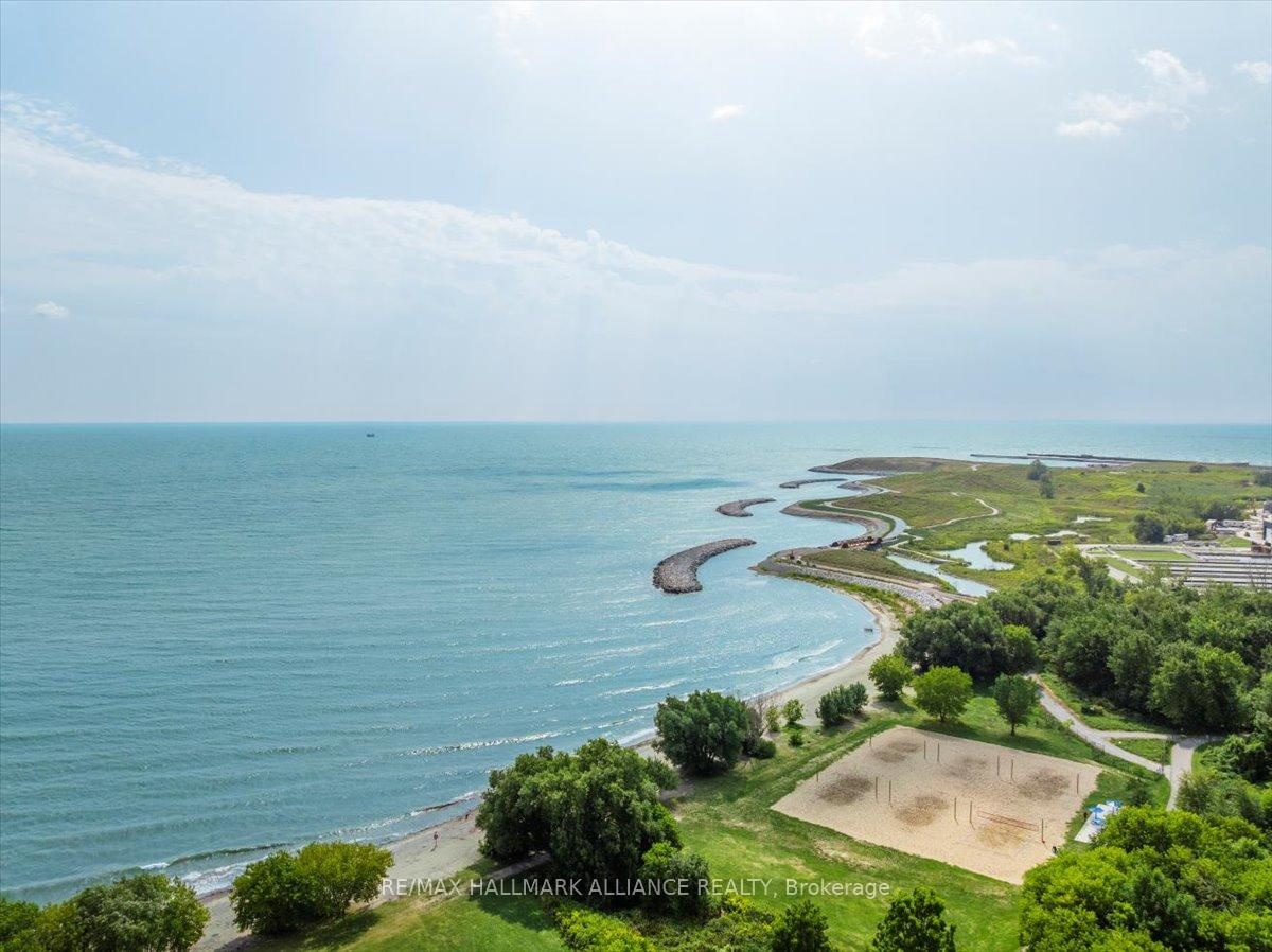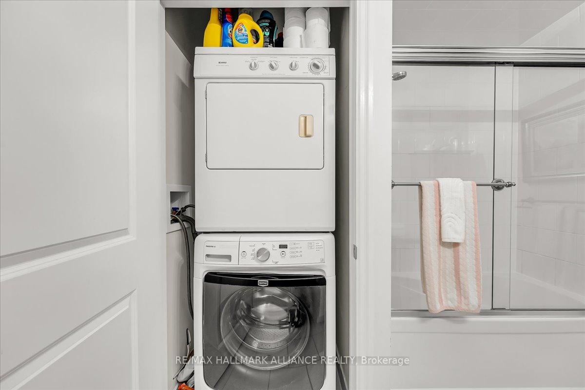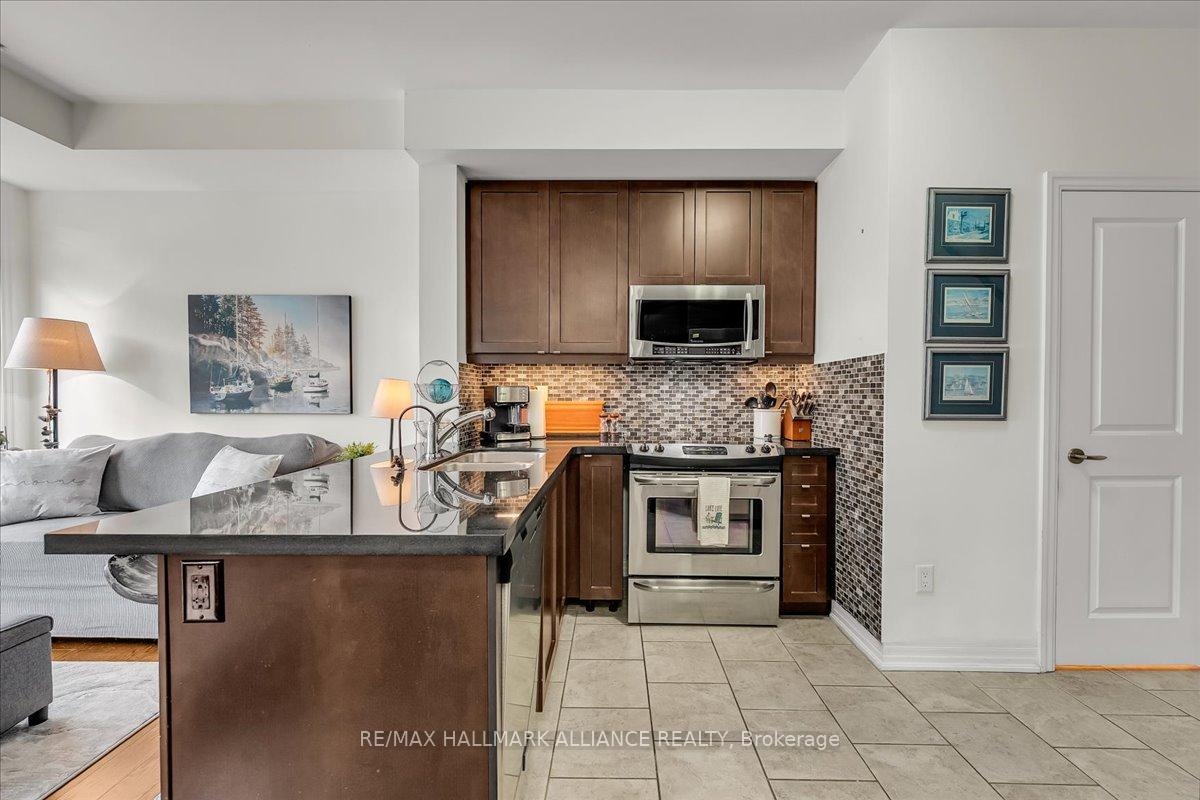 Welcome to the sought-after Stonewater community. This beautiful 2-storey, 2 bed, 2 bath Executive upgraded townhome is one of the exclusive few that have more privacy as its located at the rear of the complex, with window AND balcony views of mature trees and greenery from every window. Situated in the family friendly South Lakeview neighbourhood, offers over 1,000sqft of living space + 75sqft private balcony. Boasting an open-concept layout that is bathed in natural light thanks to the large windows, with beautiful nature views. The main floor features hardwood floors, open concept living with modern upgraded eat-in kitchen, double thick granite countertops, breakfast bar, updated fixtures, tiled backsplash, upgraded cabinets, water filtration sys & B/I pantry/storage. Get excited to host gatherings in the cozy living room & enjoy family meals w/ loved ones in the dining area. This unit is also one of the few that has a powder room on the main level, for added convenience. Upstairs you will find two bright spacious bedrooms with large windows, both outfitted w/ large double closets & closet organizers, complete with a modern4-pc bath with stone countertop, ensuite laundry and additional storage. Enjoy the convenience of parking in your garage with direct entry into your home + ample storage for all your toys. Waterfront trails, Marie Curtis Park & Orchard Hill Park are right outside your front door. Lakeside active living awaits you with this incredible location, walking distance to Lakeview and Toronto golf courses, GO train & Long Branch shopping district. Mins from beautiful Port Credit & Sherway Gardens, and HWY access.