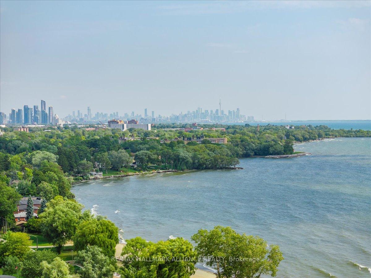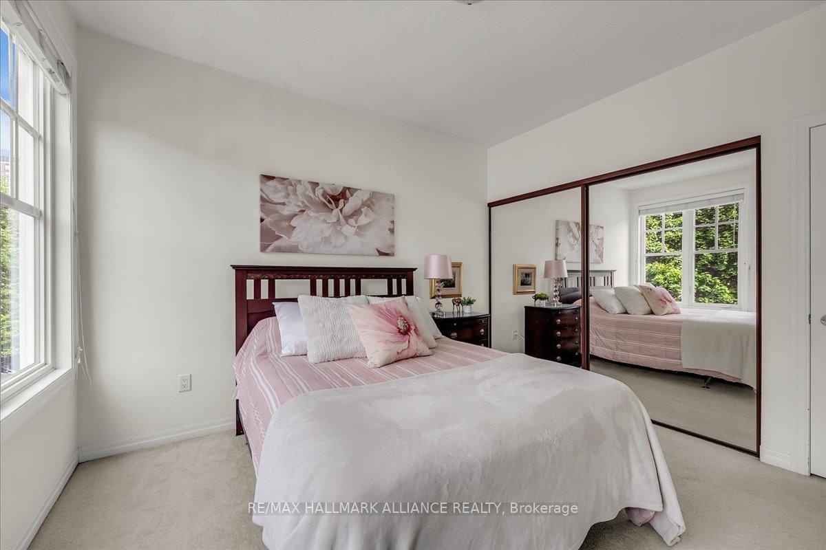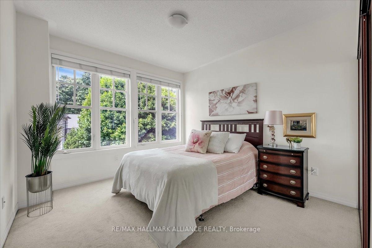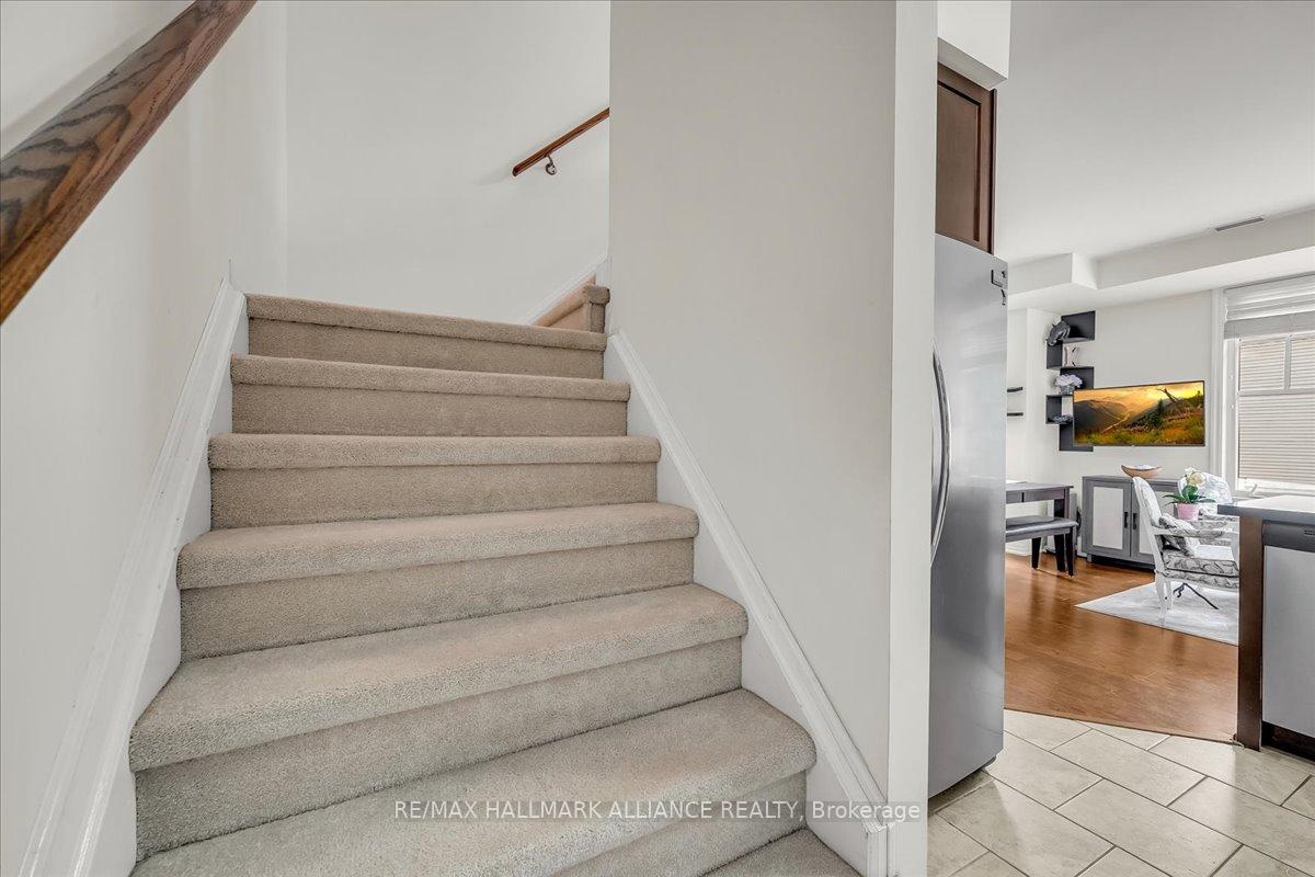 Welcome to the sought-after Stonewater community. This beautiful 2-storey, 2 bed, 2 bath Executive upgraded townhome is one of the exclusive few that have more privacy as its located at the rear of the complex, with window AND balcony views of mature trees and greenery from every window. Situated in the family friendly South Lakeview neighbourhood, offers over 1,000sqft of living space + 75sqft private balcony. Boasting an open-concept layout that is bathed in natural light thanks to the large windows, with beautiful nature views. The main floor features hardwood floors, open concept living with modern upgraded eat-in kitchen, double thick granite countertops, breakfast bar, updated fixtures, tiled backsplash, upgraded cabinets, water filtration sys & B/I pantry/storage. Get excited to host gatherings in the cozy living room & enjoy family meals w/ loved ones in the dining area. This unit is also one of the few that has a powder room on the main level, for added convenience. Upstairs you will find two bright spacious bedrooms with large windows, both outfitted w/ large double closets & closet organizers, complete with a modern4-pc bath with stone countertop, ensuite laundry and additional storage. Enjoy the convenience of parking in your garage with direct entry into your home + ample storage for all your toys. Waterfront trails, Marie Curtis Park & Orchard Hill Park are right outside your front door. Lakeside active living awaits you with this incredible location, walking distance to Lakeview and Toronto golf courses, GO train & Long Branch shopping district. Mins from beautiful Port Credit & Sherway Gardens, and HWY access.