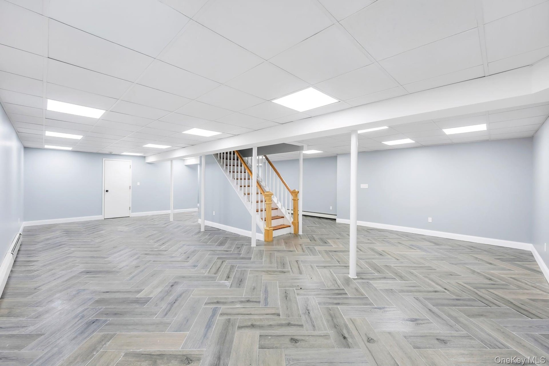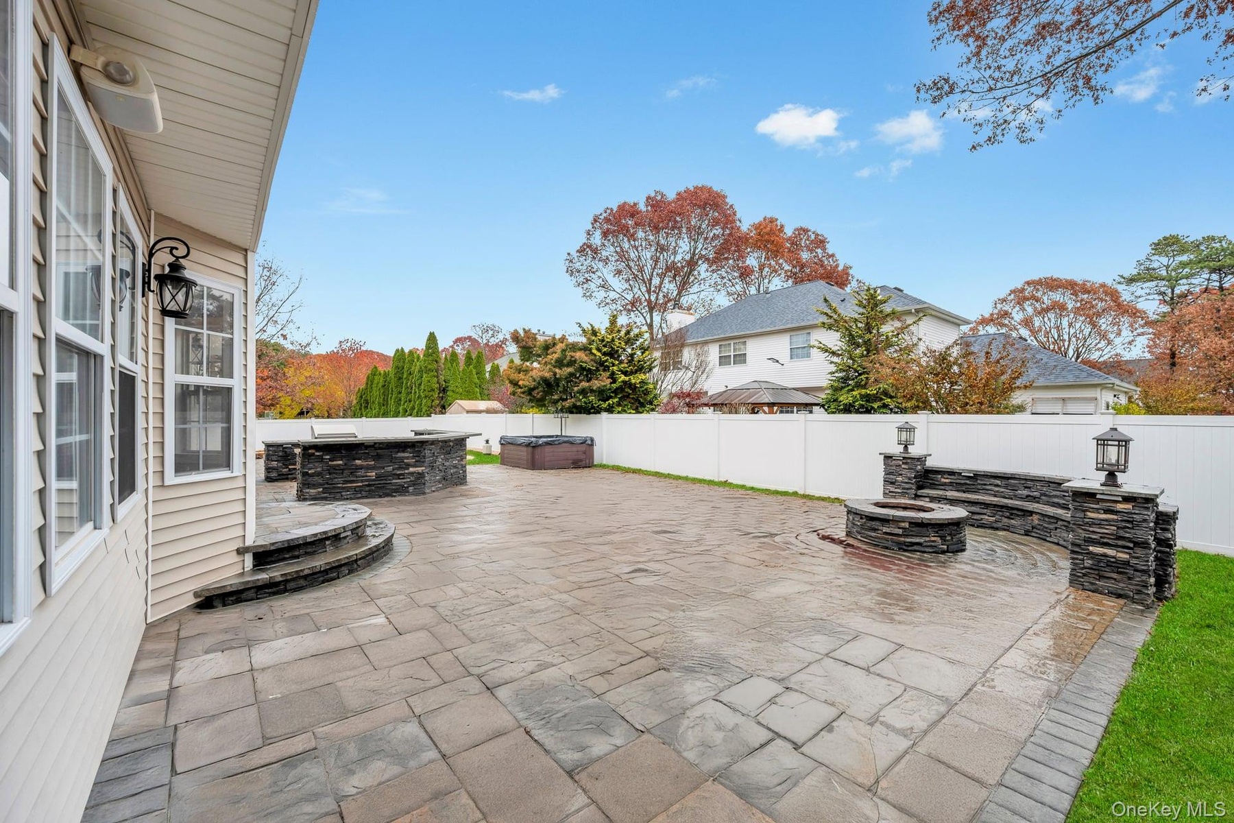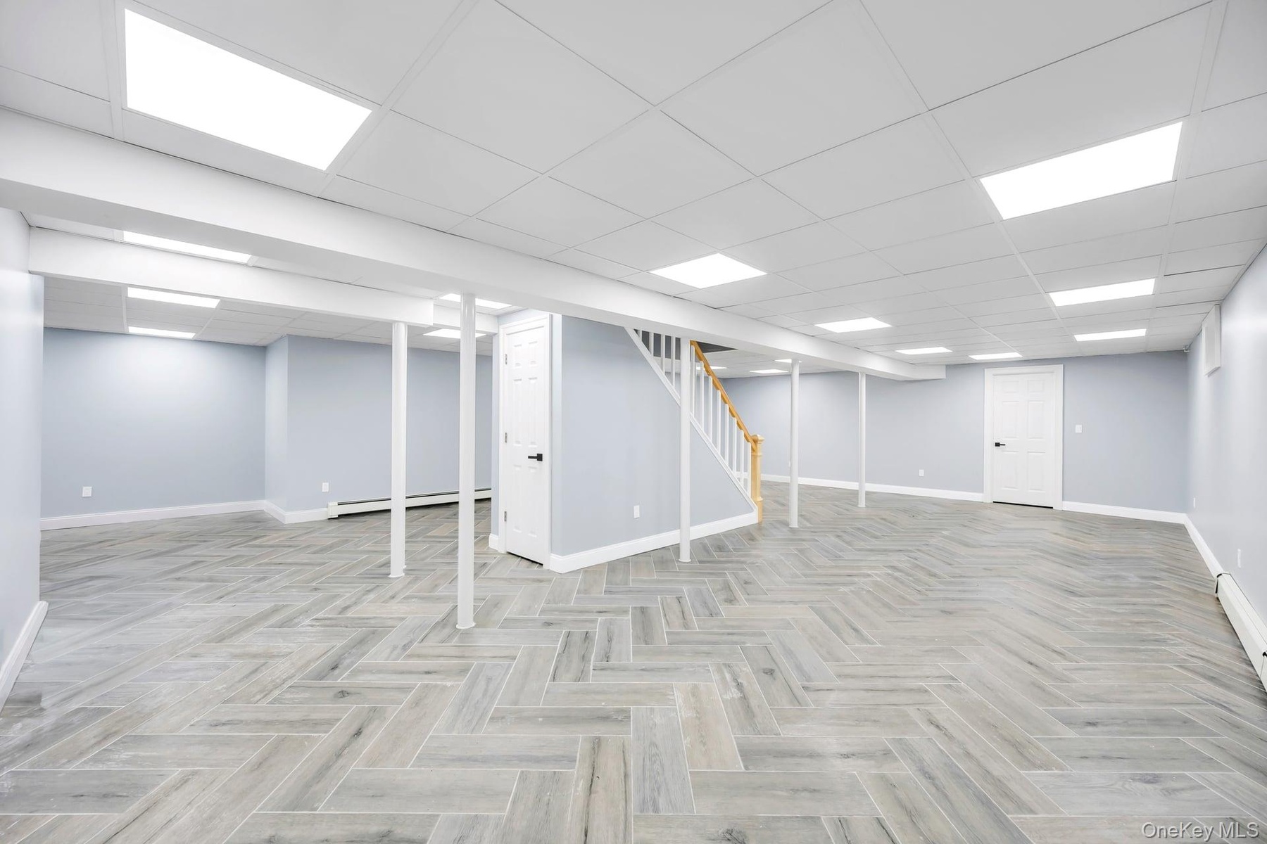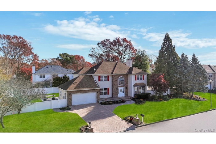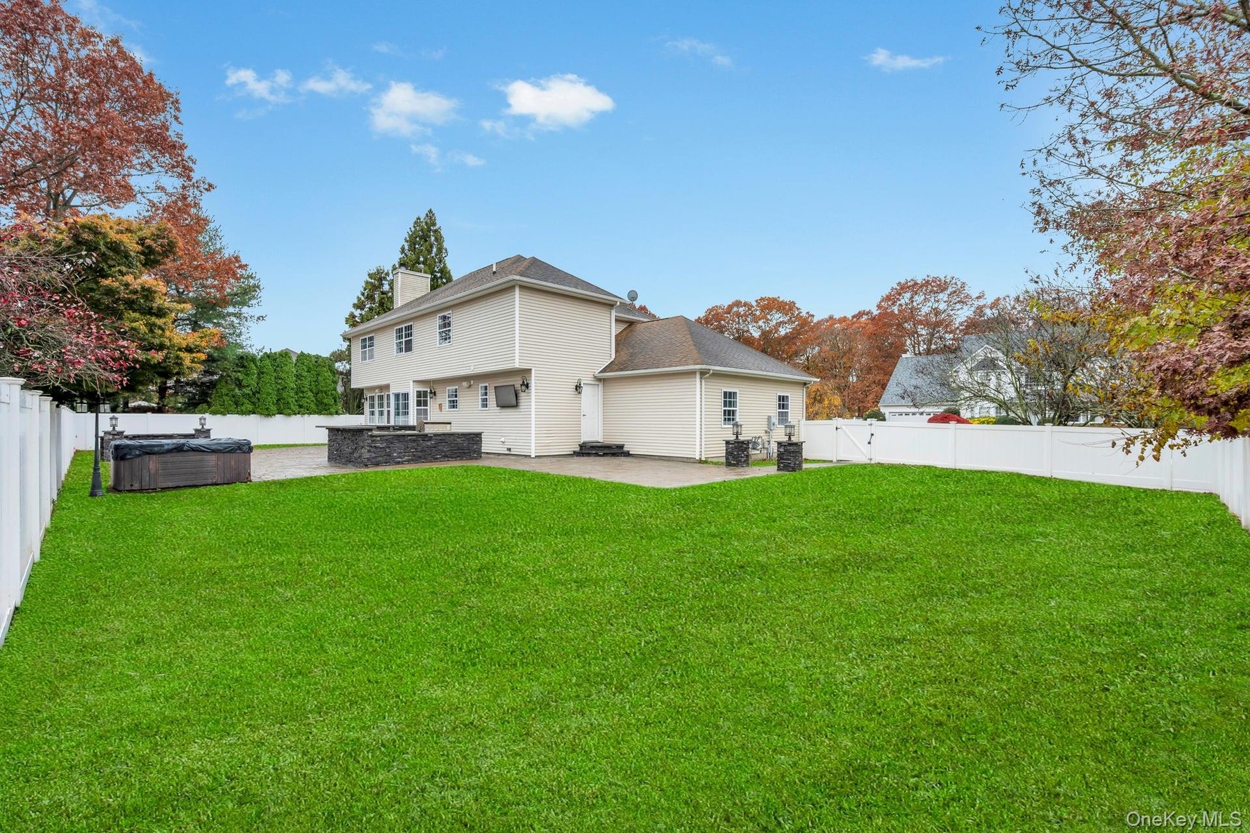 Perfectly positioned mid-block on a beautiful street, this newer-built home combines high-end finishes, craftsmanship, and comfort from the moment you arrive. The exterior makes an immediate impression with a full paving stone driveway and walkway leading to the front entrance, flanked by two cultured-stone pillar lights and a striking partial cultured-stone front facade. Step through the grand two-story entry and be greeted by a dazzling crystal chandelier, 8-foot ceilings, and brand-new hardwood floors throughout. To your right, the formal living room is filled with natural light and finished with elegant custom molding. The open flow continues into the warm family room featuring a custom wood-burning fireplace with detailed box molding and granite tile surround. The chef’s kitchen is a showstopper with rich walnut cabinetry, quartz countertops, a white ceramic tile backsplash, an abundance of counter and cabinet space, brand-new LG stainless steel appliances, and a gas stove. The kitchen opens seamlessly into a formal dining room perfect for hosting. The first floor also offers a new designer powder room, pantry, and a mudroom with washer/dryer hookups and cabinetry. Upstairs, all bedrooms are generously sized, including an enormous primary suite featuring recessed lighting, hardwood floors, and an incredible custom California closet system with shelves, drawers, and endless hanging space. The spa-like primary bath offers an oversized glass-enclosed rainfall shower, a stone hexagon shower floor, porcelain floor-to-ceiling tile, a double quartz vanity with a gray base, and an oversized framed mirror. The fully renovated hallway bath includes a tub with glass shower, octagon tile flooring, and a white vanity with quartz countertop. Every door throughout the home is brand-new six-panel style, and the entire interior has been freshly painted. The full finished basement provides additional living space with high ceilings, baseboard heat, herringbone-pattern porcelain tile flooring, new basement windows, and a brand-new hot water heater. The gas burner has also been updated. Outside, the resort-style backyard is built for entertaining with a massive paver patio, fire pit with built-in bench seating, two cultured-stone lighted pillars, and an outdoor kitchen featuring dual-level bluestone counters, a stainless steel sink, wine fridge, barbecue, and two additional propane burners—all surrounded by white PVC fencing for total privacy. This home delivers unmatched attention to detail, elegant finishes throughout, and a layout perfect for both everyday living and unforgettable entertaining.