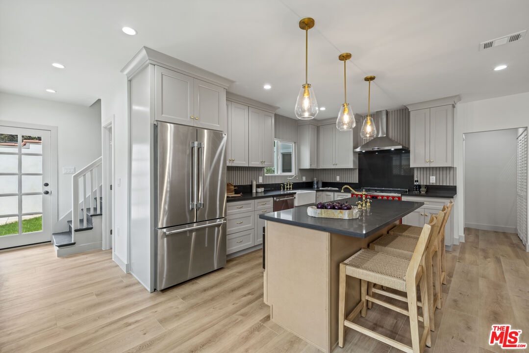 Nestled in the heart of coveted Spaulding Square, this meticulously reimagined three (3) bedroom, four (4) bathroom home seamlessly blends classic charm with modern luxury. Step inside the formal living room which features a stately fireplace and an adjacent flex space, perfect for use as a home office or a den. The floorplan seamlessly connects the living space with the dining room and kitchen which opens to a serene patio through elegant French doors, perfect for both relaxation and entertaining. The chef's kitchen boasts a high-end appliance package, a spacious island, and custom cabinetry. Each of the three bedrooms features a spacious closet, natural light, and an ensuite bathroom complete with tasteful finishes and meticulous attention to detail. The oversized lot features lush new landscaping and ample green space, along with a finished one-car garage, a prime opportunity for an ADU conversion, and additional parking. Additional upgrades include a brand-new roof, HVAC, plumbing, and electrical, ensuring your comfort and safety. Situated on one of L.A.'s most picturesque, tree-lined streets, moments away from Sunset Boulevard and the very best of West Hollywood's restaurants, shopping, and entertainment, this is an exceptional opportunity to own a turn-key home in one of L.A.'s most sought-after historic enclaves. Welcome home!