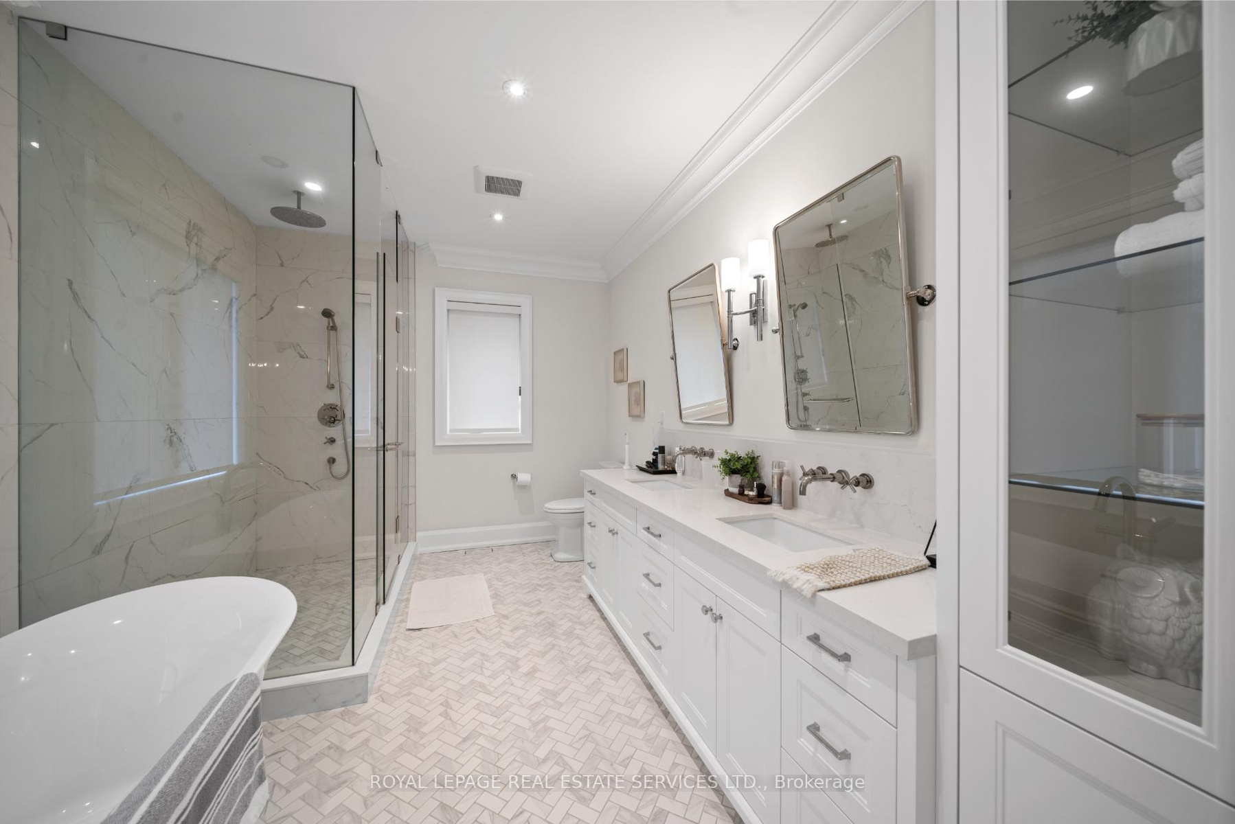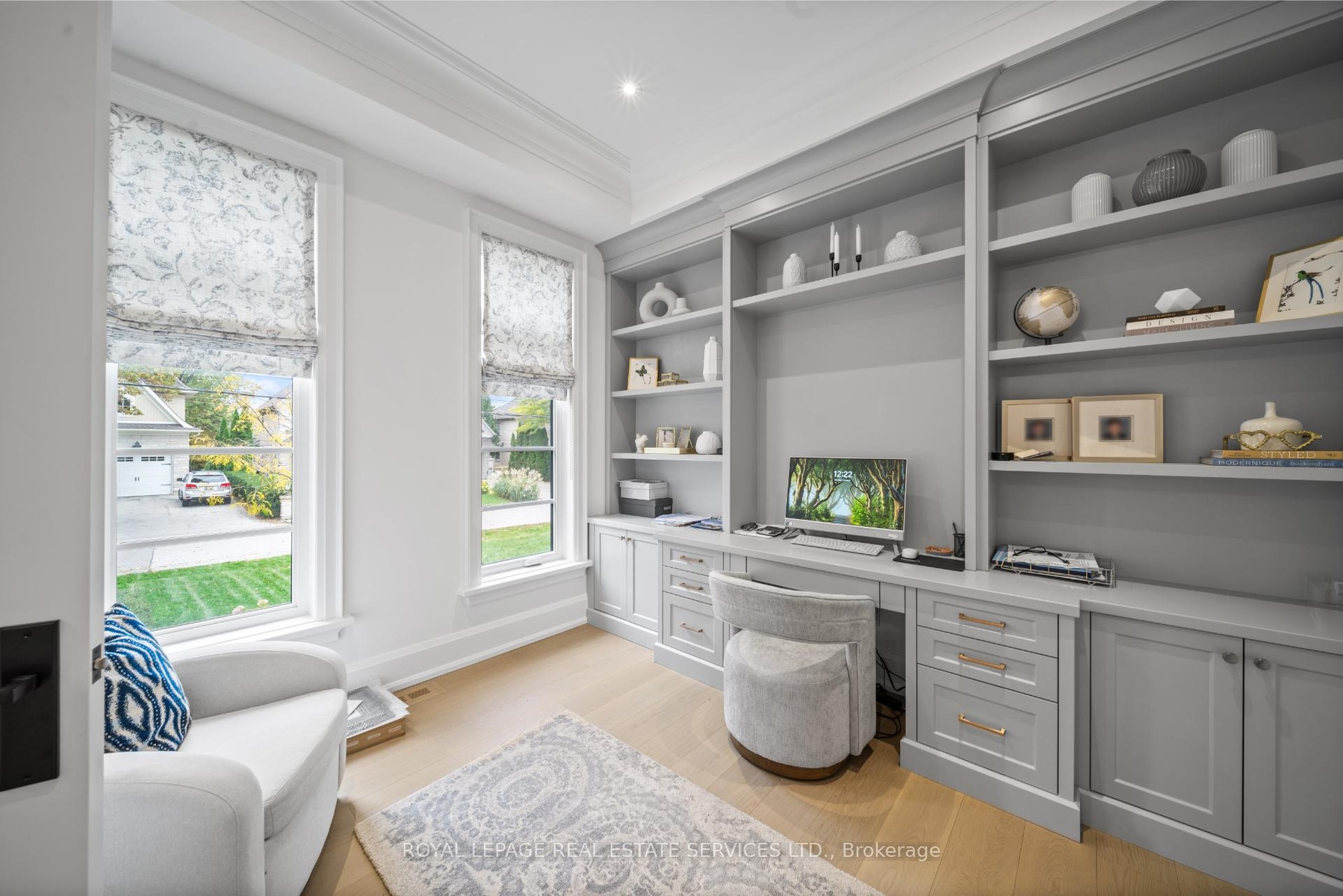 WOW, WOW, WOW! Every inch of this custom-built masterpiece (2020) has been designed and finished to perfection. Set on a sought-after street in the prestigious Rosethorn community, this home is the definition of modern elegance and thoughtful design. Step inside the show-stopping foyer, where soaring ceilings and exquisite millwork set the tone for what's to come. The main floor features a private office, a designer powder room, and a formal dining room complete with a servery, wet bar, and walk-in pantry - perfect for entertaining. The open concept kitchen, family room, and casual dining area overlook the beautifully landscaped backyard and inground pool. The chef's kitchen boasts a large centre island, Quartz countertops, top of the line appliances, and abundant storage. Main floor family room is truly breathtaking, featuring 21 foot ceilings, a gas fireplace, and gorgeous full-height wainscotting above the fireplace that adds a touch of timeless sophistication. A mud/laundry room with garage access, custom cabinetry, and a walk out to the yard completes the main level. Upstairs, discover four spacious bedrooms, including a gorgeous primary retreat with a spa-like 5pc ensuite, massive walk-in closet, and built-in vanity/workspace. One additional bedroom enjoys its own 3pc ensuite, while the remaining bedrooms share a beautifully appointed 5pc bath. The lower level continues to impress with a 5th bedroom, a glass-enclosed gym, and a massive recreation/games room with a fireplace and built-ins. Large windows fill the space with natural light, plus ample storage plus a 3pc bath. Outside, your backyard oasis awaits - featuring a covered patio with built-in speakers, inground pool, and multiple lounging areas ideal for family fun and entertaining. Additional highlights include a 2 car attached garage with wall storage, a private driveway, and an unbeatable location in the highly coveted Rosethorn neighbourhood.
