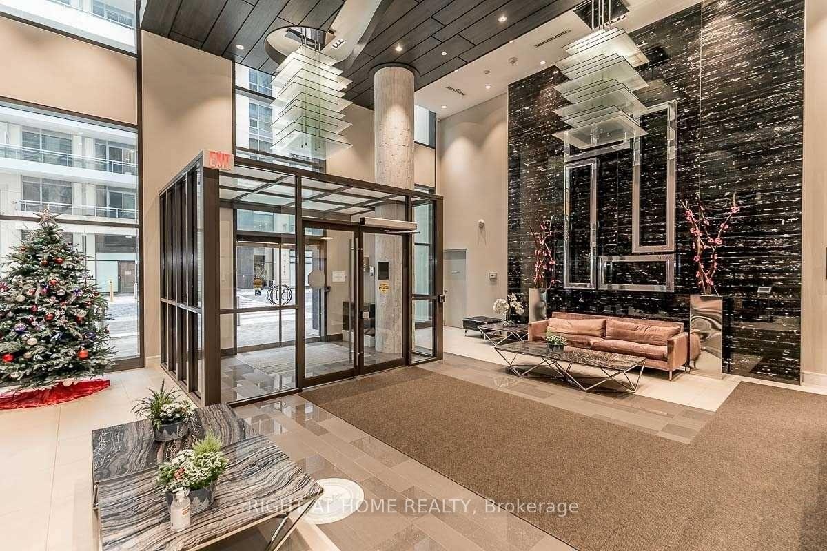 Fully Furnished High Floor Unit at the"The Beverly Hills Residence", 1+1 Bedroom, Unobstructed View, Huge Terrace. The Den is turned into a Walk-In Closet with shelving. Walking Distance To Public Transit, Indoor/Outdoor Pool, Bbq, Yoga Studio, Gym, Party Rm, Theater, Guest Suites, 24/7 Concierge, Parking & Locker Included