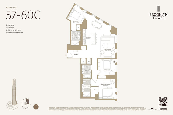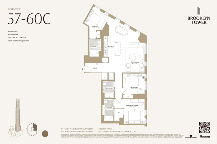 Connecting New York City's most thriving upscale and cosmopolitan neighborhoods, Brooklyn Tower's prime location pulses with cultural vibrancy and is a genuine reflection of Brooklyn's unique spirit. The Brooklyn Tower is ideally located near beloved parks including Fort Greene Park, Prospect Park and Brooklyn Bridge Park. The location offers unrivaled transportation access to 12 subway lines, 11 commuter trains, access to the city's expanding ferry network, and 22 Citi bike stations. To live at The Brooklyn Tower is to be immersed in a "best-of" lifestyle at cinematic new heights, unparalleled in the borough.