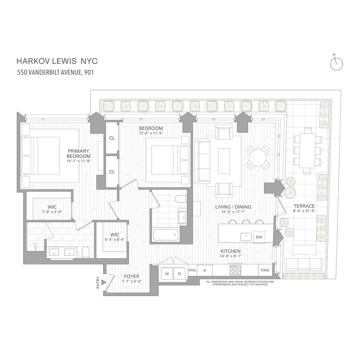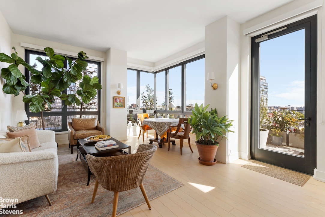 Perched on the northeast corner of one of Prospect Heights' premier full-service condominiums, residence 901 is an oversized, light-filled, modern sanctuary with panoramic eastern and northern views and a sprawling 463SF private terrace, perfect for morning coffee, alfresco dining, or simply taking in the sunrise.