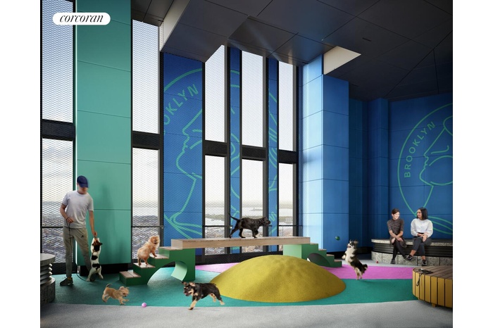 Residents at Brooklyn Tower have access to one of the largest residential amenity offerings in New York. A world-class performance-infused lifestyle, secured with over 100,000 square feet of exclusive indoor and outdoor leisure spaces. Life Time Athletic Club will manage an impressive array of amenities including a 75' outdoor lap pool and whirlpool, fully-serviced poolside lounge and atrium, billiards room, library lounge, conference room, theater with wet bar, and co-working lounge. Dedicated private resident amenities include a children's playroom, limited off-site parking, and the coveted Sky Park, boasting an open-air loggia featuring a basketball court, foosball, playground, and dog run.