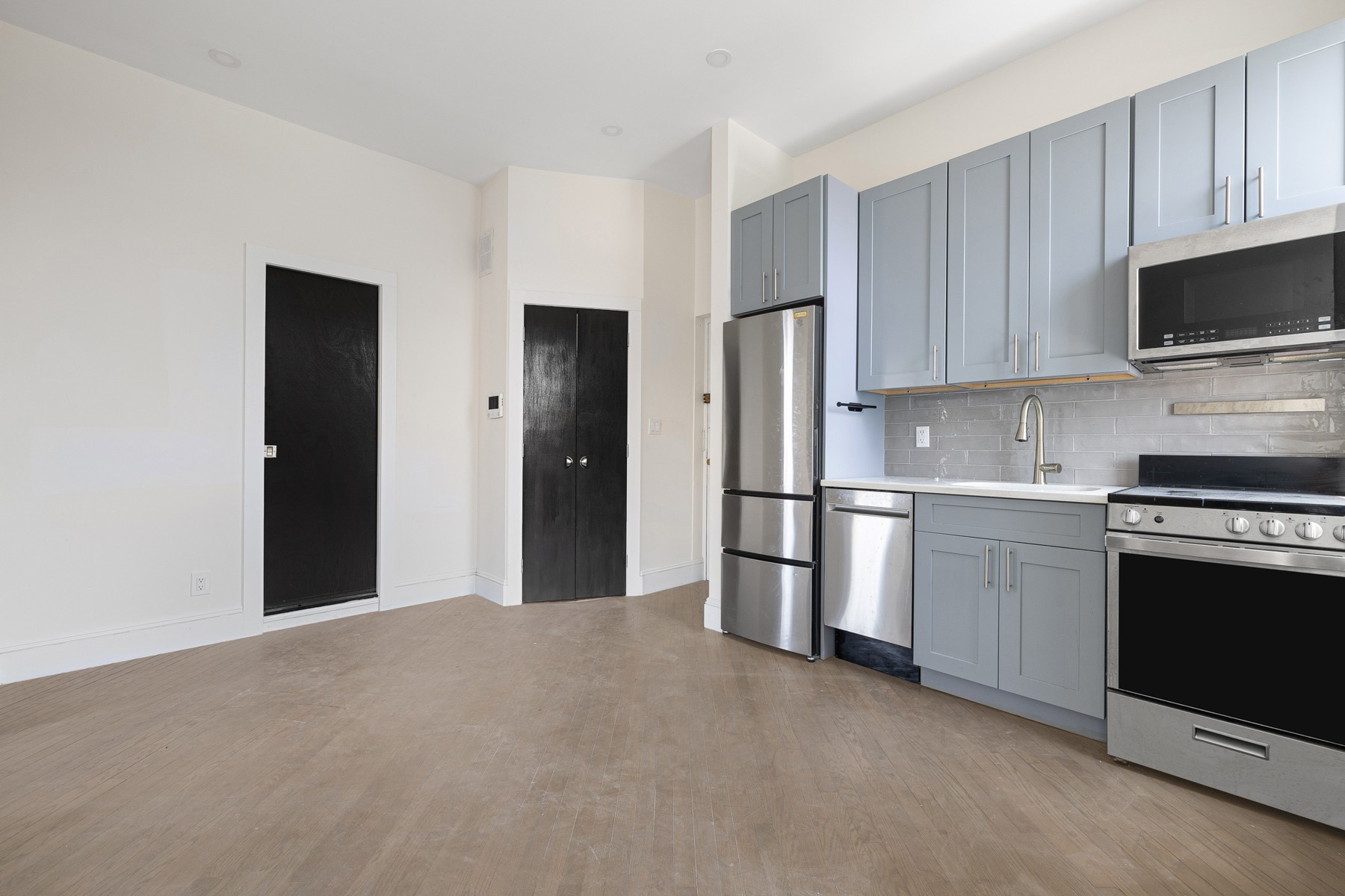 The unit features: new stainless kitchen, wood floors, large closets, high ceilings, large windows, and amazing light.