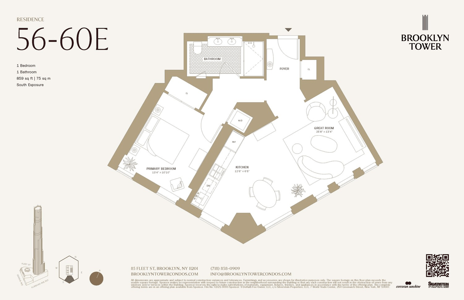 Exclusive Marketing and Sales: Corcoran Sunshine Marketing Group. THE COMPLETE OFFERING TERMS ARE IN AN OFFERING PLAN AVAILABLE FROM SPONSOR, 9 Dekalb Avenue Condominium FILE NO. CD21-0093, c/o Silverstein Properties, LLC, 7 World Trade Center, 250 Greenwich Street, New York, NY 10007. Equal housing opportunity .