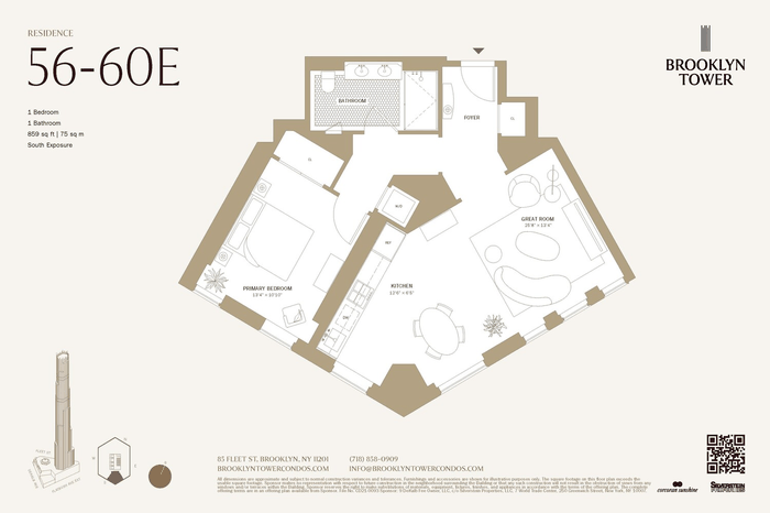 Connecting New York City's most thriving upscale and cosmopolitan neighborhoods, Brooklyn Tower ' s prime location pulses with cultural vibrancy and is a genuine reflection of Brooklyn's unique spirit. The Brooklyn Tower is ideally located near beloved parks including Fort Greene Park, Prospect Park and Brooklyn Bridge Park. The location offers unrivaled transportation access to 12 subway lines, 11 commuter trains, access to the city's expanding ferry network, and 22 Citi bike stations. To live at The Brooklyn Tower is to be immersed in a "best-of" lifestyle at cinematic new heights, unparalleled in the borough.
