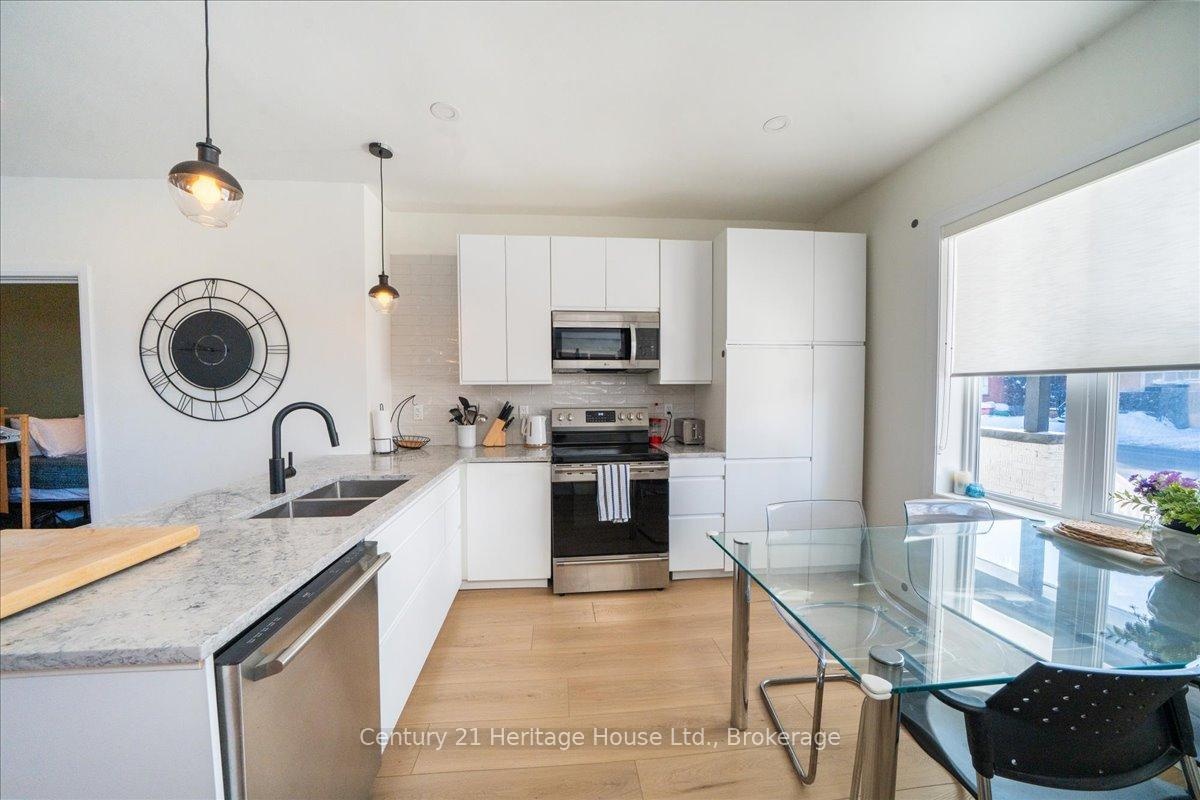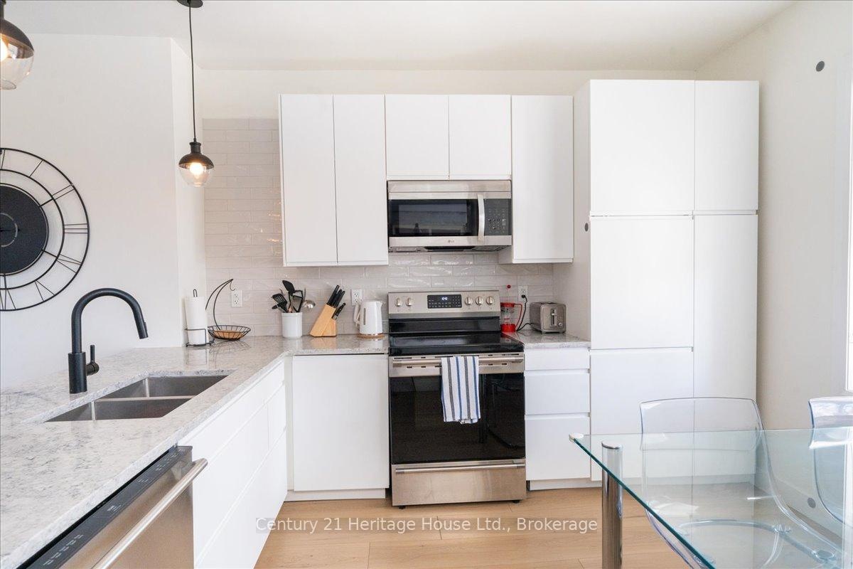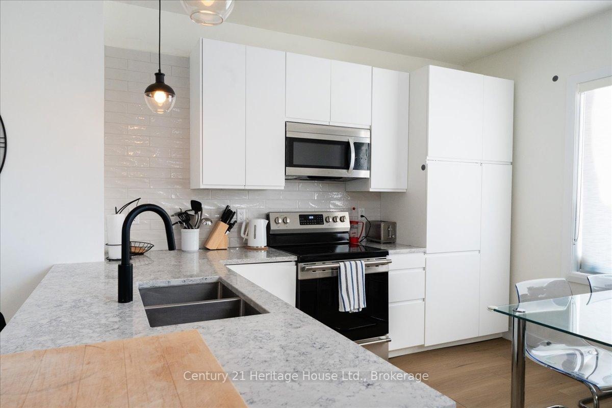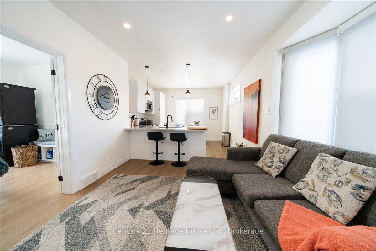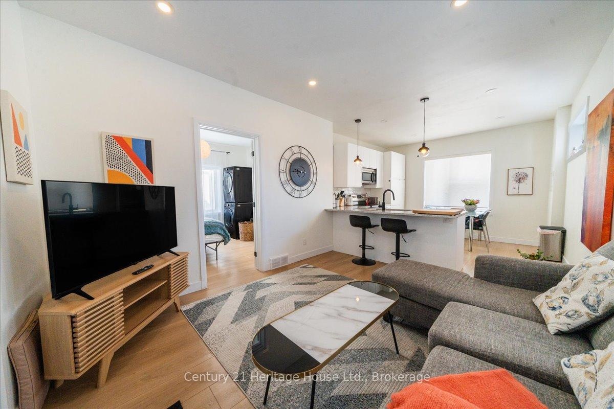 Discover modern city living at its finest in this beautifully renovated and fully furnished 1-bedroom, 1-bath apartment located at 180 Weber St E in the heart of Kitchener. Thoughtfully designed with style and comfort in mind, this stunning unit features a sleek built-in kitchen that blends seamlessly into the living space, highlighted by elegant stone countertops, a stylish backsplash, and premium finishes. The open-concept layout is complemented by light wood vinyl laminate flooring and pot lights with dimmers, creating a warm and inviting ambiance. The living room and bedroom come fully furnished with tasteful, contemporary décor, offering a move-in-ready experience perfect for professionals or couples. Enjoy the convenience of a brand-new ensuite bathroom with a modern stand-up shower, showcasing quality craftsmanship and attention to detail throughout. A new stackable washer and dryer are included for tenants' use, providing the ultimate in-suite convenience. Step outside onto your private porch - the perfect spot to unwind and enjoy the outdoors in peace and comfort. High-speed internet is included, and the unit comes with one exclusive parking space. Situated just minutes from downtown Kitchener, Uptown Waterloo, and major highways, this apartment offers easy access to shops, restaurants, public transit, and all the amenities of urban living while maintaining a peaceful and private atmosphere. Whether you're commuting, studying, or simply enjoying city life, this apartment delivers the perfect balance of sophistication, functionality, and convenience - a true turnkey home in one of the region's most connected and desirable locations.