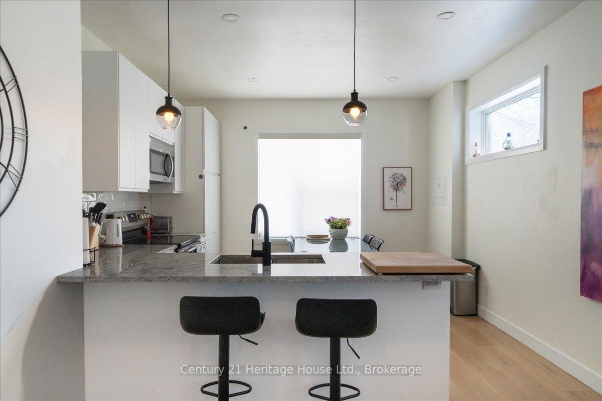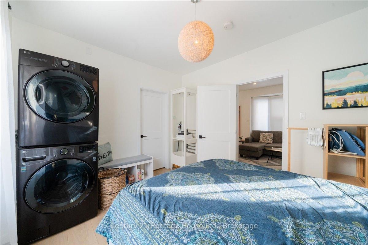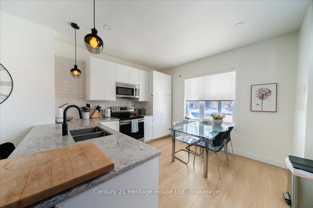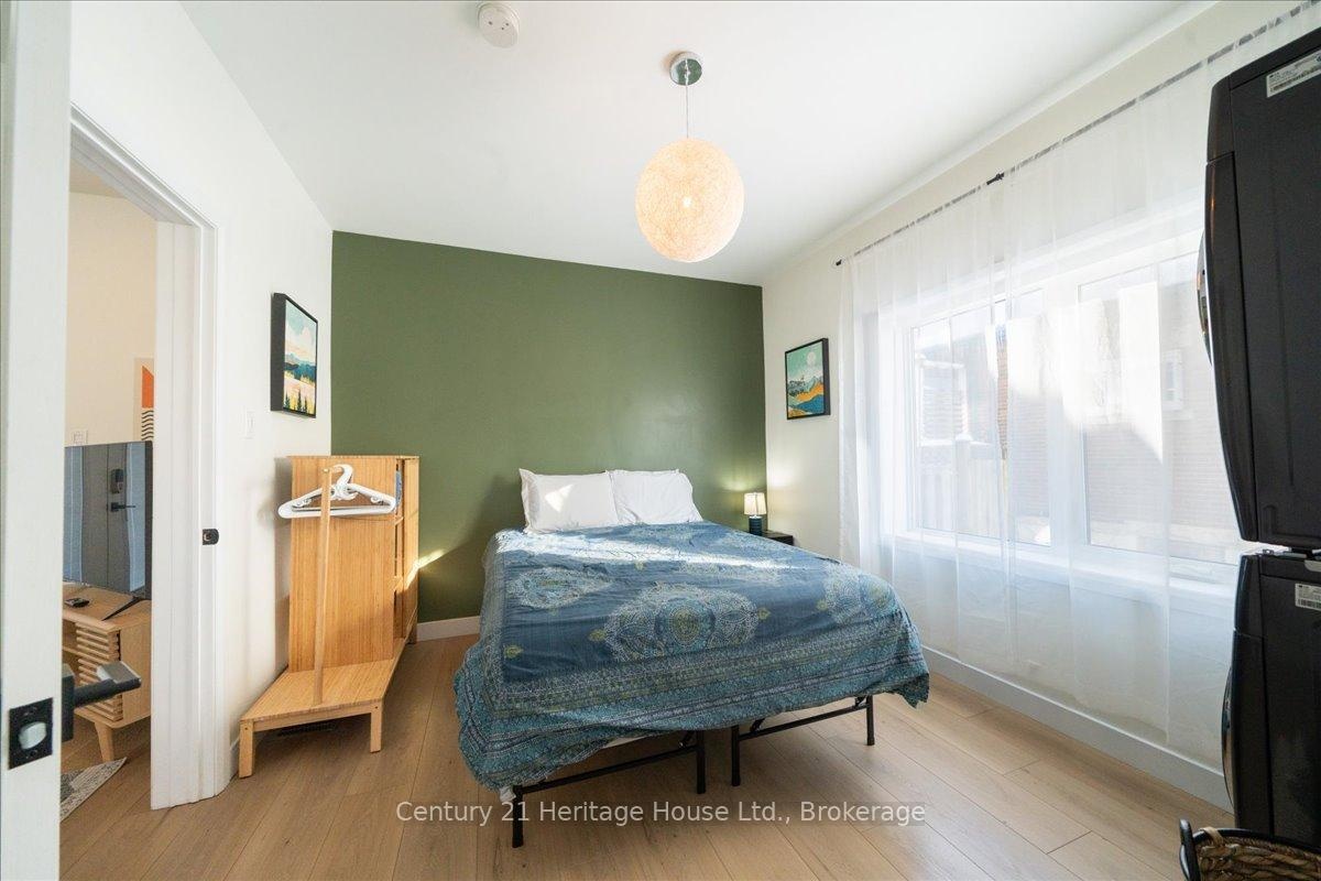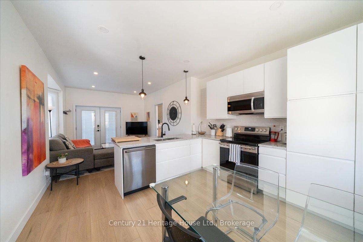 Discover modern city living at its finest in this beautifully renovated and fully furnished 1-bedroom, 1-bath apartment located at 180 Weber St E in the heart of Kitchener. Thoughtfully designed with style and comfort in mind, this stunning unit features a sleek built-in kitchen that blends seamlessly into the living space, highlighted by elegant stone countertops, a stylish backsplash, and premium finishes. The open-concept layout is complemented by light wood vinyl laminate flooring and pot lights with dimmers, creating a warm and inviting ambiance. The living room and bedroom come fully furnished with tasteful, contemporary décor, offering a move-in-ready experience perfect for professionals or couples. Enjoy the convenience of a brand-new ensuite bathroom with a modern stand-up shower, showcasing quality craftsmanship and attention to detail throughout. A new stackable washer and dryer are included for tenants' use, providing the ultimate in-suite convenience. Step outside onto your private porch - the perfect spot to unwind and enjoy the outdoors in peace and comfort. High-speed internet is included, and the unit comes with one exclusive parking space. Situated just minutes from downtown Kitchener, Uptown Waterloo, and major highways, this apartment offers easy access to shops, restaurants, public transit, and all the amenities of urban living while maintaining a peaceful and private atmosphere. Whether you're commuting, studying, or simply enjoying city life, this apartment delivers the perfect balance of sophistication, functionality, and convenience - a true turnkey home in one of the region's most connected and desirable locations.