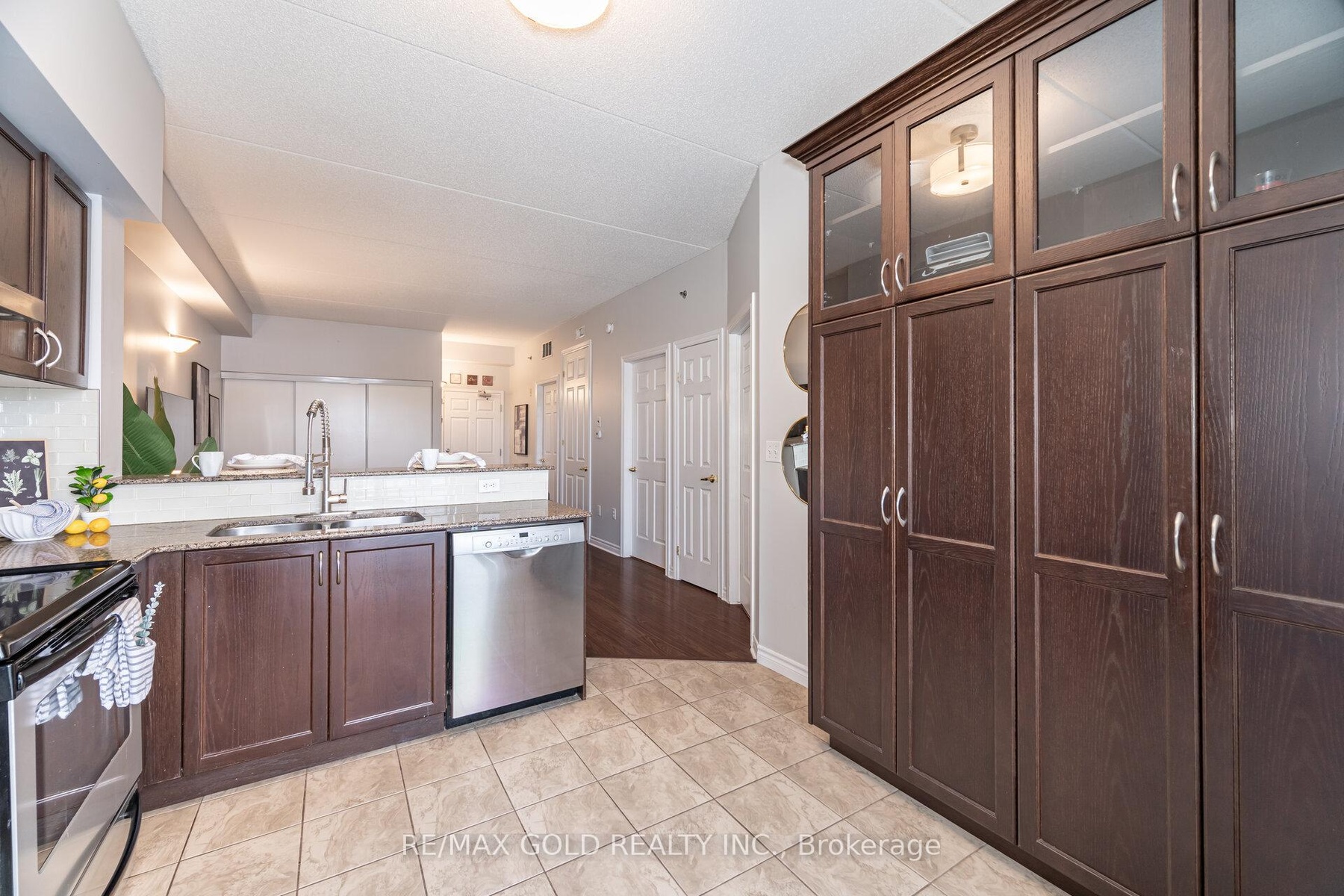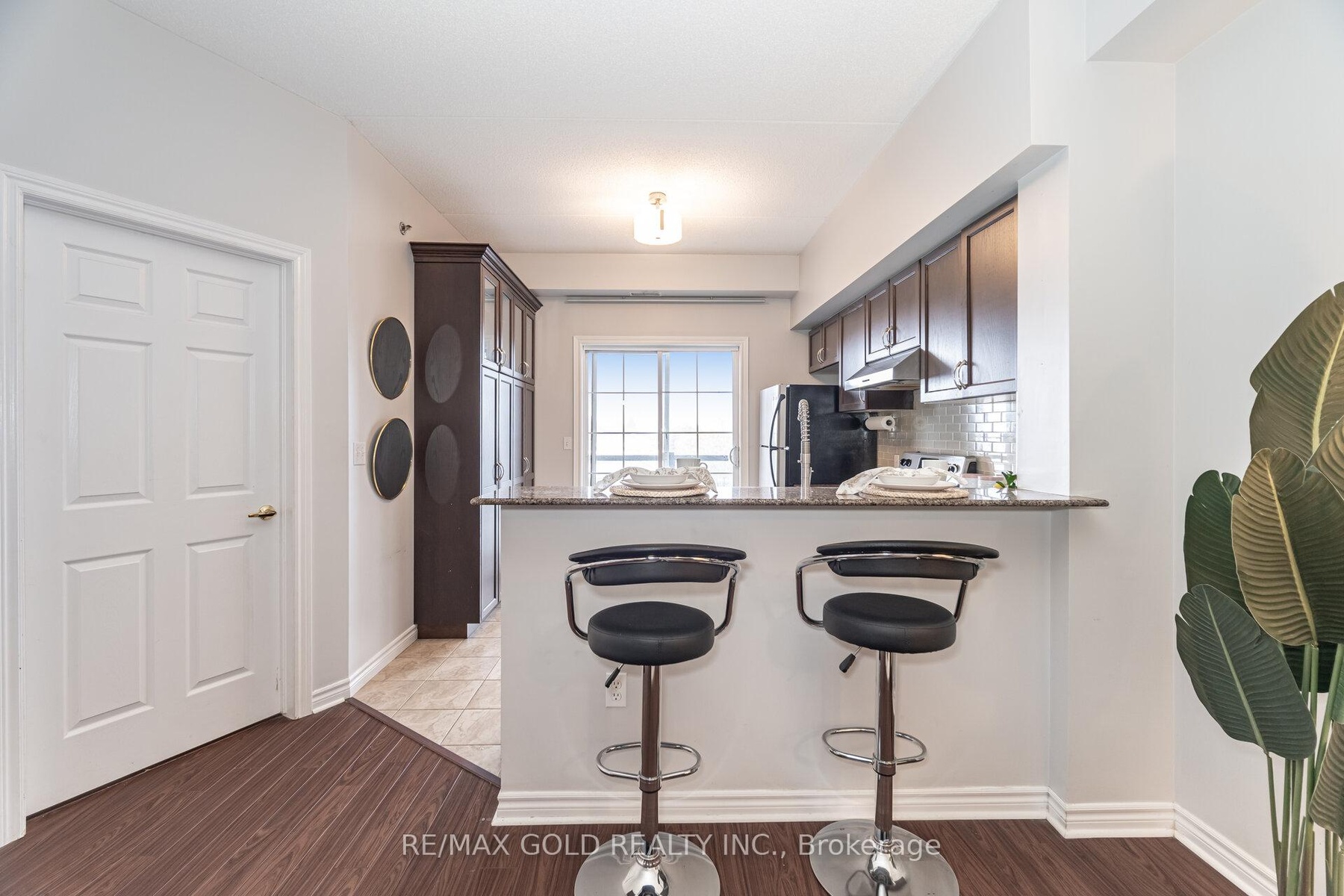 This meticulously maintained, bright one-bedroom plus den condo offers 9 feet ceilings with south-east exposure providing ample sunlight throughout the day, an open-concept layout, ample living space, and convenient in-suite laundry with upgraded washer and dryer. The spacious primary bedroom floods with natural light and provides generous closet space, while the versatile den is ideal for a home office or flex room which can be converted to 2nd/Guest bedroom as it has closet and door for privacy. The modern kitchen impresses with a breakfast bar, sleek granite countertops, and a premium custom pantry for optimal storage and functionality. Additional highlights include an owned locker, dedicated parking spot, a walkout to a large covered concrete balcony perfect for outdoor relaxation, and a 4-piece bathroom. Enjoy low condo fees that include water, plus abundant parking options for guests and extra vehicles. Nestled in Guelph's dynamic East End-a rapidly growing area with new residential developments, the emerging Guelph Innovation District, and enhanced community amenities-this location provides easy access to parks, schools, the library, scenic walking trails, and quick connections to Guelph Line and Highway 401. Ideal for investors, young professionals, or downsizers seeking comfort and convenience in a thriving neighborhood. Schedule your viewing today!